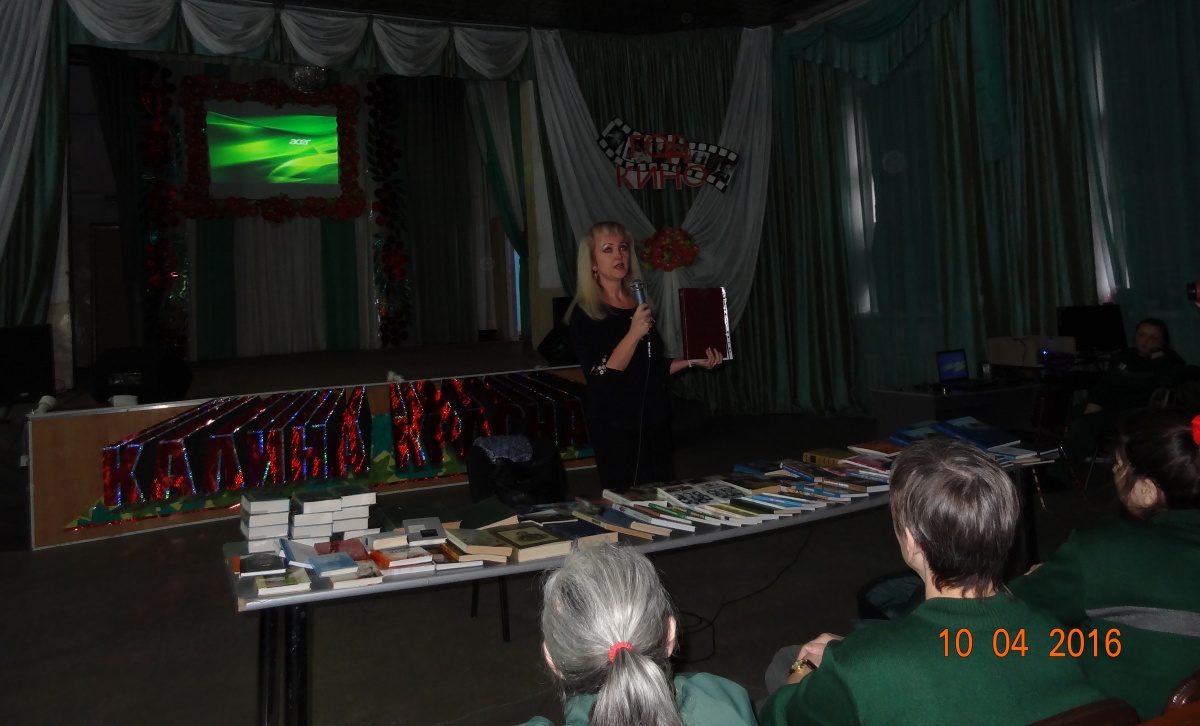 Перед просмотром фильма состоялась беседа с осужденными «От Апостола до наших дней». Мы говорили о первой печатной книги на Руси - Ивана Федорова «Апостол» и литературе наших современников. Так же, в библиотеку учреждения были переданы книги. Среди них: популярные произведения русских классиков, сибирских поэтов, художественная литература о судьбе артистов театра и кино, оставивших яркий след в Российском кинематографе.