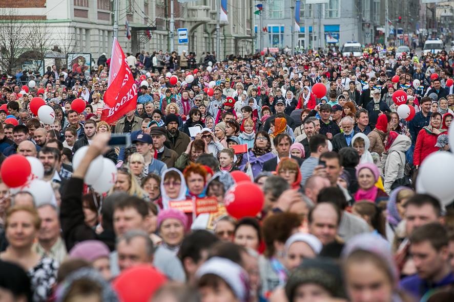 Пасхальный крестный ход в Новосибирске (фоторепортаж)В Новосибирске состоялся Первый Пасхальный Крестный ход. Несколько тысяч человек прошли от Вознесенского кафедрального собора до собора Александра Невского, основной маршрут пролегал по Красном проспекту.