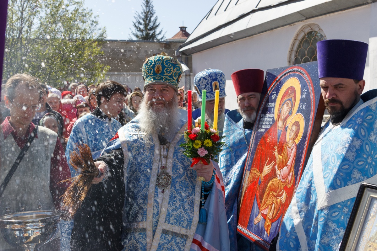 Владыка Тихон от всего сердца поздравил христиан со Светлой Пасхой и прибытием со Святой горы иконы. Правящий Архиерей отметил, что икона прибыла в этот храм не только в Светлую Седмицу, но и в год празднования 1000-летия присутствия русского монашества на святой горе Афон.