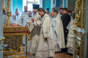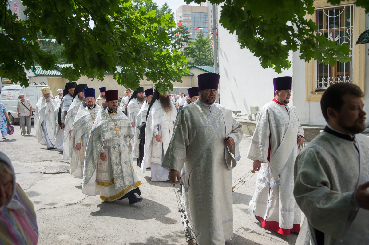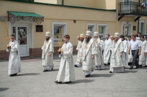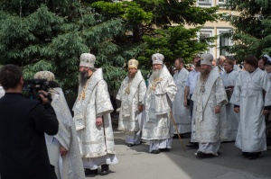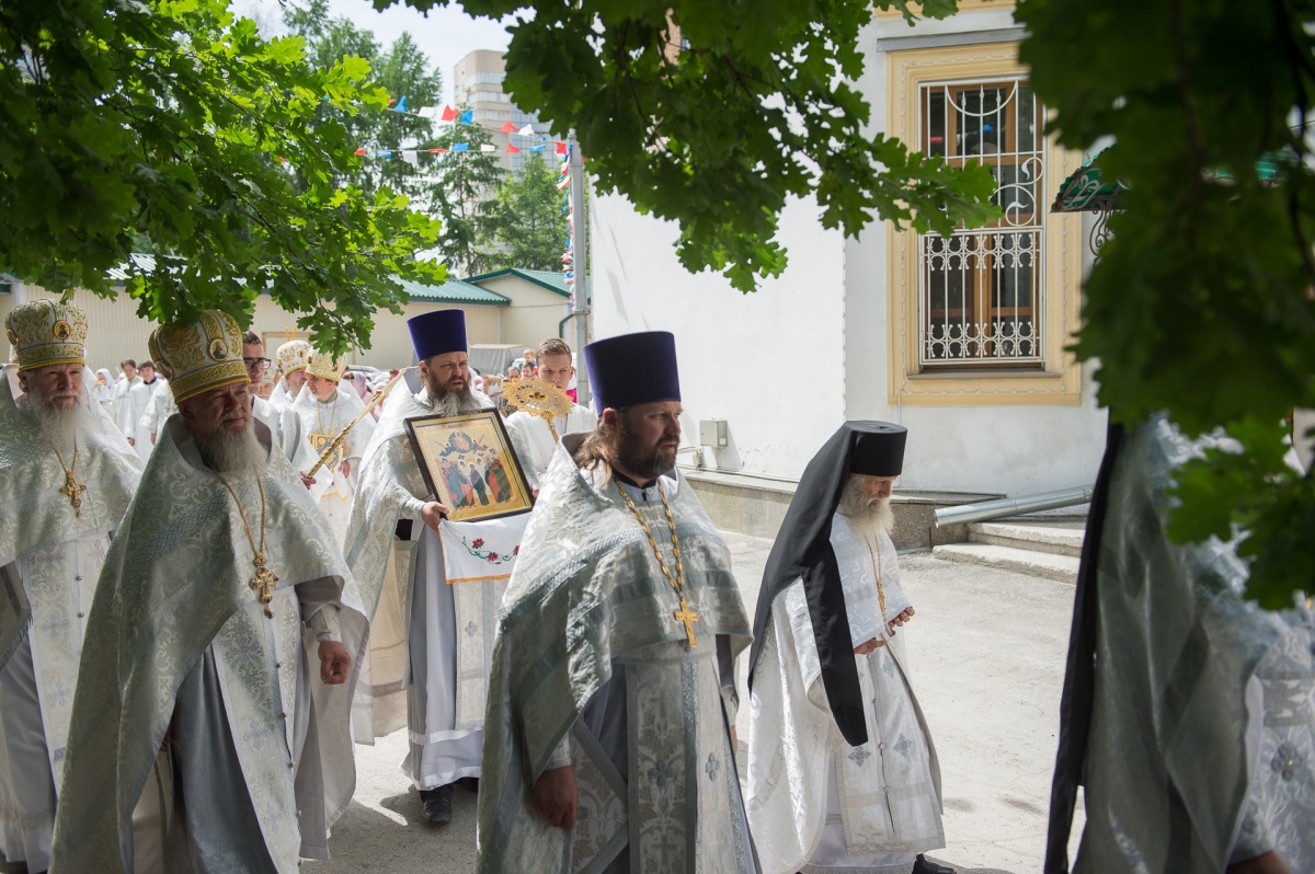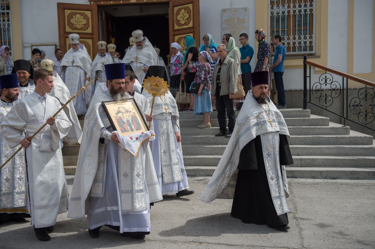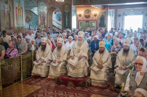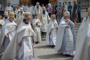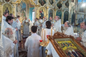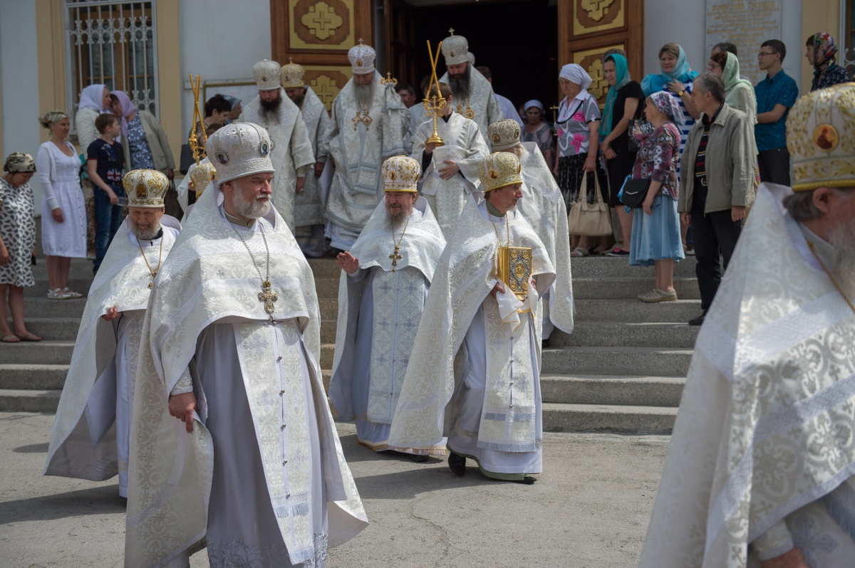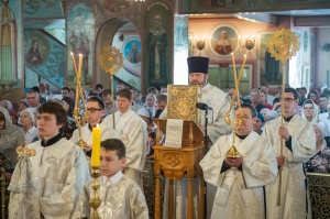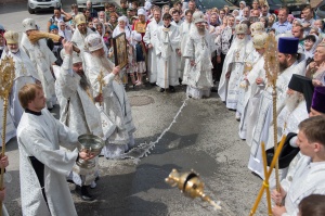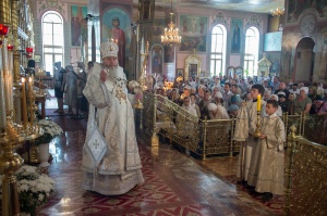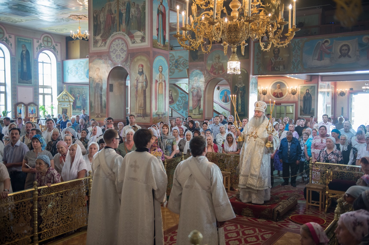 Мы сегодня молились о всех строителях, благотворителях и благоукрасителях этого святого храма. Мы сегодня поминали за Божественной литургией Высокопреосвященнейшего митрополита Гедеона, поминали архиепископа Сафрония, которые еще строили этот храм. Многие еще помнят, как проходила закладка первого кирпичика в основание этого Величественного здания.