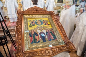 По окончании богослужения Митрополит Тихон поздравил клириков собора и прихожан с великим двунадесятым праздником Вознесения Господня и обратился к ним со словами проповеди.