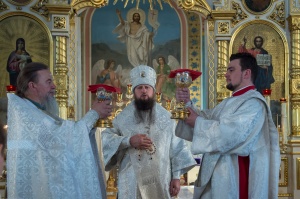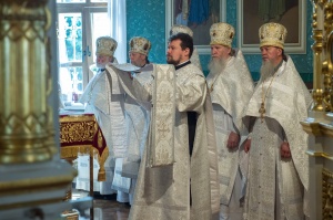 Владыке сослужили архиереи епархий Новосибирской Митрополии: викарий Новосибирской Епархии епископ Павел, епископ Искитимский и Черепановский Лука, епископ Карасукский и Ордынский Филипп, епископ Каинский и Барабинский Феодосий, а также духовенство Новосибирской Епархии.