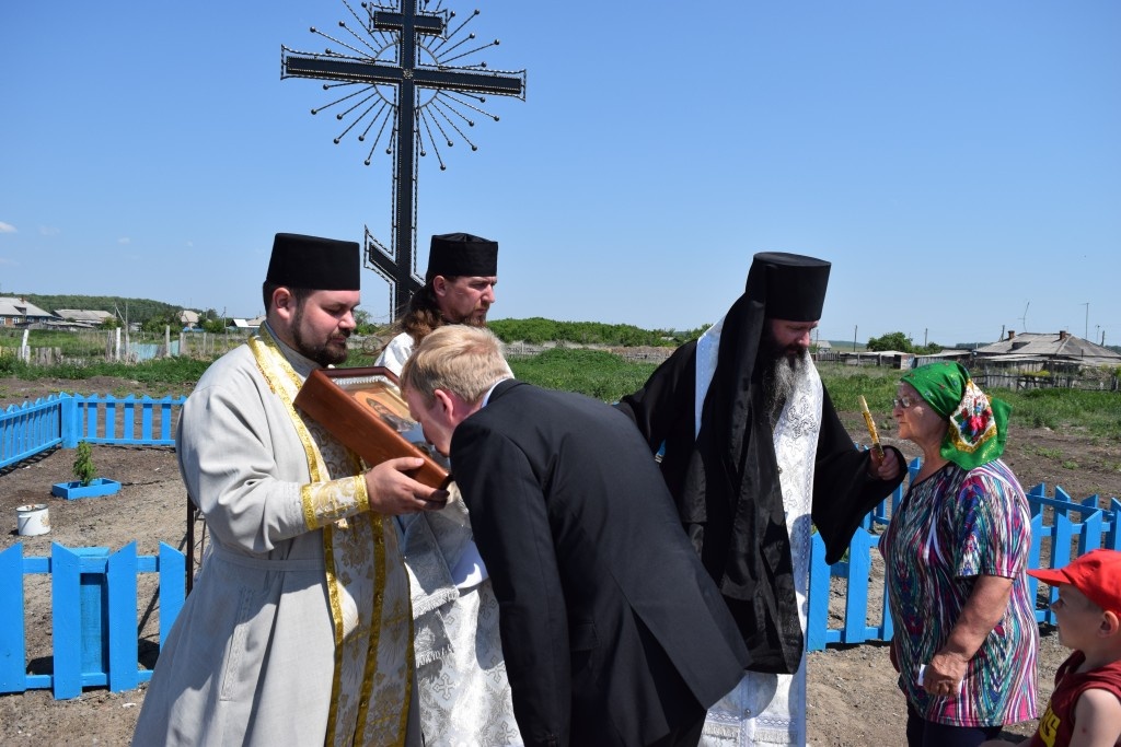 Освящение Поклонного Креста в Кожевниково12 июня в день государственного праздника День России, в селе Кожевниково Барабинского района, состоялось освящение Поклонного Креста, в память о разрушенном в 30-х годах храме во имя преподобного Нила Столобенского. Освящение возглавил Управляющий Каинской Епархией Епископ Каинский и Барабинский Феодосий, ему сослужили секретарь Каинской Епархии протоиерей Дмитрий Бабкин и иеродиакон Василий (Зеленкин).