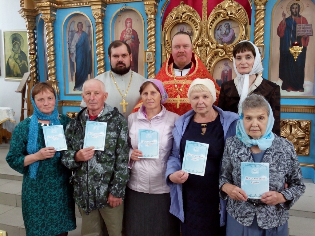 В Каинской епархии прошло вручение свидетельств об окончании Богословских курсов. Занятия проводились с осени 2015 до июня 2016 года в г. Куйбышев, г. Барабинск, р.п. Чаны. В г. Коченево выпуск слушателей курсов проводился впервые.