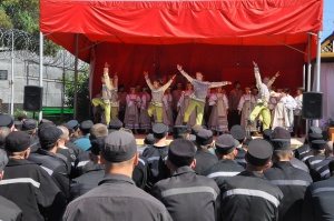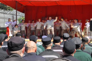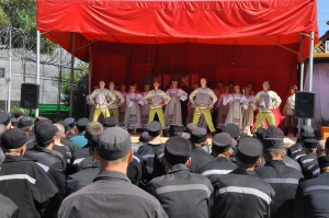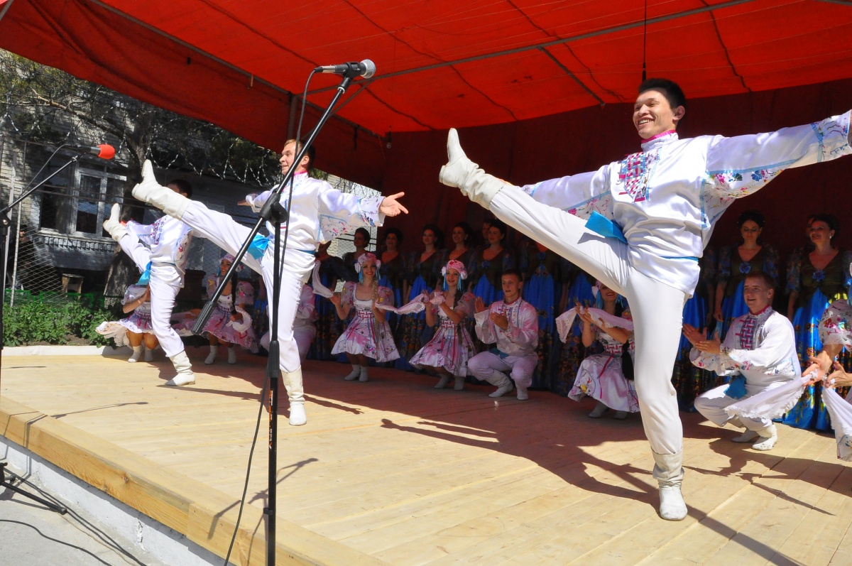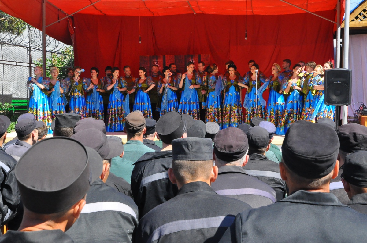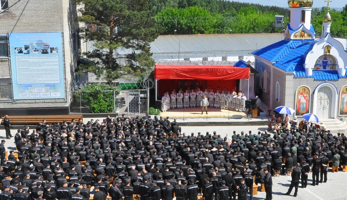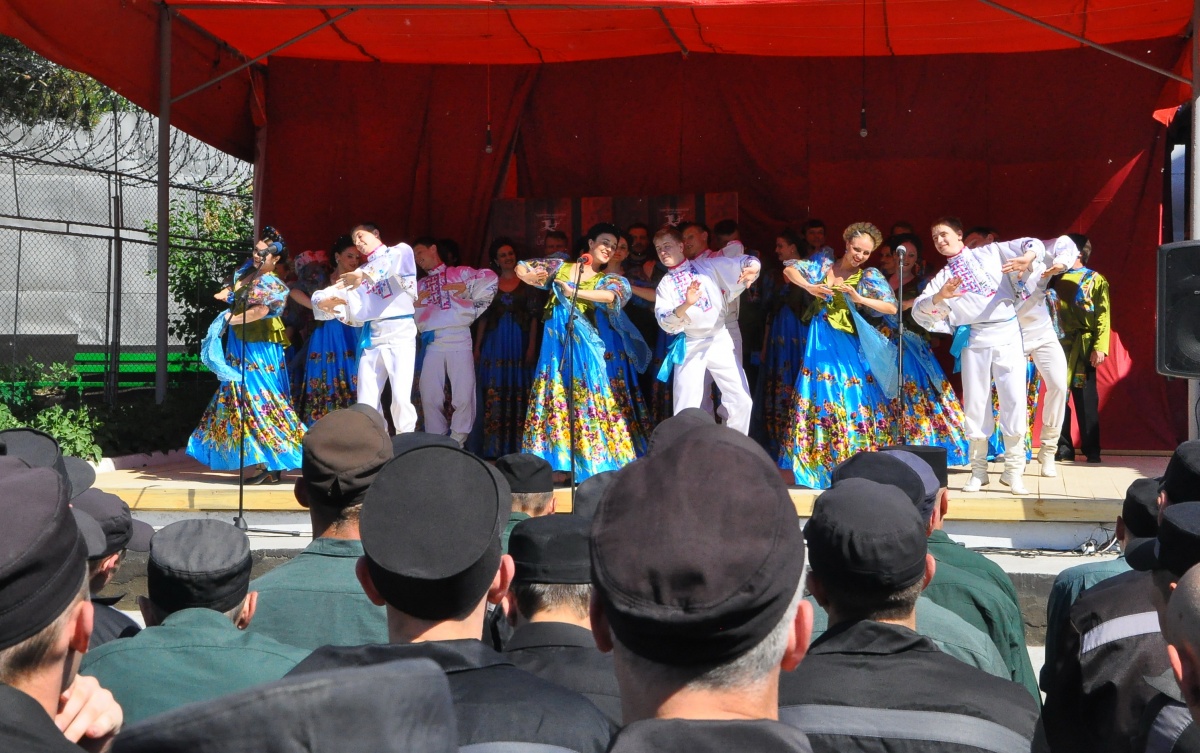 День России в колонии № 18 (+ фоторепортаж)В исправительной колонии строгого режима №18, выступил Государственный академический Сибирский русский народный хор. Коллектив выступает в колонии уже во второй раз. В 2015г., хор принимал участие в благотворительной акции «Давайте улыбнемся!». Директор Сибирского хора, заслуженный работник культуры РФ - Екатерина Федоровна Ковалева- человек талантливый, и неравнодушный. В прошлом году, после концерта, со сцены пообещала зрителям, что коллектив приедет с новой программой еще раз и слово сдержала. Коллектив, полным составом приехал! И блистательно выступил перед осужденными. Концерт проходил на открытой площадке, специально построенной сцене. На плацу разместилось более трехсот зрителей, несколько отрядов, смотрели концерт из окон своих бараков, остальные смогли увидеть концерт по местному кабельному телевидению. Яркий, наполненный жизнью, светом, радостью концерт, был приурочен к празднованию Дня России, поэтому в репертуаре прозвучало много патриотических песен. И все они были пронизаны любовью к дому, к жизни, любовью к Родине! Государственный академический Сибирский русский народный хор является одним из ведущих профессиональных коллективов русской традиционной культуры России. В его состав входит 80 профессиональных артистов. 40 артистов - вокалистов со специальным профессиональным образованием, 24-танцора балета, работают в жанре русского традиционного искусства, используя достижения современной хореографии и 16 музыкантов в оркестре, помимо аккомпанирующей роли, исполняют отдельные концертные программы. Коллектив был создан в преддверии Победы Советского народа над фашистской Германией 19 апреля 1944 года, как Сибирский Ансамбль песни и пляски. Основатель и первый художественный руководитель Николай Петрович Корольков, 1944-1953г.г. В 2014 году, творческий коллектив вошел в состав Союза российских национальных (народных) профессиональных творческих коллективов России. Как говорит Екатерина Ковалева: « Мы делаем русское традиционное искусство модным, интересным и престижным, сохраняя его самобытность, создавая высокохудожественный конкурентоспособный творческий продукт, адаптированный к сознанию современного зрителя. В апреле этого года состоялась премьера программы «Сердцем наполненный взгляд..», в основе которой лежит творчество великого русского поэта Сергея Есенина. Мы не могли не поделиться своим творческим успехом с осужденными. Концерт в честь Дня России – не случаен. Искусство культивирует духовность – основополагающую суть нашей нации. Коллектив хочет знакомить осужденных с русским национальным искусством, потому что оно очень мотивационно. Это вековое искусство, оно нравственно и заставляет задуматься об оценке собственных действий, мотивирует к пониманию того, что такое мир и, что ты должен сделать для этого мира. Мы хотим напомнить им, что за колючей проволокой есть жизнь – яркая и эмоционально сильная. Мы должны гордиться своей страной и сохранять национальное культурное наследие!» Выступление Сибирского хора, как и в прошлом году, прошло с большим успехом и при полном аншлаге. По милости Божией, на территории колонии №18, руками осужденных, построен прекрасный Храм Владимирской иконы Божией Матери. И даже, те, кто еще не посещает богослужения, каждый д