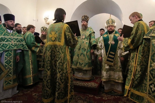 Богослужение возглавили митрополит Томский и Асиновский Ростислав, епископ Искитимский и Черепановский Лука, епископ Мариинский и Юргинский Иннокентий, епископ Колпашевский и Стрежевской Силуан и епископ Югорский и Няганский Фотий. Преосвященным архипастырям сослужили настоятели и священники храмов Томской митрополии, выпускники и студенты Томской духовной семинарии в священном сане.