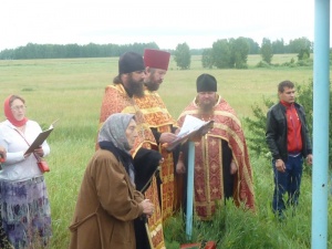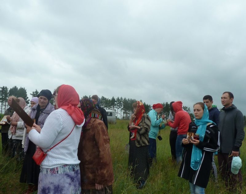 Молебен на месте обретения иконы1 июля 2016 года, в 9-ю пятницу по Пасхе, верующие Западного благочиния Каинской епархии вновь побывали на святом колодце «Половинка». Это паломничество уже стало традиционным, и на этот раз помешать ему не сумели даже дождливая погода и слякоть. Дорога оказалась для многих проверкой на прочность: комы грязи пролетали мимо окон добиравшихся к месту паломничества машин. Прежде всего прихожане из Карачей, Венгерово и Татарска помолились на месте разрушенного храма в селе Воскресенка. Молебен совершали иеромонах Димитрий (Ткаченко), настоятель Венгеровского храма в честь Нерукотворного Образа Господа Иисуса Христа, протоиерей Андрей Вирясов, настоятель прихода в честь Великомученика и Целителя Пантелеимона в Карачах и протоиерей Александр Соловьев, настоятель храма Покрова Пресвятой Богородицы г. Татарска. К сожалению, погодные условия не позволили пройти к колодцу крестным ходом, как это бывает обычно.