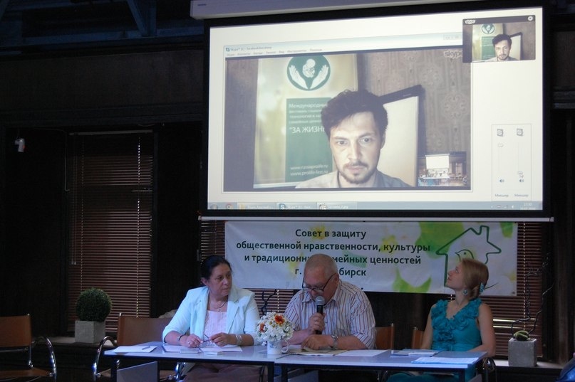 Скайп общение участников круглого стола с Сергеем Валентиновичем Чесноковым, канидатом историических наук, лидером Всероссийского Движения «За Жизнь» (Москва) и Константином Александровичем Шестаковым, канидатом социалогических наук, заместителем председателя Тюменской региональной общественной организации «Центр защиты материанства «Покров» (Тюмень) позволило ознакомиться с их профессионально-общественным опытом решения задач сокращения абортов в России и защиты жизни нерождённых детей. В том числе узнать о деятельности, направленной на поддержку Обращения Святейшего Патриарха Московского и всея Руси Кирилла к Государственной Думе от 22 января 2015 года.