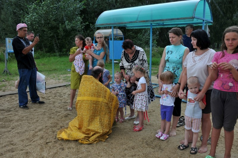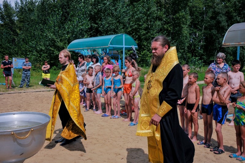В настоящее время в лагере отдыхают 160 детей из разных районов Новосибирской области. Летний лагерь расположен на берегу живописного озера, поэтому решили никуда не ехать, а крестить прямо в озере.