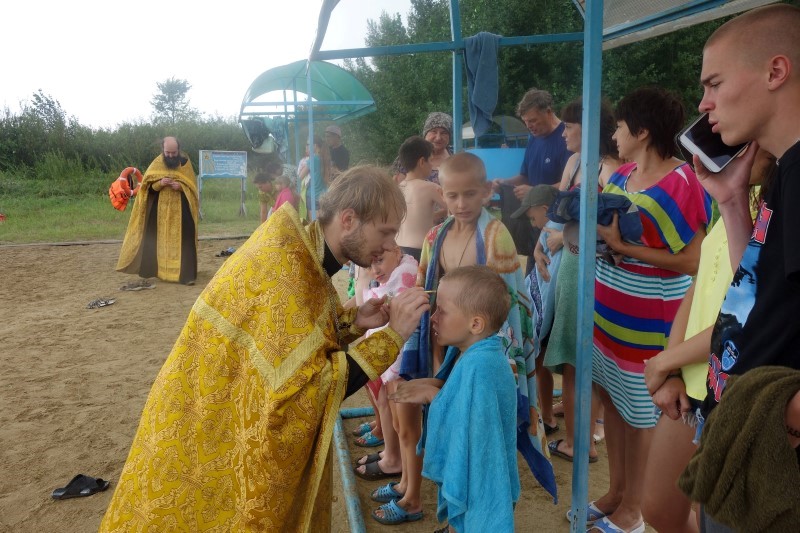 Вначале освятили воду, прочитали молитвы на оглашение и затем епископ Филипп вошел в озеро, а все крещаемые по одному подходили и принимали Таинство Крещение. А священники на берегу уже помазывали всех Святым Миром. Всего крестившихся в этот день было 43 человека, включая сотрудников лагеря, поваров, детей и их родителей. Все получили в подарок крестики и свидетельство о крещении.