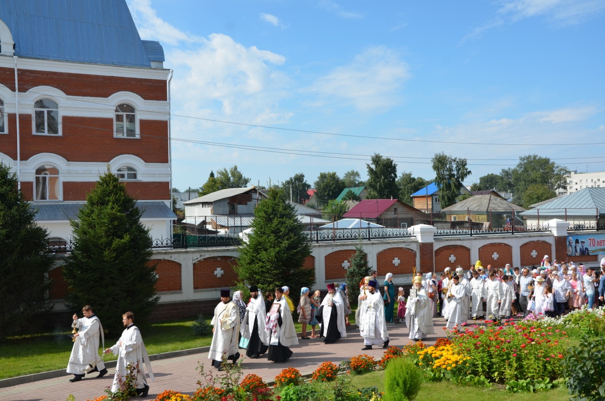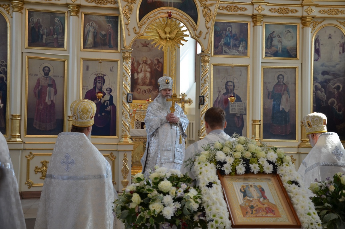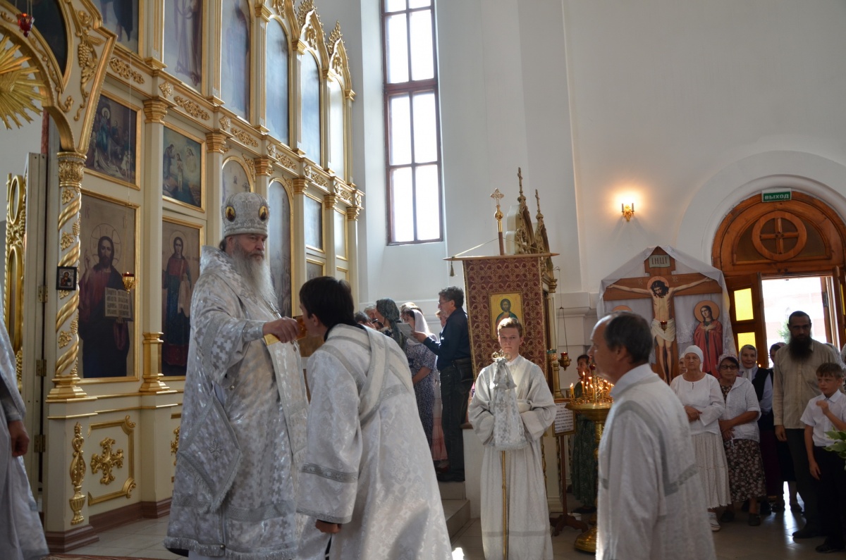 По заамвонной молитве Владыка совершил освящение плодов. В честь престольного праздника по окончании Литургии состоялся крестный ход вокруг собора.