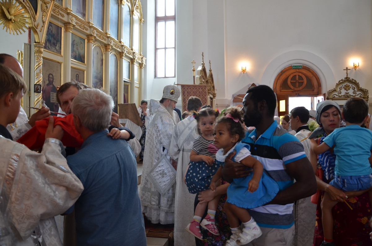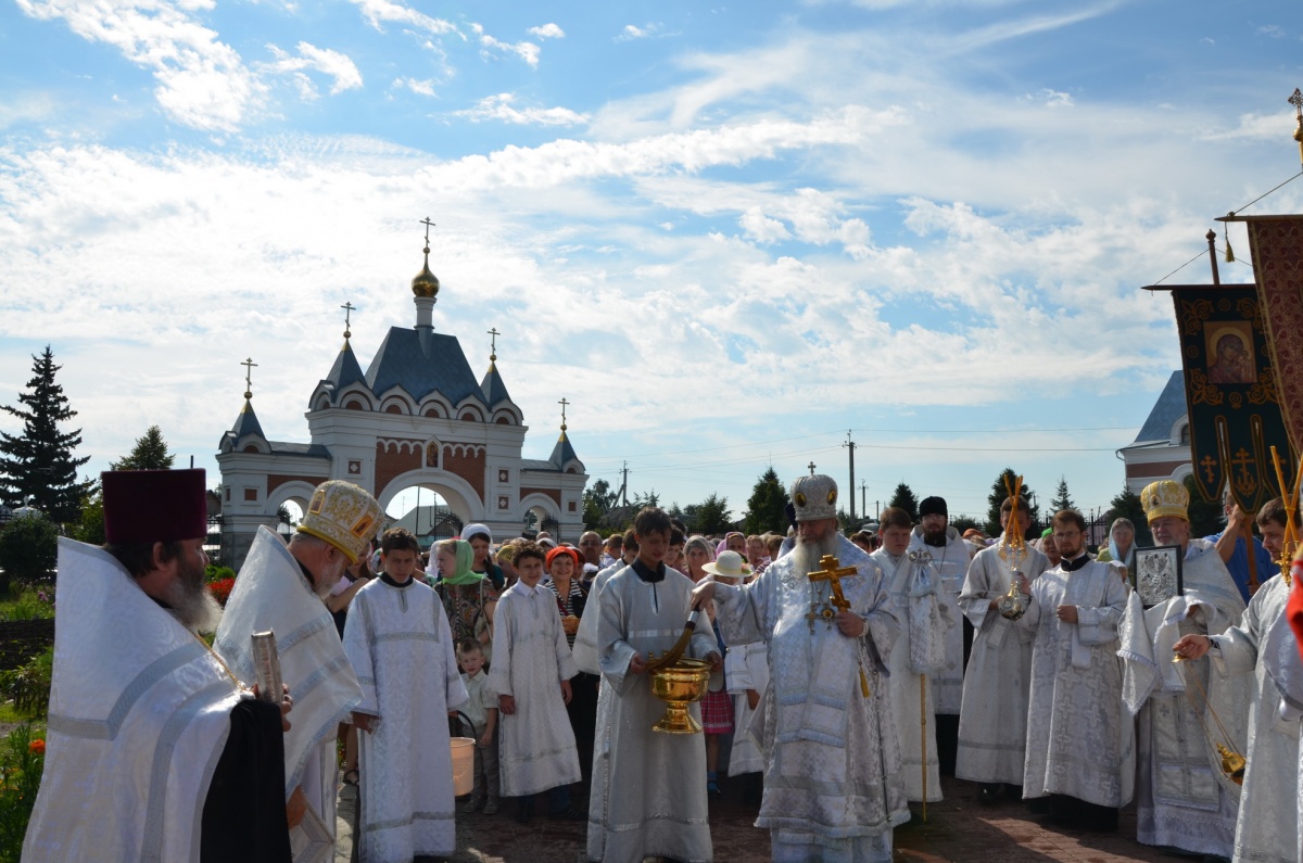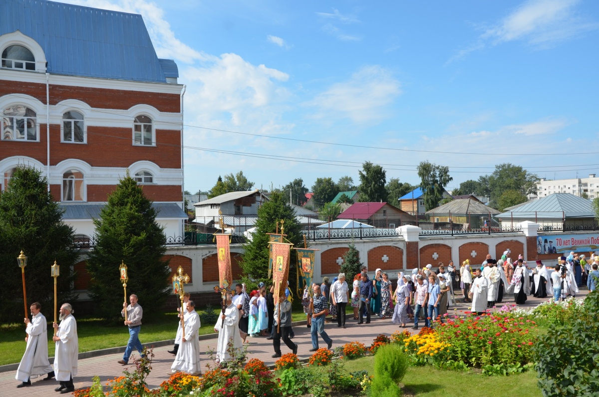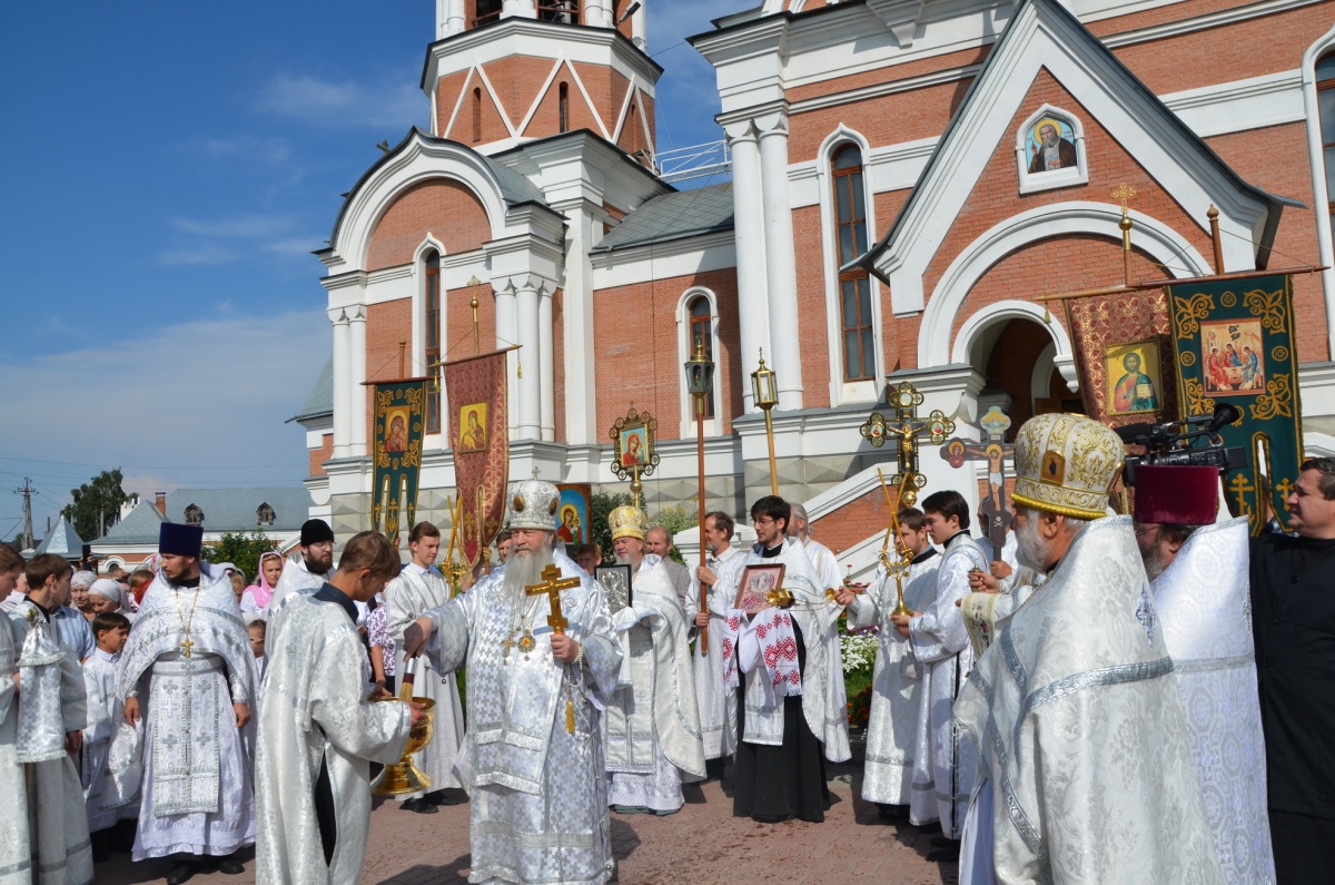 По заамвонной молитве Владыка совершил освящение плодов. В честь престольного праздника по окончании Литургии состоялся крестный ход вокруг собора.