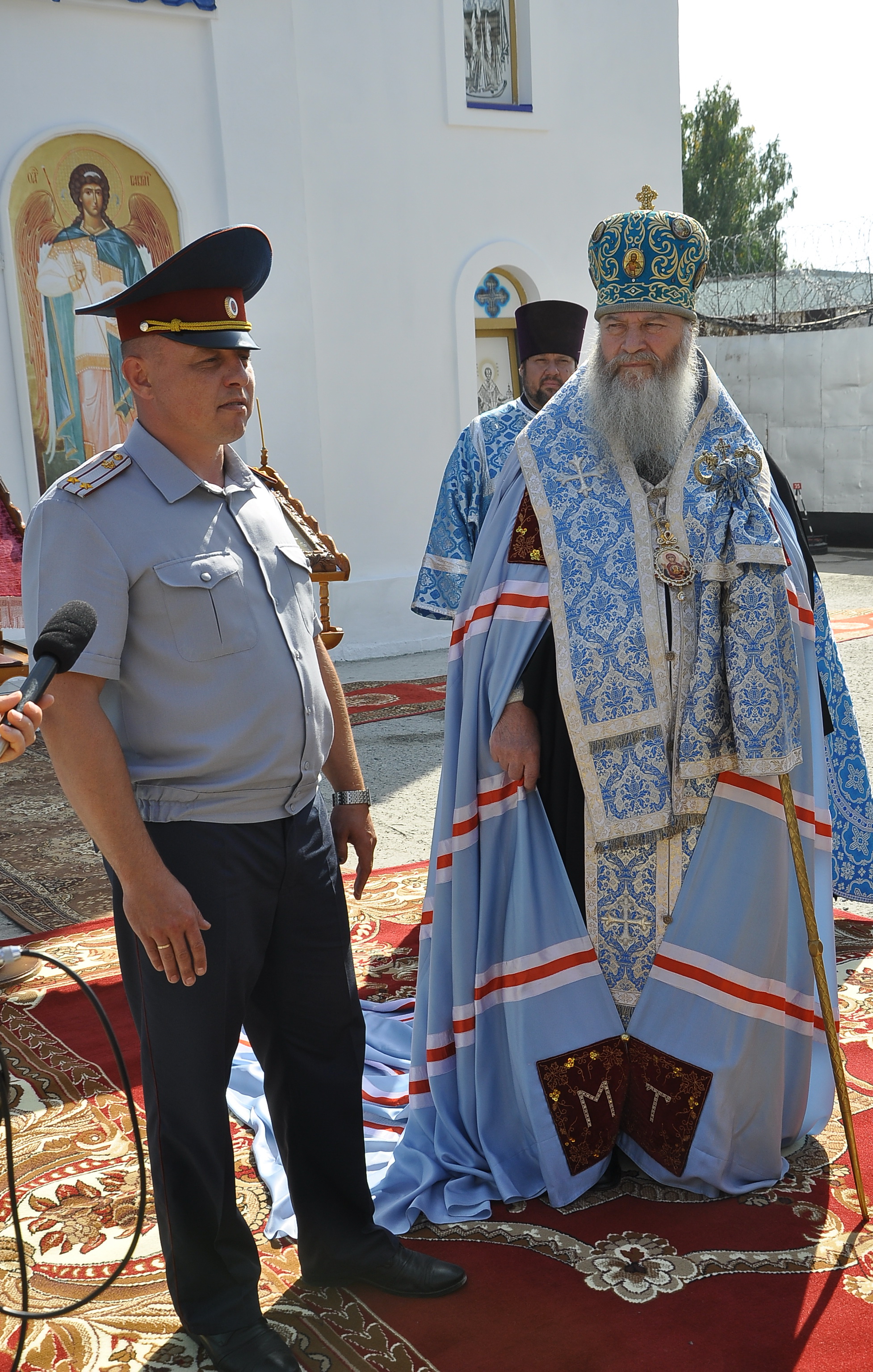 Олег Тишечко, заместитель начальника ГУФСИН России по Новосибирской области обращаясь к Митрополиту, рассказал о жизни осужденных православной общины. Он отметил, что дважды, иконы, написанные осужденным Николаем Ерохиным, становились победителем Всероссийского конкурса православной иконописи осужденных «Канон». К занятиям с осужденными привлекаются преподаватели различных школ нашей страны. Так, занятия по обучению осужденных колокольному звону специально из Москвы приезжает проводить заместитель руководителя Даниловского колокольного центра Екатерина Головизнина. - Екатерина и сегодня находится здесь с нами. Хочется выразить ей слова благодарности за нелегкий труд в деле духовного просвещения осужденных. Сегодня на территории исправительной колонии №18 мы встретились и потому, что храм в честь иконы Божией Матери Владимировской отмечает престольный праздник. От лица присутствующих в этот знаменательный для Вас день, Владыко, примите искренние поздравления с престольным праздником! Выражаем благодарность игумену Владимиру, сотрудникам отдела по тюремному служению и всем священнослужителям, окормляющим учреждения, за оказываемую помощь в деле духовного оздоровления осужденных. Проводимая вами работа важна в большей степени потому, что Церковь участвует в процессе духовного возрождения личности осужденного, пробуждения в нем совести и осознания чувства собственной вины за содеянное. Мы еще раз благодарим Владыку за личное участие в проводимых мероприятиях, которые оказывают плодотворное влияние на приобщение осужденных к православным нравственным ценностям, - сказал Олег Тишечко.