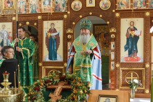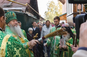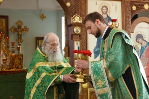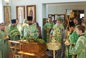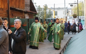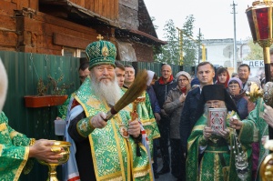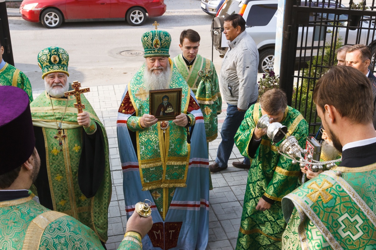 За богослужением Митрополит Тихон также освятил икону святых Петра и Февронии Муромских, которая будет размещена в храме при строящемся Епархиальном Доме молодежи.