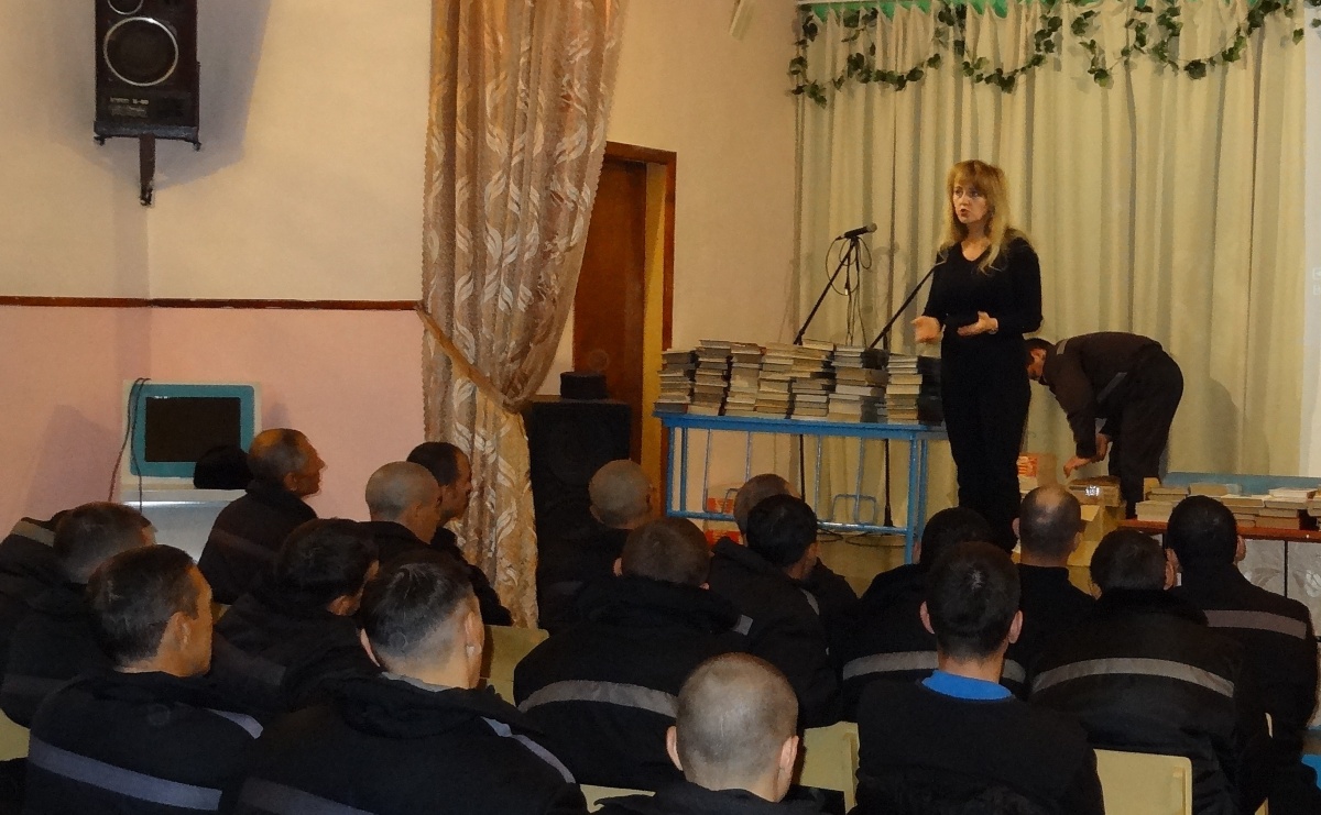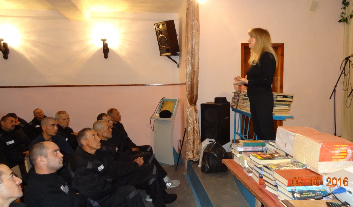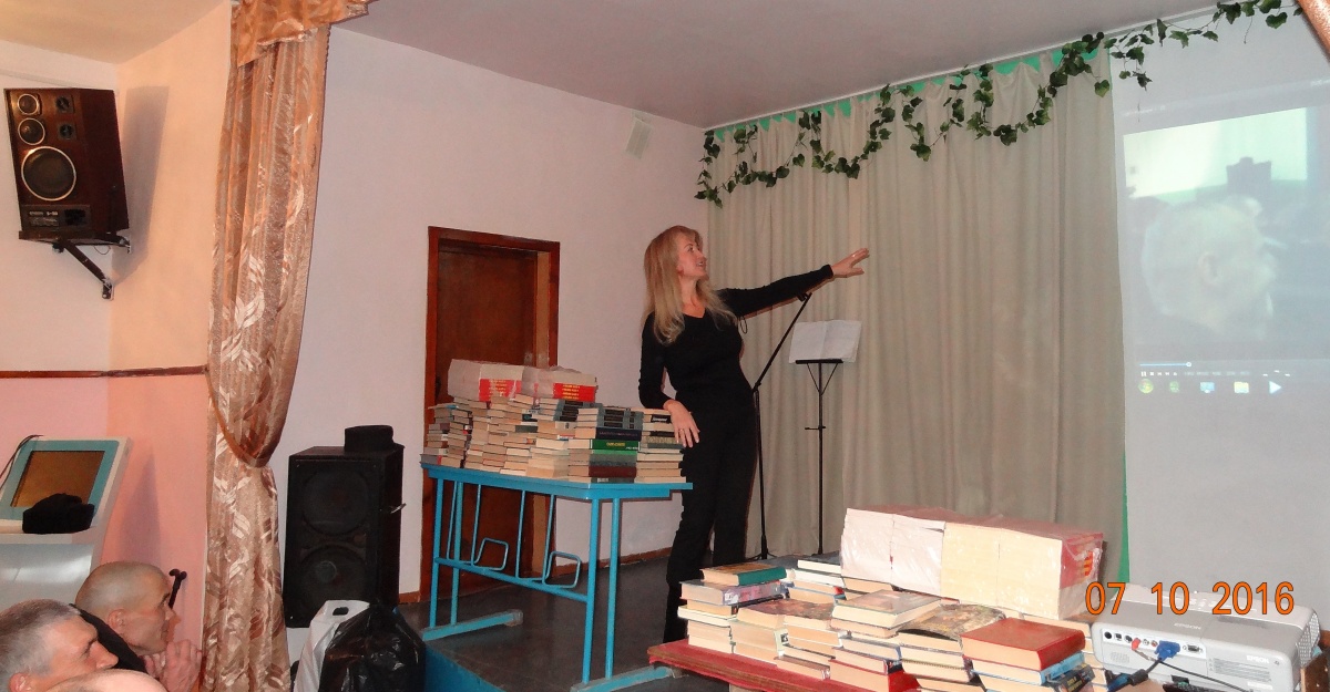 «Книжный десант» в исправительной колонии №21.Новосибирская государственная областная научная библиотека (директор член общественной палаты - Тарасова Светлана Антоновна) и Новосибирское библиотечное общество (директор Плотникова Ольга Ивановна), в очередной раз приняли участие в благотворительной акции «Давайте улыбнемся». В этот раз в библиотеку исправительной колонии №21, было передано около 700 экземпляров книг. Культурно-просветительское мероприятие организовала и провела - член Союза журналистов России Наталья Пендюрина. В первой части встречи, с осужденными состоялась беседа о современной художественной литературе зарубежных авторов. Затем осужденным был продемонстрирован широкоформатный художественный фильм «Вдова с острова Сен-Пьер» (Франция), режиссер: Патрис Леконт. В главных ролях: Жюльет Бинош, Даниель Отой, Эмир Кустурица.