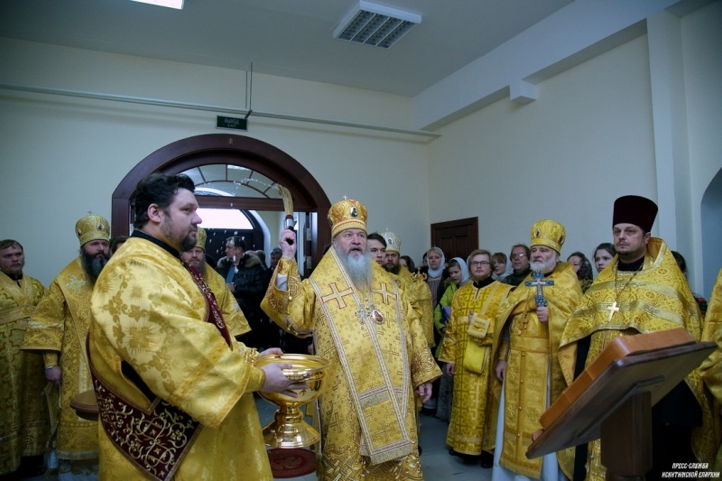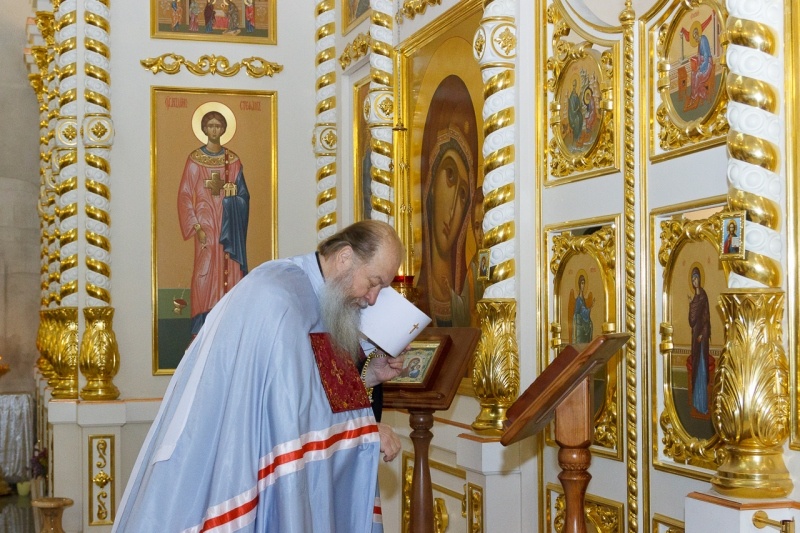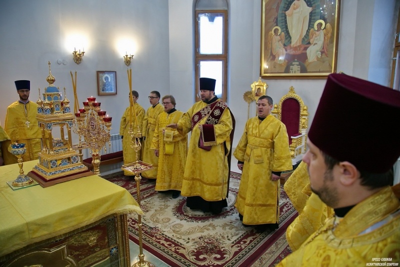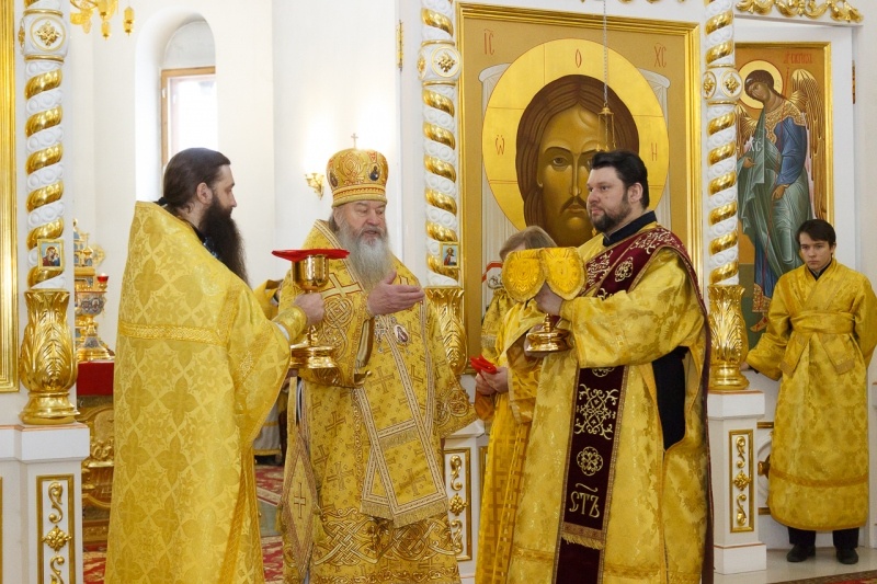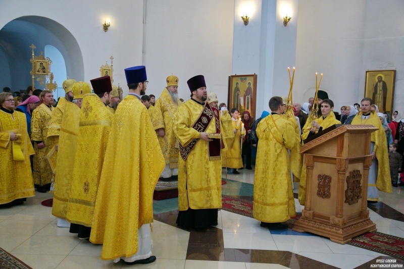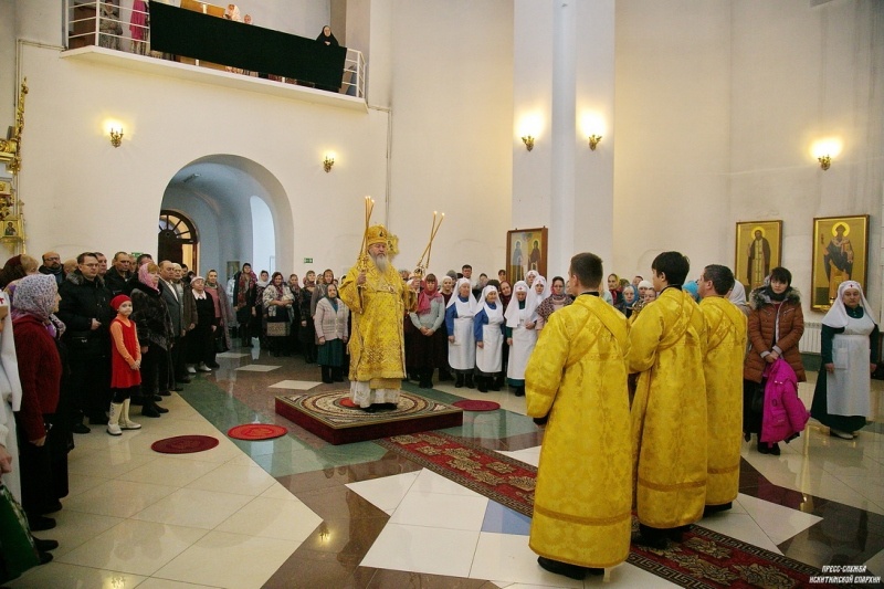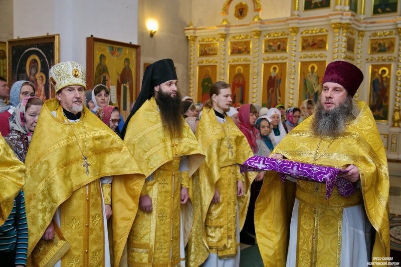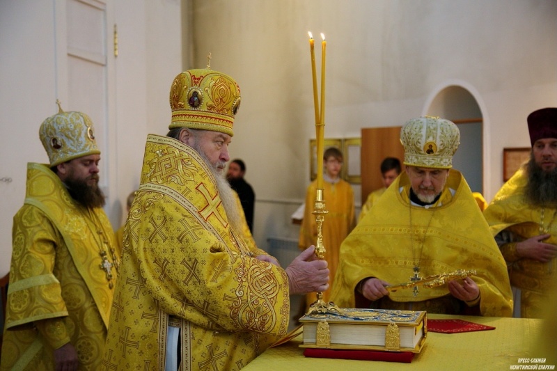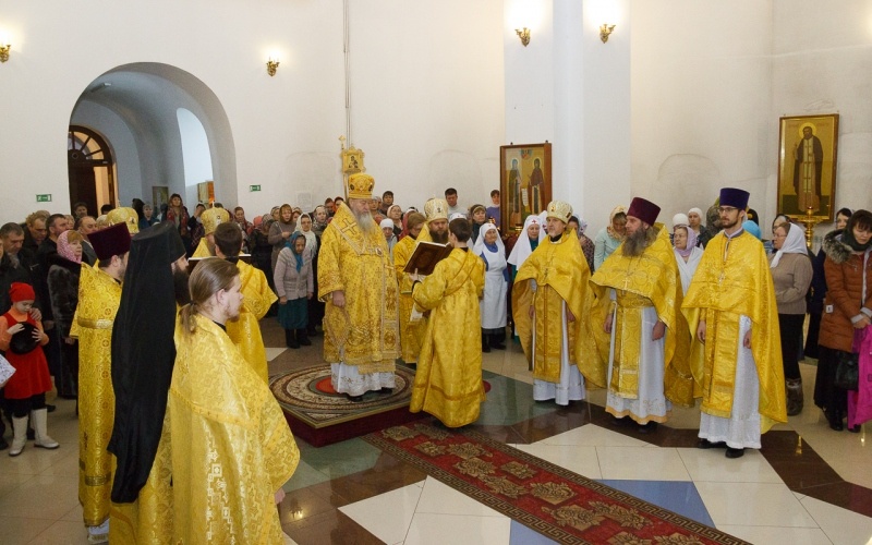 За богослужением митрополиту сослужили епископ Искитимский и Черепановский Лука, епископ Карасукский и Ордынский Филипп, епископ Каинский и Барабинский Феодосий, помощник настоятеля Вознесенского кафедрального собора Новосибирска протоиерей Борис Свинин, секретарь Новосибирского Епархиального управления протоиерей Георгий Патрин, заведующий канцелярией Новосибирского Епархиального управления протодиакон Александр Егоров, духовенство Искитимской епархии.