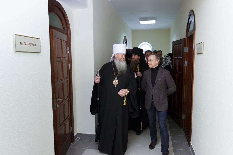 В заключение торжественной части Преосвященный Лука провел для почетных гостей экскурсию по зданию Духовно-просветительского центра. На первом и втором этажах расположены помещения для реализации образовательных, молодежных, социальных, творческих и патриотических проектов: методические кабинеты, актовые залы, классы для занятий. Третий этаж занимает Искитимское Епархиальное управление.