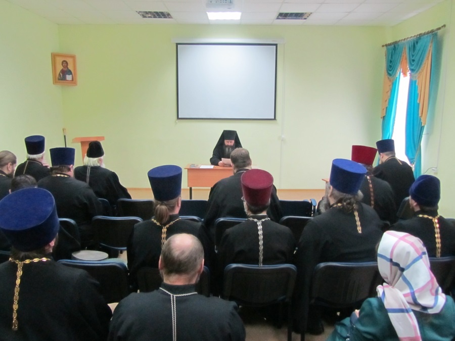 На годовое собрание приехали благочинные округов, руководители епархиальных отделов, клирики храмов, а также члены приходских советов, казнечеи (всего более 50 человек).