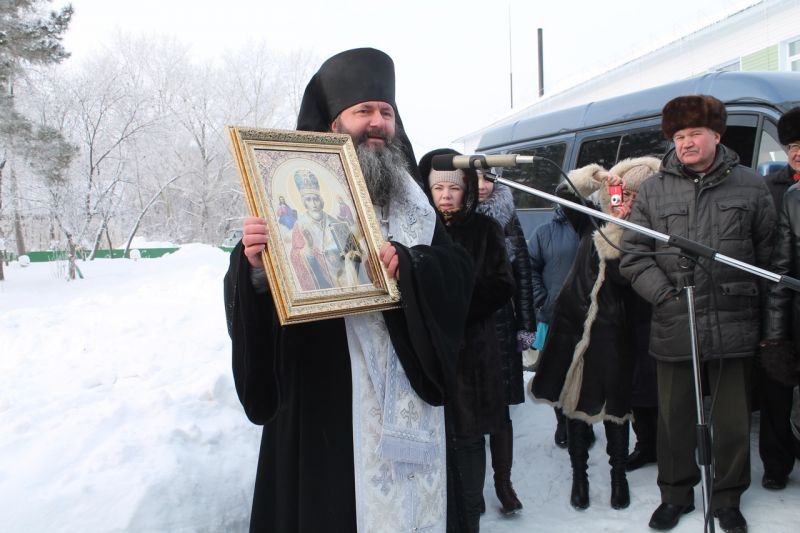 В дар новоосвященной часовне Владыка преподнес икону святителя Николая Чудотворца.