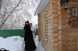 Его Преосвященству сослужили: благочинный Западного округа протоиерей Александр Соловьёв, и настоятель храма Покрова Пресвятой Богородицы в р.п. Чаны иерей Николай Тукуреев.