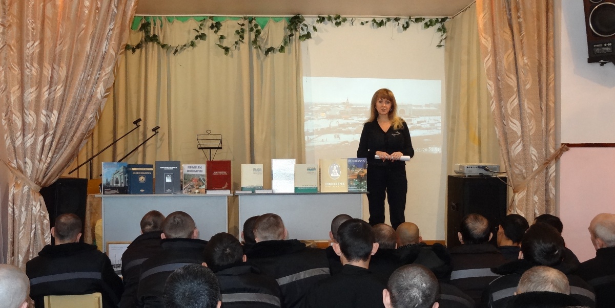 В исправительной колонии № 21 (п.Горный), состоялась презентация книжной экспозиции по краеведению Новосибирска29 января 2017 года, в исправительной колонии строгого режима № 21(п. Горный), состоялась презентация книжной экспозиции по краеведению Новосибирска. Идея создания книжной экспозиции по краеведению «Новониколаевск-Новосибирск-одна судьба на двоих», родилась в ходе обсуждения планов мероприятий на 2017гг., у заместителя начальника ИК-21 ГУФСИН России по Новосибирской области Георгия Смирнова и члена союза журналистов России Натальи Пендюриной. Экспозиция состоит из: презентационных, иллюстрированных, фото-альбомов по краеведению Новосибирска и Новониколаевска, и репродукций с изображением памятников архитектуры города. Она создавалась в областной организации «Общество книголюбов», не один год, и включает в себя интересную подборку книжных изданий, для тех, кто хочет познакомиться с историей сибирского края. История города – это история человеческих судеб, которые складывались и вершились на берегах великой Оби, соединенных железнодорожным мостом. Именно тогда, сто с лишним лет назад, зародился тот особый, новосибирский дух, то особое высокое напряжение, присущее нашему городу, которые живут и поныне. Славные имена, представленные в этих книгах – красноречивое тому свидетельство. Выдающиеся новосибирцы всегда ставили перед собой высокие задачи, достигали высоких рубежей и прославляли своими делами и талантами родной город не только в России, но и далеко за ее пределами- рассказала, руководитель областной организации «Общества книголюбов»Наталья Пендюрина. Издание таких книг – это знак признательности нынешнего поколения горожан выдающимся новосибирцам. Экспозиция размещена в библиотеки учреждения, что бы у всех желающих, была возможность, познакомиться с историей родного края. В исправительной колонии №21, не первый раз проходят культурно-просветительские мероприятия, в рамках благотворительной акции «Давайте улыбнемся». Осужденные всегда с интересом принимают в них участие. В этот раз, все мероприятие было посвящено истории Новосибирска. Осужденным был представлен: информационный доклад об истории и становлении города, широко-форматное слайд-шоу с видами Новосибирских достопримечательностей, викторина на тему «Узнай свой город лучше!», и, поощрительные призы для активных участников творческой встречи. Вовлечены в процесс дискуссии были все присутствующие. Наперебой, отвечали на вопросы викторины, которые были заранее приготовлены организаторами исторического экскурса. С радостью получали в подарок сладкий приз и книгу сибирских поэтов. Просили приезжать еще и организовывать познавательные развивающие, заставляющие думать мероприятия – прокомментировал Георгий Смирнов. В библиотеку исправительной колонии №21, было передано более 800 экземпляров книг содержательной, художественной литературы. Так же запланировано, что экспозиция по истории Новосибирска, будет пополняться книгами сибирских поэтов и писателей.