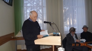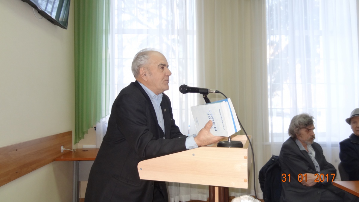 Встреча в клубе православных авторовВ конференц-зале Новосибирского окружного дома офицеров, состоялась очередная встреча православных авторов «В начале было слово». Многие авторы издали свои книги в редакционном центре «Светоч» Новосибирской областной общественной организации «Общество книголюбов». Когда выходит новая книга, обязательно проходит ее презентация в клубе авторов, в социальных сетях и СМИ. За последние три месяца, в свет вышли новые книги: И.М.Малетина «Калейдоскоп»., Л.С.Елисеевой «Люськины истории».,Н.В.Ефимовой «Дружба на все времена»., В.Д.Мезенцева «Любовь и жестокость». В этот раз состоялась встреча с новой книгой Владимира Дмитриевича Мезенцева. Не только члены клуба приняли участие в ее обсуждении. На заседание приехали однокурсники и представители Колыванского землячества, многие проявили интерес к его творчеству и хотели поделиться своими впечатлениями. Вот одно из выступлений книголюба со стажем. Людмила Трофимовна Демьяненко - с 1981 года, является членом союза журналистов России. Окончила филологический факультет Киевского государственного университета им. Шевченко. С 1977 по 1982 годы работала в редакции молодежных программ «Современник» Новосибирского телевидения. С 1982 по 1992годы занималась документальной журналистикой. В декабре 1992 года началась тринадцатилетняя редакторская деятельность на радио НЗХК. Она активный член «Общества книголюбов», участник пяти народных альманахов и давний друг Татьяны Викторовны Пендюриной. В 2008 году, под общей редакцией к.и.н. И.Ф. Цыплакова. (автор и руководитель проекта Т.В.Пендюрина) вышел в свет Литературно-краеведческий сборник «Созвездие земляков». Редактором была Людмила Трофимовна Демьяненко. Вот, что она пишет о новой книге Владимира Мезенцева. «Владимир Мезенцев в своей четвертой книге «Любовь и жестокость» делает шаг вперед в изучении внутреннего мира человека. Герои его новелл интересны поиском нравственной опоры в жизни. Книгу открывает романтическая новелла «Лето в деревне и первая любовь», написанная по свежим воспоминаниям в 1965 году. Здесь удачно выстроен сюжет с диалогами, размышлениями, пейзажными зарисовками, сценами купания и подробностями быта. Это помогает раскрытию цельного характера главного героя – ершистого подростка Вовки. Ему дано много от природы. Он неутомим на заготовке кормов на сенокосе. Любитель водной стихии – заядлый рыбак и лучший ныряльщик. Мечтатель и поэт. Но, ему хочется большего – научиться понимать себя и других людей, чтобы не стыдиться плохих поступков и мыслей. Герой взрослеет, вглядываясь в мир, в людей, ищет ответы на трудные вопросы жизни. Понять происходящее помогает его живая душа. Он любуется березками, дождем, просторами родной земли. Ему нравятся поля с волнистой нивой, с парящей весной пашней. Таким он предстает перед нами в мелодраме «Лидка». В письме к любимой девушке он пишет о чуткости в отношениях, об обязательной мечте у каждого человека для достижения цели. Такова программа молодого героя и она отслеживается на всех страницах книги. Ведь именно живая душа может почувствовать чужую боль – говорится в семи новеллах, мелодраме и стихах. Сочувствию учит нас автор. В новелле «Ясновидец» он делится воспоминаниями о встрече в студенческие годы со знаменитым Вольфом Мессингом на его выступлении в а