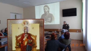 Так же, отец Иаков, представил собравшимся, одну из главных святынь современной России - икону Божией Матери «Державная», обретенную 2(15) марта 1917г - в самый день отречения от престола страстотерпца царя Николая II. Cогласно церковному преданию, этот чудотворный образ имеет особое промышление о конечных судьбах мира. Сама Богоматерь хранит мир до времени пришествия антихриста, Сама становится духовной Самодержицей нашей страны и охранительницей Престола для будущего Помазанника Божия. Образ является также залогом прощения русского народа, который через неисчислимые страдания, кровь и слезы должен прийти к покаянию. Символическое значение явления иконы «Державная» состоит в том, что гибель монархии послана народу в наказание, но сама Богородица хранит символы царской власти, что даёт надежду на покаяние и возрождение России и русского государства. Пред иконой Пресвятой Богородицы «Державная» молятся о правде, сердечной радости, нелицемерной любви друг к другу, о мире в стране, о спасении и сохранении России, о покровительстве трона и государства, об избавлении от иноплеменных и о даровании исцелений телесных и душевных.