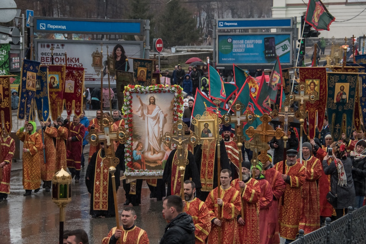 Пасхальный крестный ход проходит в Новосибирске второй раз, в прошлом году шествие в честь дня Светлого Христова Воскресения состоялось впервые, по данным полиции, в крестном ходе приняли участии 13,5 тысяч человек.