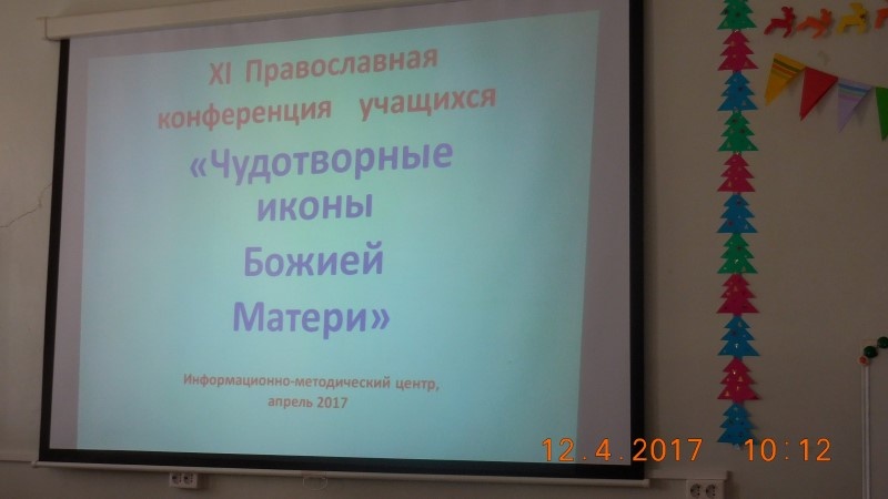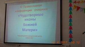Ученическая конференция «Чудотворные иконы Божией Матери»12 апреля в Кочках прошла XI Районная ученическая конференция «Чудотворные иконы Божией Матери». На конференцию были представлены 25 ученических работ по чудотворным иконам Божией Матери. Прозвучало 9 докладов и была показана видео-запись одного реферата.