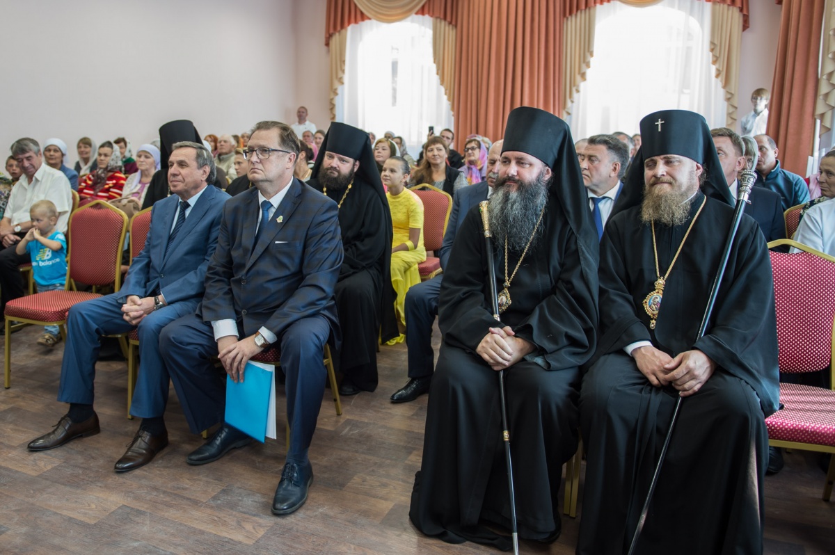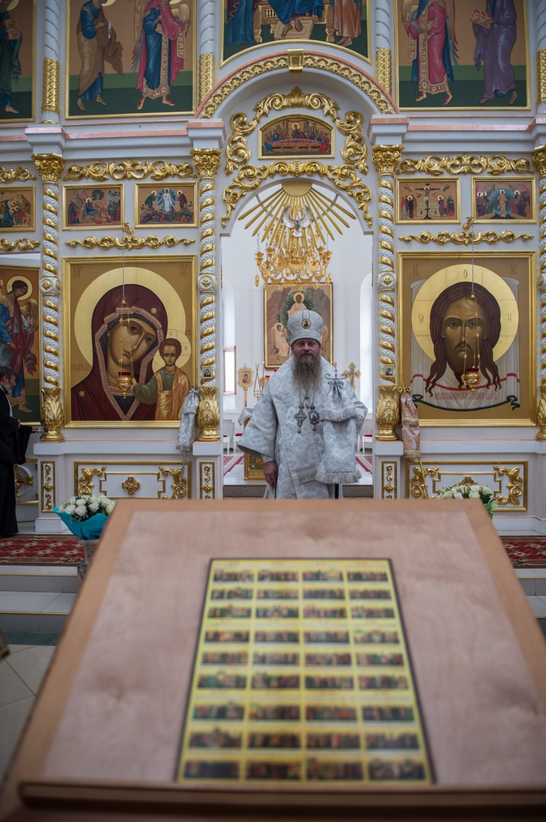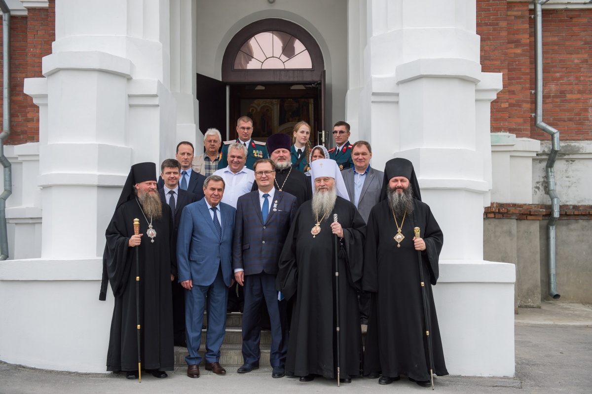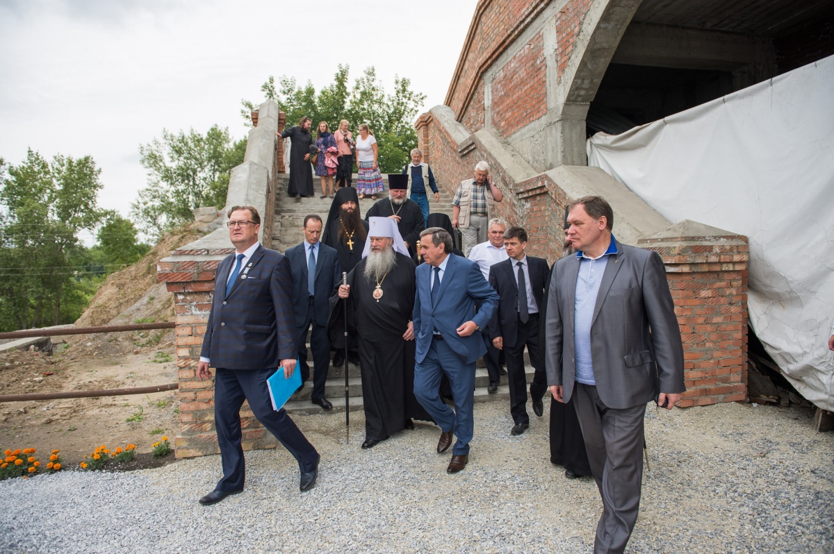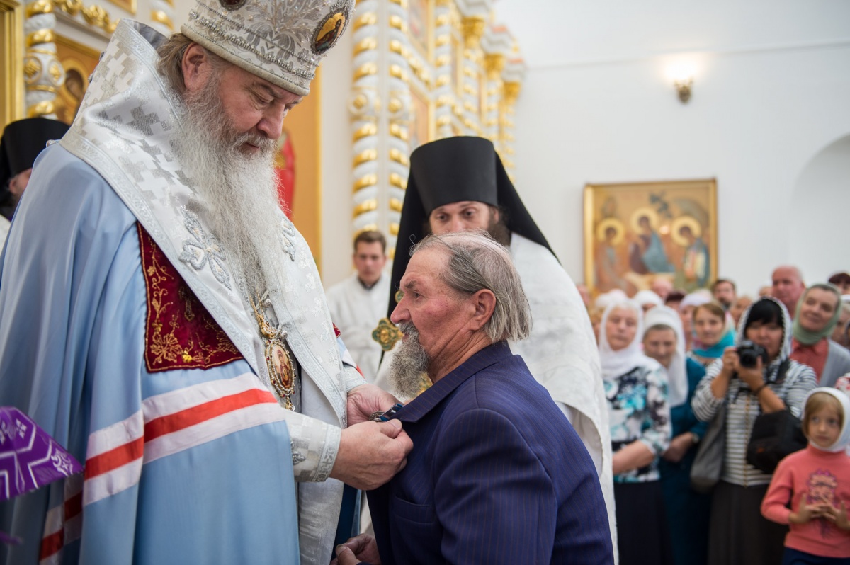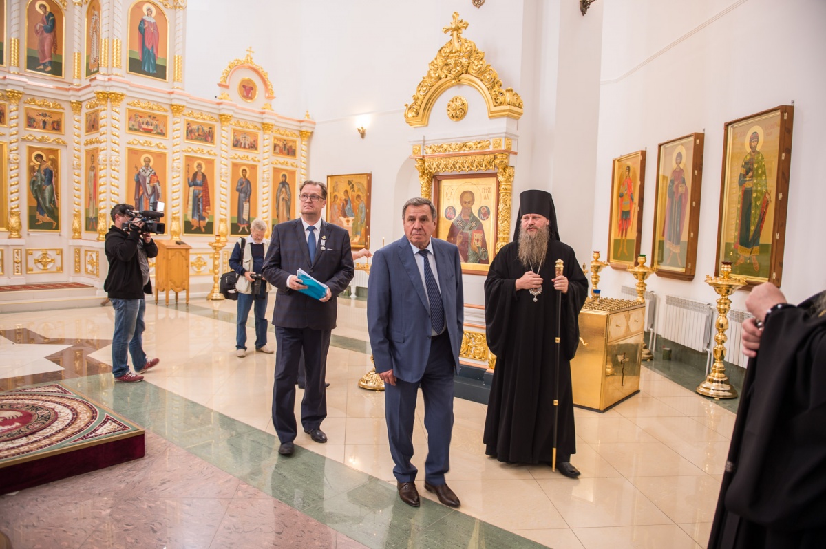 Состоялись церковные торжества по случаю 300-летия города Искитима11 августа 2017 года епископ Искитимский и Черепановский Лука в сослужении гостей-архипастырей совершил чин великого освящения главного придела кафедрального собора во имя святителя Николая города Искитима. В этот же день при участии митрополита Новосибирского и Бердского Тихона и губернатора Новосибирской области В.Ф. Городецкого состоялся День открытых дверей епархиального Духовно-просветительского центра. Преосвященнейшему Луке сослужили архиепископ Салехардский и Ново-Уренгойский Николай и епископ Каинский и Барабинский Феодосий, а также духовенство Искитимской епархии и гости в священном сане. По окончании чина освящения Божественную литургию в новоосвященном храме возглавил архиепископ Салехардский и Ново-Уренгойский Николай, который с 1997 года на протяжении 13 лет руководил строительством собора. По окончании богослужения на торжества прибыл Высокопреосвященнейший Тихон, митрополит Новосибирский и Бердский. Владыка совершил благодарственный молебен и окропил храм святой водой. «…Общая радость для всех, что сегодня освящен кафедральный собор во имя святителя Николая Мирликийских чудотворца города Искитима. Храм этот мы начинали строить еще в 80-е годы прошлого столетия, и шла стройка с большим трудом. Начинал благое дело отец Владимир Аухимик, ему помогал архиепископ Софроний. Оба уже давно упокоились. Архиепископ Николай, будучи еще священником, много лет положил на это строительство. Долго решали, как строить. По ходу строительства менялся проект купола. Просчитывали, как укрепить основание, поскольку храм стоит на вершине горы. Но в итоге он выстроен и освящен, поскольку не оскудевала ваша общая молитва на завершение строительства и не оскудевала рука добровольных помощников, как руководителей городских предприятий, так и отдельных прихожан, вносящих пожертвования на строительство храма...» – сказал митрополит Тихон, обращаясь к собравшимся. Также глава Новосибирской митрополии передал в дар храму икону Божией Матери «Умягчение злых сердец» с пожеланием, чтобы Богородица хранила город Искитим и всех горожан. Памятным епархиальным знаком «За усердные труды» Высокопреосвященнейший Тихон наградил прихожан кафедрального собора во имя святителя Николая: Елену Мякчилину, Валентину Атаманову и Николая Баранова – все они с самого начала трудятся в соборе. Официальную часть торжеств, приуроченных к юбилею престольного града Искитимской епархии, продолжил День открытых дверей епархиального Духовно-просветительского центра, который посетил губернатор Новосибирской области В.Ф. Городецкий. В актовом зале состоялся торжественный акт, в ходе которого, обращаясь со словами поздравления к собравшимся, губернатор наградил ктиторов Искитимской епархии юбилейной медалью «80 лет Новосибирской области». Открывая торжественный акт, митрополит Новосибирский и Бердский Тихон удостоил главу города Искитима Сергея Завражина и главу Искитимского района Олега Лагоду медалями «За служение Новосибирской епархии Русской Православной Церкви» III степени. Далее почетные гости познакомились с работой Духовно-просветительского центра: послушали выступления поэтов на встрече епархиального общества любителей русской словесности, вместе подвели ит