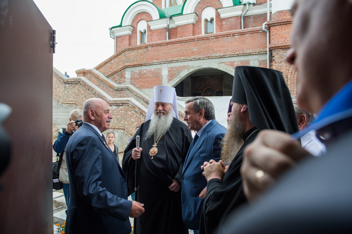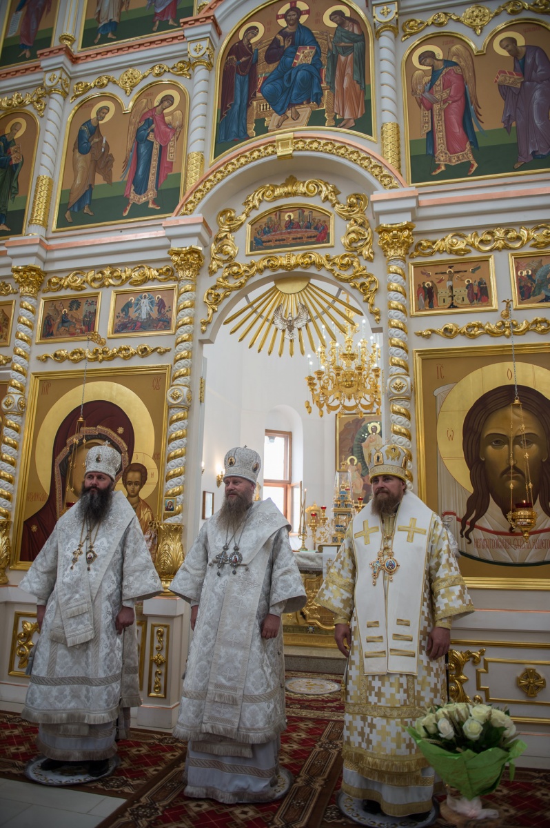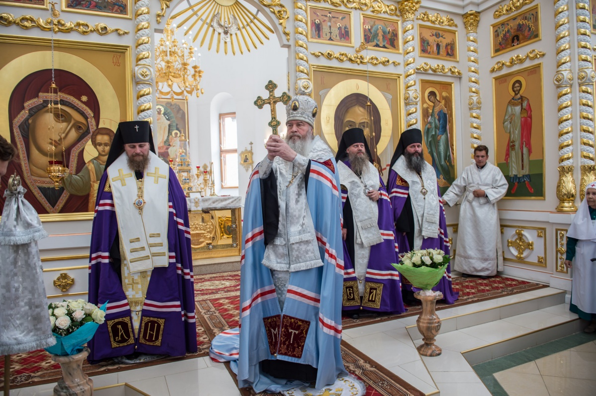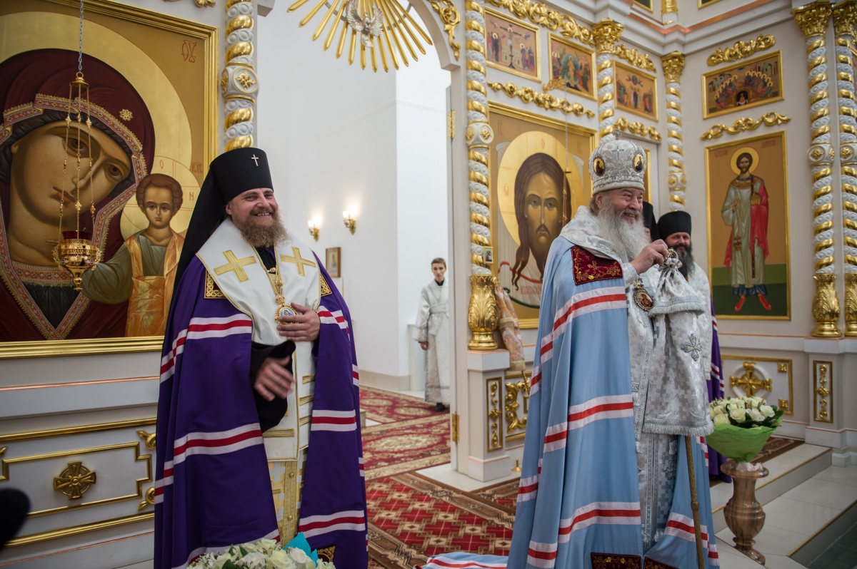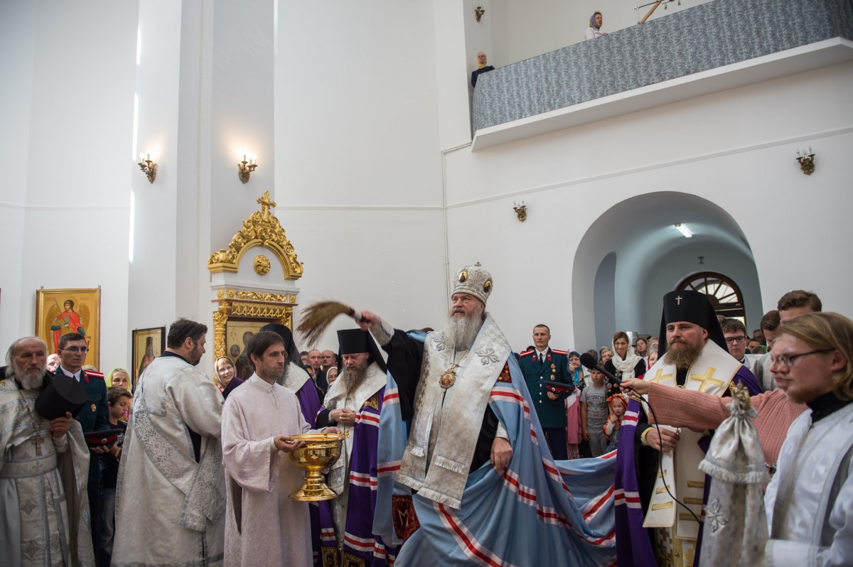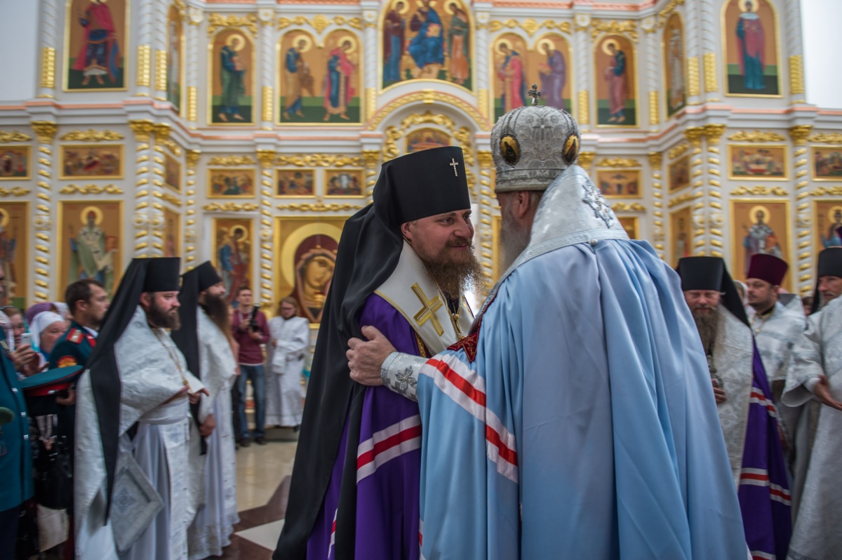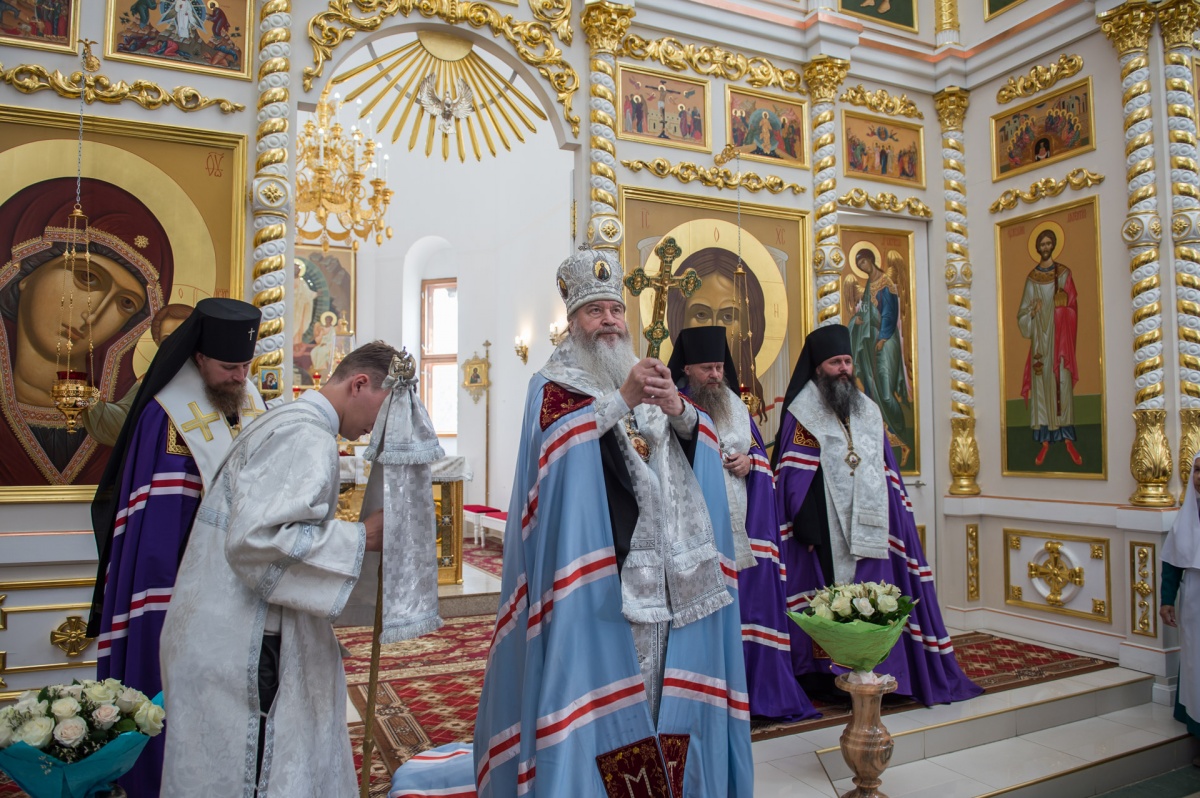 Состоялись церковные торжества по случаю 300-летия города Искитима11 августа 2017 года епископ Искитимский и Черепановский Лука в сослужении гостей-архипастырей совершил чин великого освящения главного придела кафедрального собора во имя святителя Николая города Искитима. В этот же день при участии митрополита Новосибирского и Бердского Тихона и губернатора Новосибирской области В.Ф. Городецкого состоялся День открытых дверей епархиального Духовно-просветительского центра. Преосвященнейшему Луке сослужили архиепископ Салехардский и Ново-Уренгойский Николай и епископ Каинский и Барабинский Феодосий, а также духовенство Искитимской епархии и гости в священном сане. По окончании чина освящения Божественную литургию в новоосвященном храме возглавил архиепископ Салехардский и Ново-Уренгойский Николай, который с 1997 года на протяжении 13 лет руководил строительством собора. По окончании богослужения на торжества прибыл Высокопреосвященнейший Тихон, митрополит Новосибирский и Бердский. Владыка совершил благодарственный молебен и окропил храм святой водой. «…Общая радость для всех, что сегодня освящен кафедральный собор во имя святителя Николая Мирликийских чудотворца города Искитима. Храм этот мы начинали строить еще в 80-е годы прошлого столетия, и шла стройка с большим трудом. Начинал благое дело отец Владимир Аухимик, ему помогал архиепископ Софроний. Оба уже давно упокоились. Архиепископ Николай, будучи еще священником, много лет положил на это строительство. Долго решали, как строить. По ходу строительства менялся проект купола. Просчитывали, как укрепить основание, поскольку храм стоит на вершине горы. Но в итоге он выстроен и освящен, поскольку не оскудевала ваша общая молитва на завершение строительства и не оскудевала рука добровольных помощников, как руководителей городских предприятий, так и отдельных прихожан, вносящих пожертвования на строительство храма...» – сказал митрополит Тихон, обращаясь к собравшимся. Также глава Новосибирской митрополии передал в дар храму икону Божией Матери «Умягчение злых сердец» с пожеланием, чтобы Богородица хранила город Искитим и всех горожан. Памятным епархиальным знаком «За усердные труды» Высокопреосвященнейший Тихон наградил прихожан кафедрального собора во имя святителя Николая: Елену Мякчилину, Валентину Атаманову и Николая Баранова – все они с самого начала трудятся в соборе. Официальную часть торжеств, приуроченных к юбилею престольного града Искитимской епархии, продолжил День открытых дверей епархиального Духовно-просветительского центра, который посетил губернатор Новосибирской области В.Ф. Городецкий. В актовом зале состоялся торжественный акт, в ходе которого, обращаясь со словами поздравления к собравшимся, губернатор наградил ктиторов Искитимской епархии юбилейной медалью «80 лет Новосибирской области». Открывая торжественный акт, митрополит Новосибирский и Бердский Тихон удостоил главу города Искитима Сергея Завражина и главу Искитимского района Олега Лагоду медалями «За служение Новосибирской епархии Русской Православной Церкви» III степени. Далее почетные гости познакомились с работой Духовно-просветительского центра: послушали выступления поэтов на встрече епархиального общества любителей русской словесности, вместе подвели ит