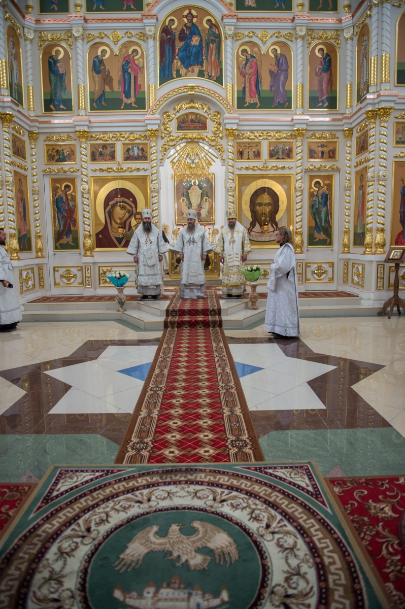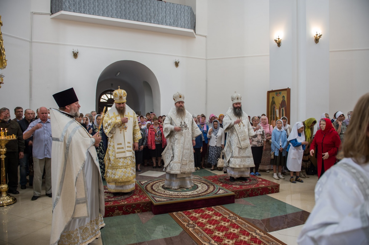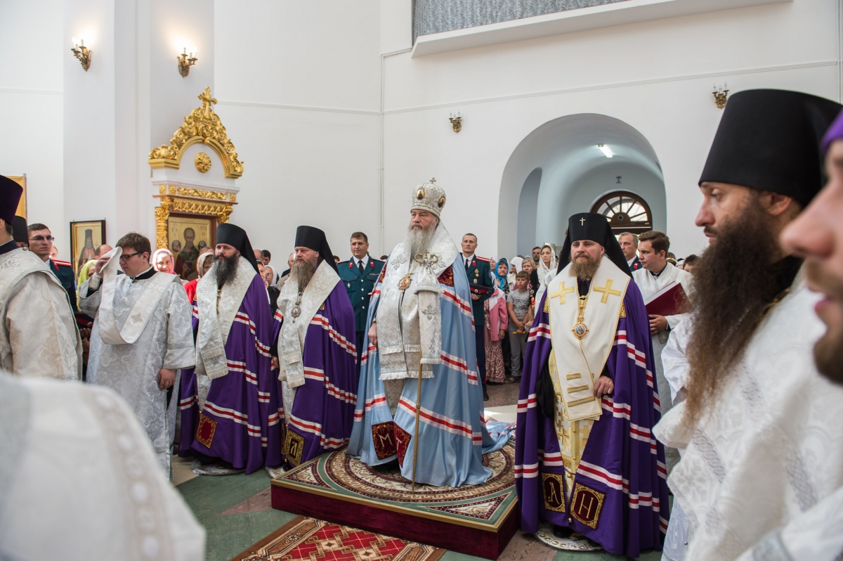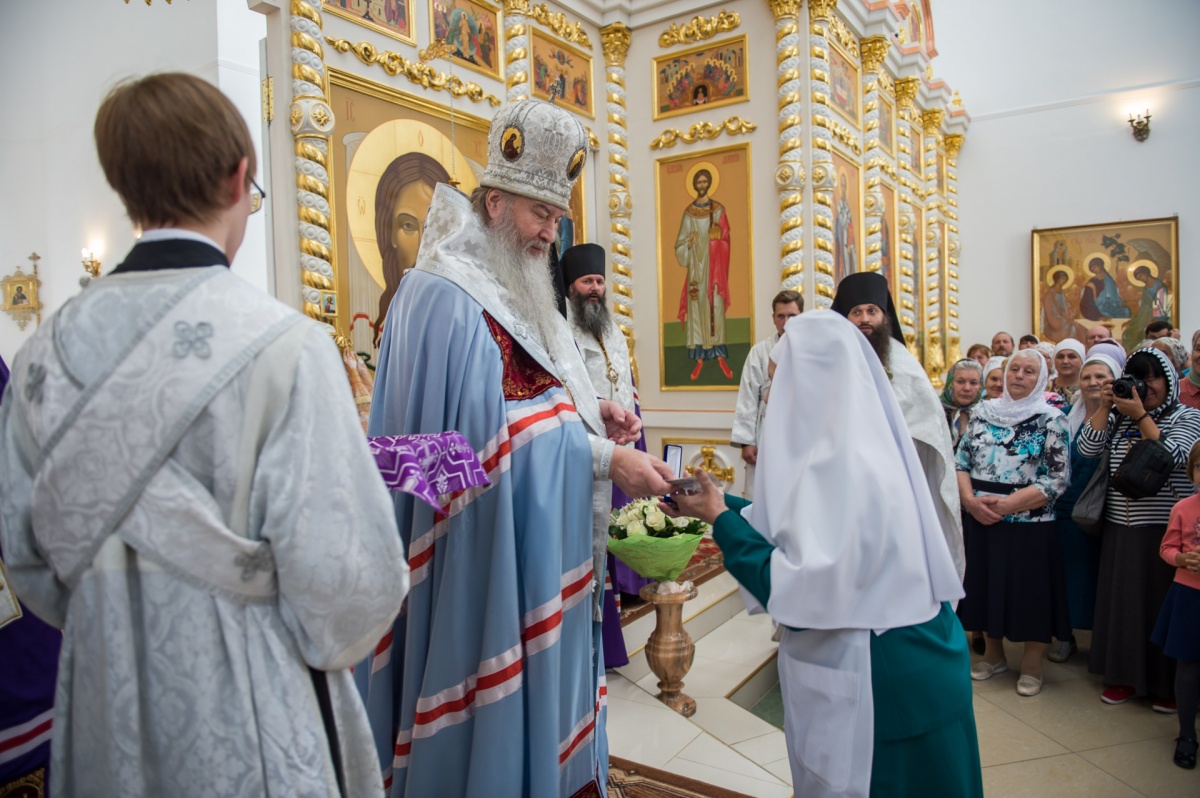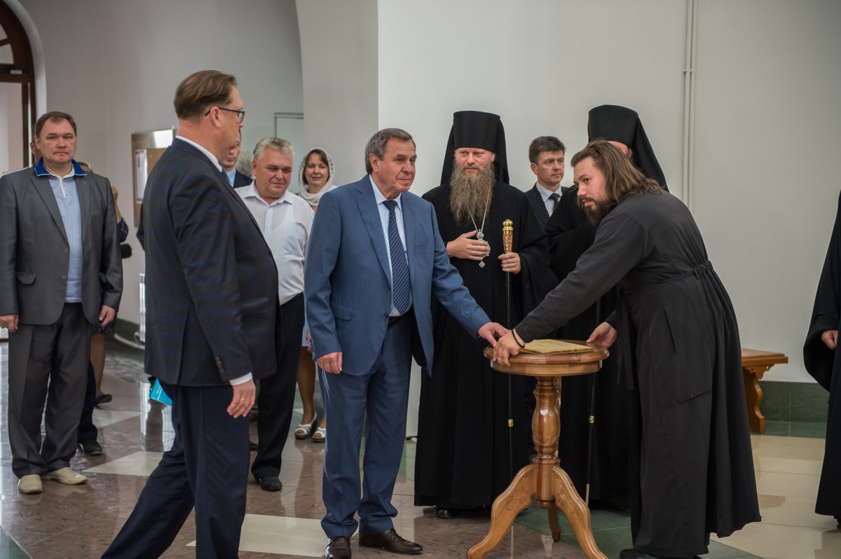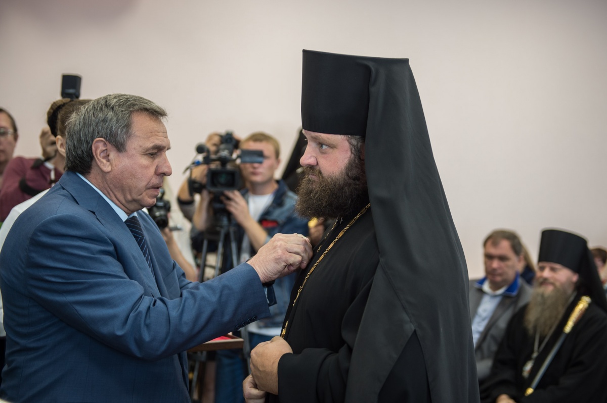 Состоялись церковные торжества по случаю 300-летия города Искитима11 августа 2017 года епископ Искитимский и Черепановский Лука в сослужении гостей-архипастырей совершил чин великого освящения главного придела кафедрального собора во имя святителя Николая города Искитима. В этот же день при участии митрополита Новосибирского и Бердского Тихона и губернатора Новосибирской области В.Ф. Городецкого состоялся День открытых дверей епархиального Духовно-просветительского центра. Преосвященнейшему Луке сослужили архиепископ Салехардский и Ново-Уренгойский Николай и епископ Каинский и Барабинский Феодосий, а также духовенство Искитимской епархии и гости в священном сане. По окончании чина освящения Божественную литургию в новоосвященном храме возглавил архиепископ Салехардский и Ново-Уренгойский Николай, который с 1997 года на протяжении 13 лет руководил строительством собора. По окончании богослужения на торжества прибыл Высокопреосвященнейший Тихон, митрополит Новосибирский и Бердский. Владыка совершил благодарственный молебен и окропил храм святой водой. «…Общая радость для всех, что сегодня освящен кафедральный собор во имя святителя Николая Мирликийских чудотворца города Искитима. Храм этот мы начинали строить еще в 80-е годы прошлого столетия, и шла стройка с большим трудом. Начинал благое дело отец Владимир Аухимик, ему помогал архиепископ Софроний. Оба уже давно упокоились. Архиепископ Николай, будучи еще священником, много лет положил на это строительство. Долго решали, как строить. По ходу строительства менялся проект купола. Просчитывали, как укрепить основание, поскольку храм стоит на вершине горы. Но в итоге он выстроен и освящен, поскольку не оскудевала ваша общая молитва на завершение строительства и не оскудевала рука добровольных помощников, как руководителей городских предприятий, так и отдельных прихожан, вносящих пожертвования на строительство храма...» – сказал митрополит Тихон, обращаясь к собравшимся. Также глава Новосибирской митрополии передал в дар храму икону Божией Матери «Умягчение злых сердец» с пожеланием, чтобы Богородица хранила город Искитим и всех горожан. Памятным епархиальным знаком «За усердные труды» Высокопреосвященнейший Тихон наградил прихожан кафедрального собора во имя святителя Николая: Елену Мякчилину, Валентину Атаманову и Николая Баранова – все они с самого начала трудятся в соборе. Официальную часть торжеств, приуроченных к юбилею престольного града Искитимской епархии, продолжил День открытых дверей епархиального Духовно-просветительского центра, который посетил губернатор Новосибирской области В.Ф. Городецкий. В актовом зале состоялся торжественный акт, в ходе которого, обращаясь со словами поздравления к собравшимся, губернатор наградил ктиторов Искитимской епархии юбилейной медалью «80 лет Новосибирской области». Открывая торжественный акт, митрополит Новосибирский и Бердский Тихон удостоил главу города Искитима Сергея Завражина и главу Искитимского района Олега Лагоду медалями «За служение Новосибирской епархии Русской Православной Церкви» III степени. Далее почетные гости познакомились с работой Духовно-просветительского центра: послушали выступления поэтов на встрече епархиального общества любителей русской словесности, вместе подвели ит
