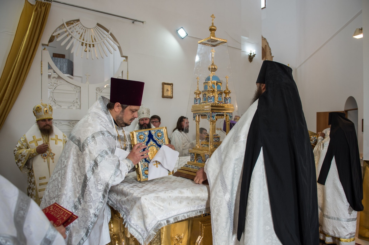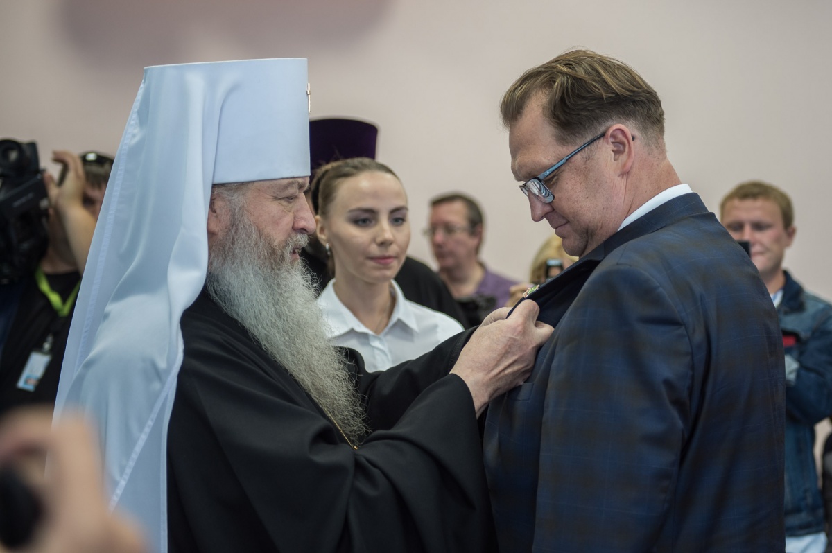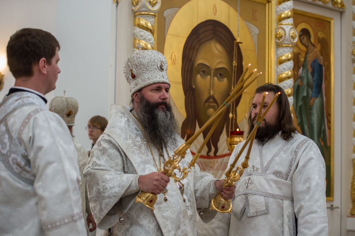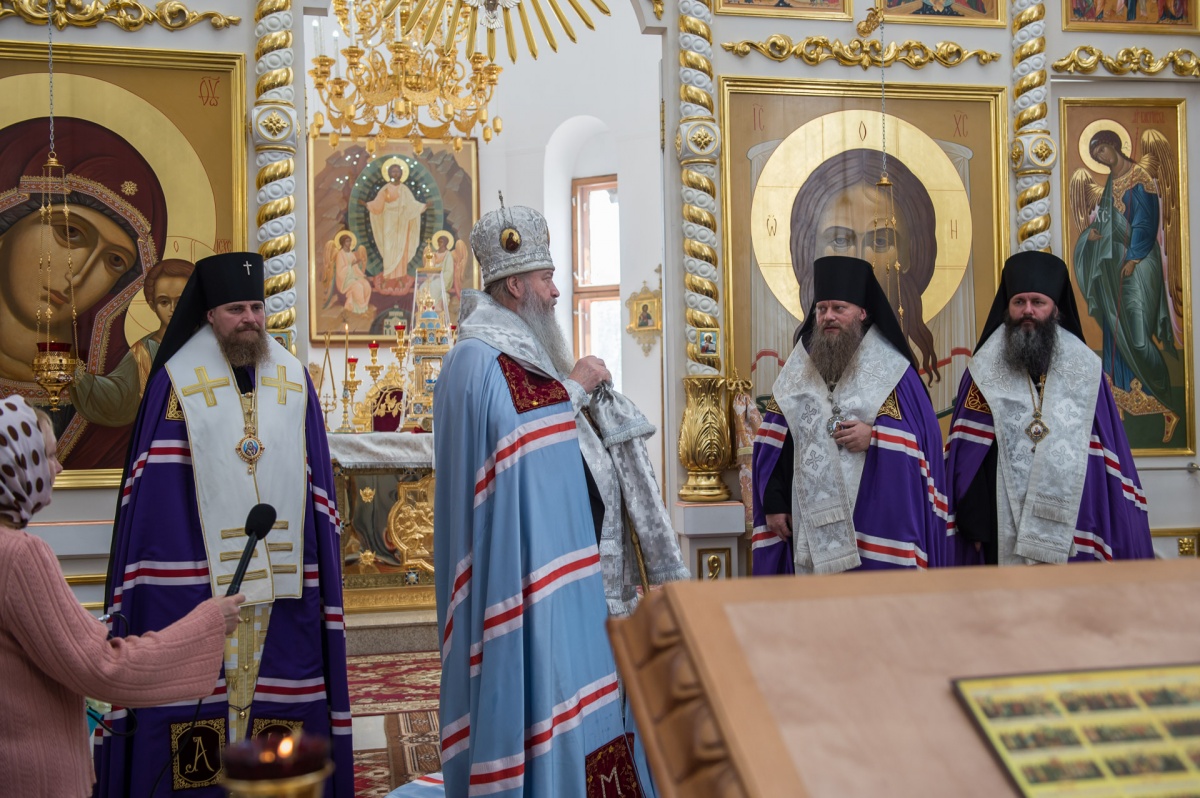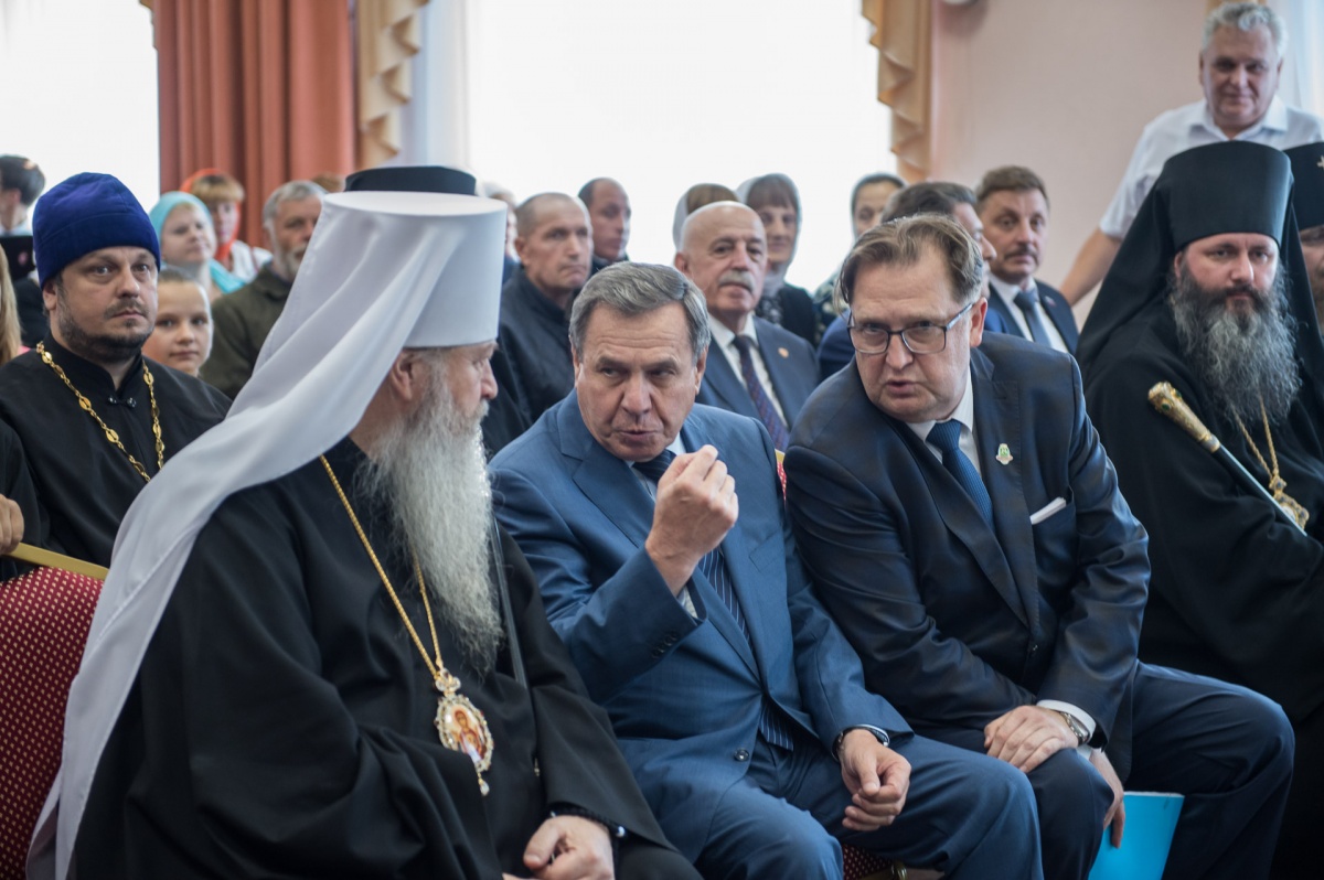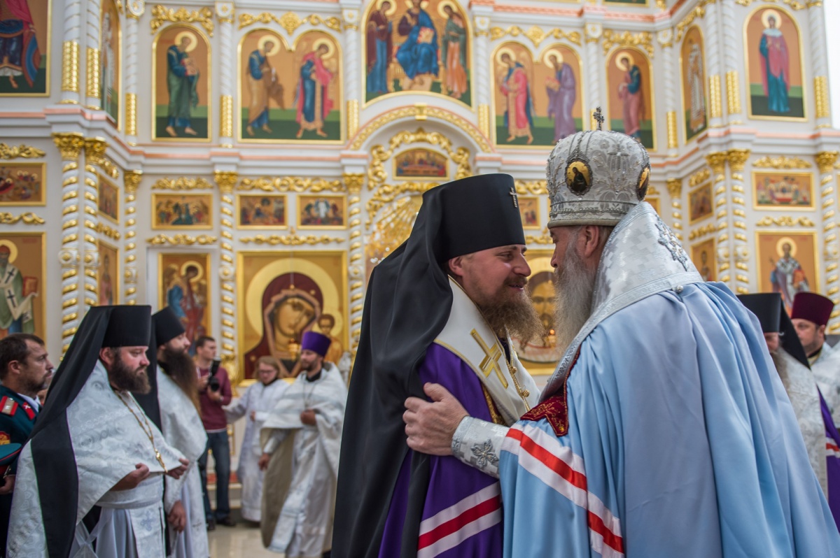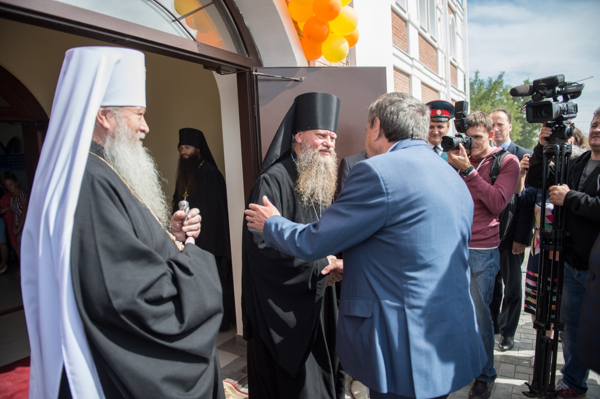 Состоялись церковные торжества по случаю 300-летия города Искитима11 августа 2017 года епископ Искитимский и Черепановский Лука в сослужении гостей-архипастырей совершил чин великого освящения главного придела кафедрального собора во имя святителя Николая города Искитима. В этот же день при участии митрополита Новосибирского и Бердского Тихона и губернатора Новосибирской области В.Ф. Городецкого состоялся День открытых дверей епархиального Духовно-просветительского центра. Преосвященнейшему Луке сослужили архиепископ Салехардский и Ново-Уренгойский Николай и епископ Каинский и Барабинский Феодосий, а также духовенство Искитимской епархии и гости в священном сане. По окончании чина освящения Божественную литургию в новоосвященном храме возглавил архиепископ Салехардский и Ново-Уренгойский Николай, который с 1997 года на протяжении 13 лет руководил строительством собора. По окончании богослужения на торжества прибыл Высокопреосвященнейший Тихон, митрополит Новосибирский и Бердский. Владыка совершил благодарственный молебен и окропил храм святой водой. «…Общая радость для всех, что сегодня освящен кафедральный собор во имя святителя Николая Мирликийских чудотворца города Искитима. Храм этот мы начинали строить еще в 80-е годы прошлого столетия, и шла стройка с большим трудом. Начинал благое дело отец Владимир Аухимик, ему помогал архиепископ Софроний. Оба уже давно упокоились. Архиепископ Николай, будучи еще священником, много лет положил на это строительство. Долго решали, как строить. По ходу строительства менялся проект купола. Просчитывали, как укрепить основание, поскольку храм стоит на вершине горы. Но в итоге он выстроен и освящен, поскольку не оскудевала ваша общая молитва на завершение строительства и не оскудевала рука добровольных помощников, как руководителей городских предприятий, так и отдельных прихожан, вносящих пожертвования на строительство храма...» – сказал митрополит Тихон, обращаясь к собравшимся. Также глава Новосибирской митрополии передал в дар храму икону Божией Матери «Умягчение злых сердец» с пожеланием, чтобы Богородица хранила город Искитим и всех горожан. Памятным епархиальным знаком «За усердные труды» Высокопреосвященнейший Тихон наградил прихожан кафедрального собора во имя святителя Николая: Елену Мякчилину, Валентину Атаманову и Николая Баранова – все они с самого начала трудятся в соборе. Официальную часть торжеств, приуроченных к юбилею престольного града Искитимской епархии, продолжил День открытых дверей епархиального Духовно-просветительского центра, который посетил губернатор Новосибирской области В.Ф. Городецкий. В актовом зале состоялся торжественный акт, в ходе которого, обращаясь со словами поздравления к собравшимся, губернатор наградил ктиторов Искитимской епархии юбилейной медалью «80 лет Новосибирской области». Открывая торжественный акт, митрополит Новосибирский и Бердский Тихон удостоил главу города Искитима Сергея Завражина и главу Искитимского района Олега Лагоду медалями «За служение Новосибирской епархии Русской Православной Церкви» III степени. Далее почетные гости познакомились с работой Духовно-просветительского центра: послушали выступления поэтов на встрече епархиального общества любителей русской словесности, вместе подвели ит
