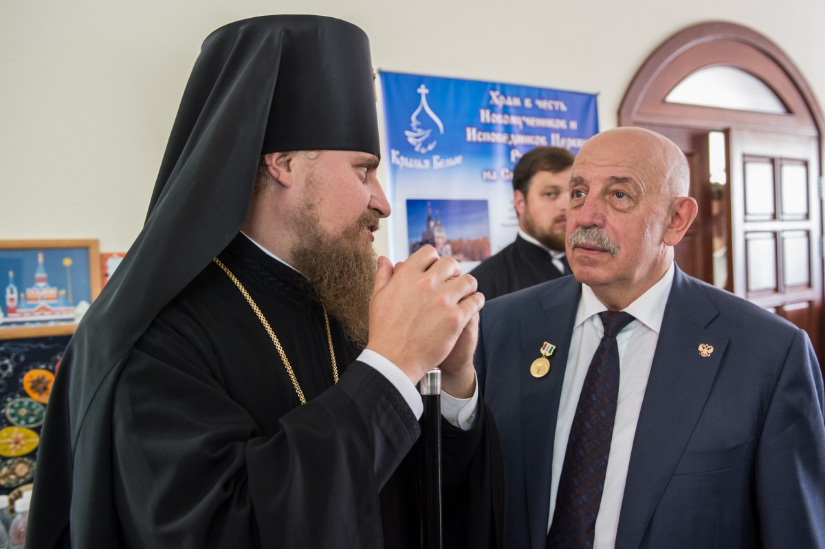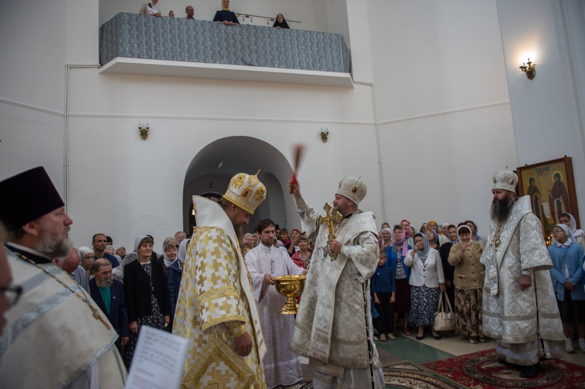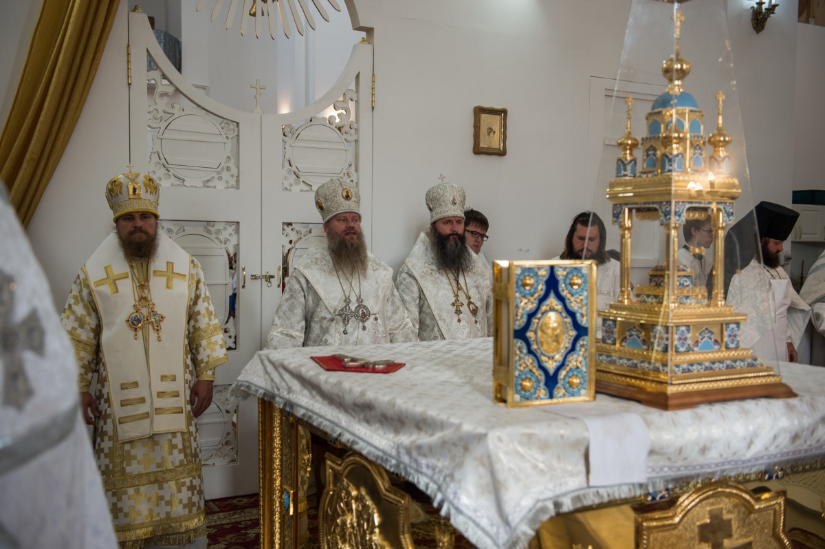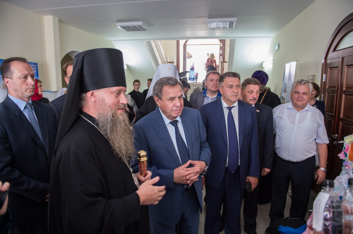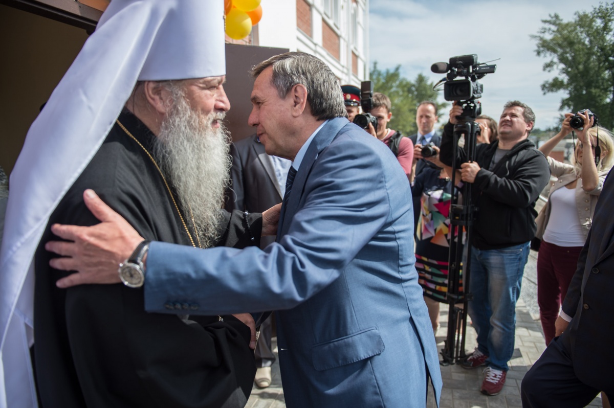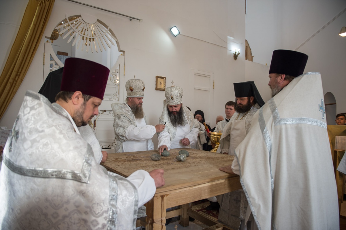 Состоялись церковные торжества по случаю 300-летия города Искитима11 августа 2017 года епископ Искитимский и Черепановский Лука в сослужении гостей-архипастырей совершил чин великого освящения главного придела кафедрального собора во имя святителя Николая города Искитима. В этот же день при участии митрополита Новосибирского и Бердского Тихона и губернатора Новосибирской области В.Ф. Городецкого состоялся День открытых дверей епархиального Духовно-просветительского центра. Преосвященнейшему Луке сослужили архиепископ Салехардский и Ново-Уренгойский Николай и епископ Каинский и Барабинский Феодосий, а также духовенство Искитимской епархии и гости в священном сане. По окончании чина освящения Божественную литургию в новоосвященном храме возглавил архиепископ Салехардский и Ново-Уренгойский Николай, который с 1997 года на протяжении 13 лет руководил строительством собора. По окончании богослужения на торжества прибыл Высокопреосвященнейший Тихон, митрополит Новосибирский и Бердский. Владыка совершил благодарственный молебен и окропил храм святой водой. «…Общая радость для всех, что сегодня освящен кафедральный собор во имя святителя Николая Мирликийских чудотворца города Искитима. Храм этот мы начинали строить еще в 80-е годы прошлого столетия, и шла стройка с большим трудом. Начинал благое дело отец Владимир Аухимик, ему помогал архиепископ Софроний. Оба уже давно упокоились. Архиепископ Николай, будучи еще священником, много лет положил на это строительство. Долго решали, как строить. По ходу строительства менялся проект купола. Просчитывали, как укрепить основание, поскольку храм стоит на вершине горы. Но в итоге он выстроен и освящен, поскольку не оскудевала ваша общая молитва на завершение строительства и не оскудевала рука добровольных помощников, как руководителей городских предприятий, так и отдельных прихожан, вносящих пожертвования на строительство храма...» – сказал митрополит Тихон, обращаясь к собравшимся. Также глава Новосибирской митрополии передал в дар храму икону Божией Матери «Умягчение злых сердец» с пожеланием, чтобы Богородица хранила город Искитим и всех горожан. Памятным епархиальным знаком «За усердные труды» Высокопреосвященнейший Тихон наградил прихожан кафедрального собора во имя святителя Николая: Елену Мякчилину, Валентину Атаманову и Николая Баранова – все они с самого начала трудятся в соборе. Официальную часть торжеств, приуроченных к юбилею престольного града Искитимской епархии, продолжил День открытых дверей епархиального Духовно-просветительского центра, который посетил губернатор Новосибирской области В.Ф. Городецкий. В актовом зале состоялся торжественный акт, в ходе которого, обращаясь со словами поздравления к собравшимся, губернатор наградил ктиторов Искитимской епархии юбилейной медалью «80 лет Новосибирской области». Открывая торжественный акт, митрополит Новосибирский и Бердский Тихон удостоил главу города Искитима Сергея Завражина и главу Искитимского района Олега Лагоду медалями «За служение Новосибирской епархии Русской Православной Церкви» III степени. Далее почетные гости познакомились с работой Духовно-просветительского центра: послушали выступления поэтов на встрече епархиального общества любителей русской словесности, вместе подвели ит