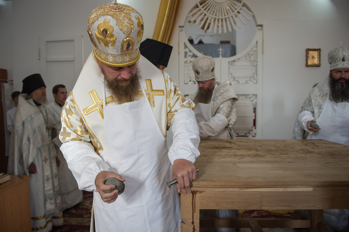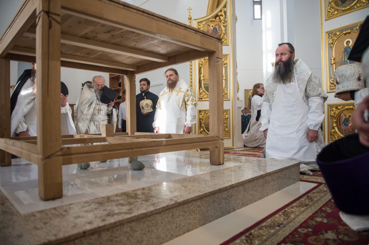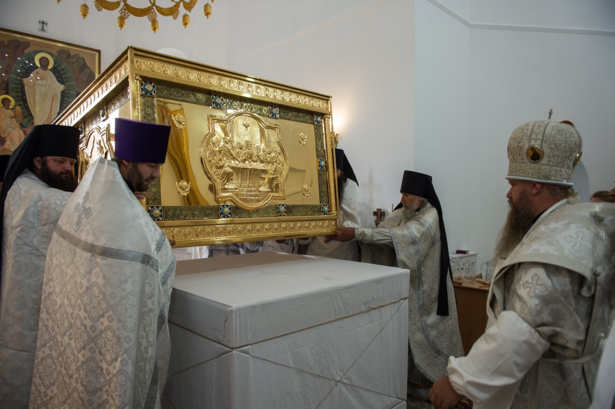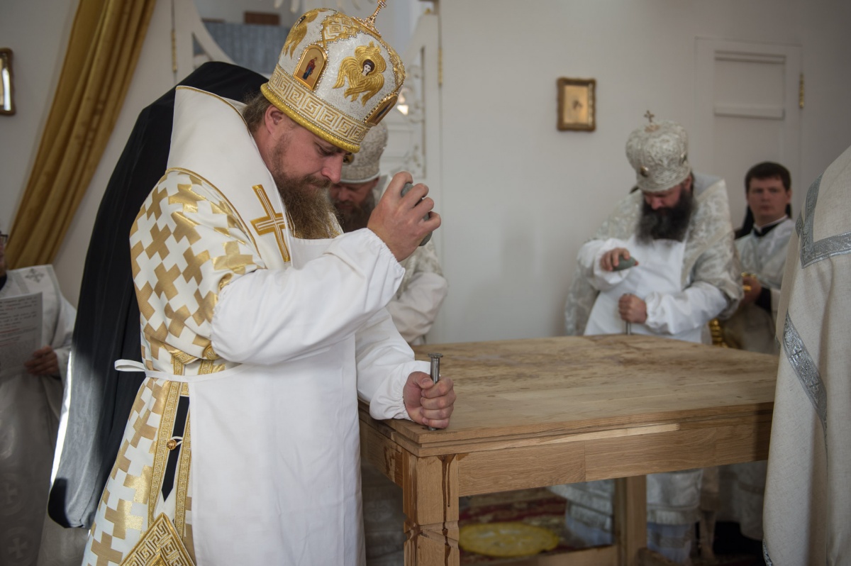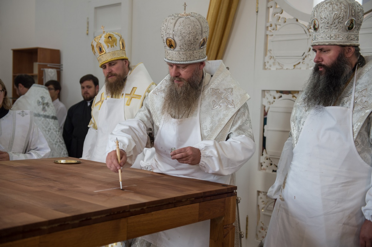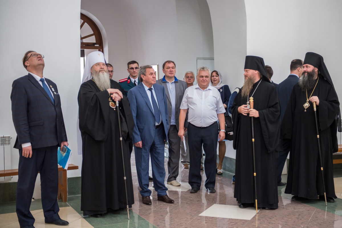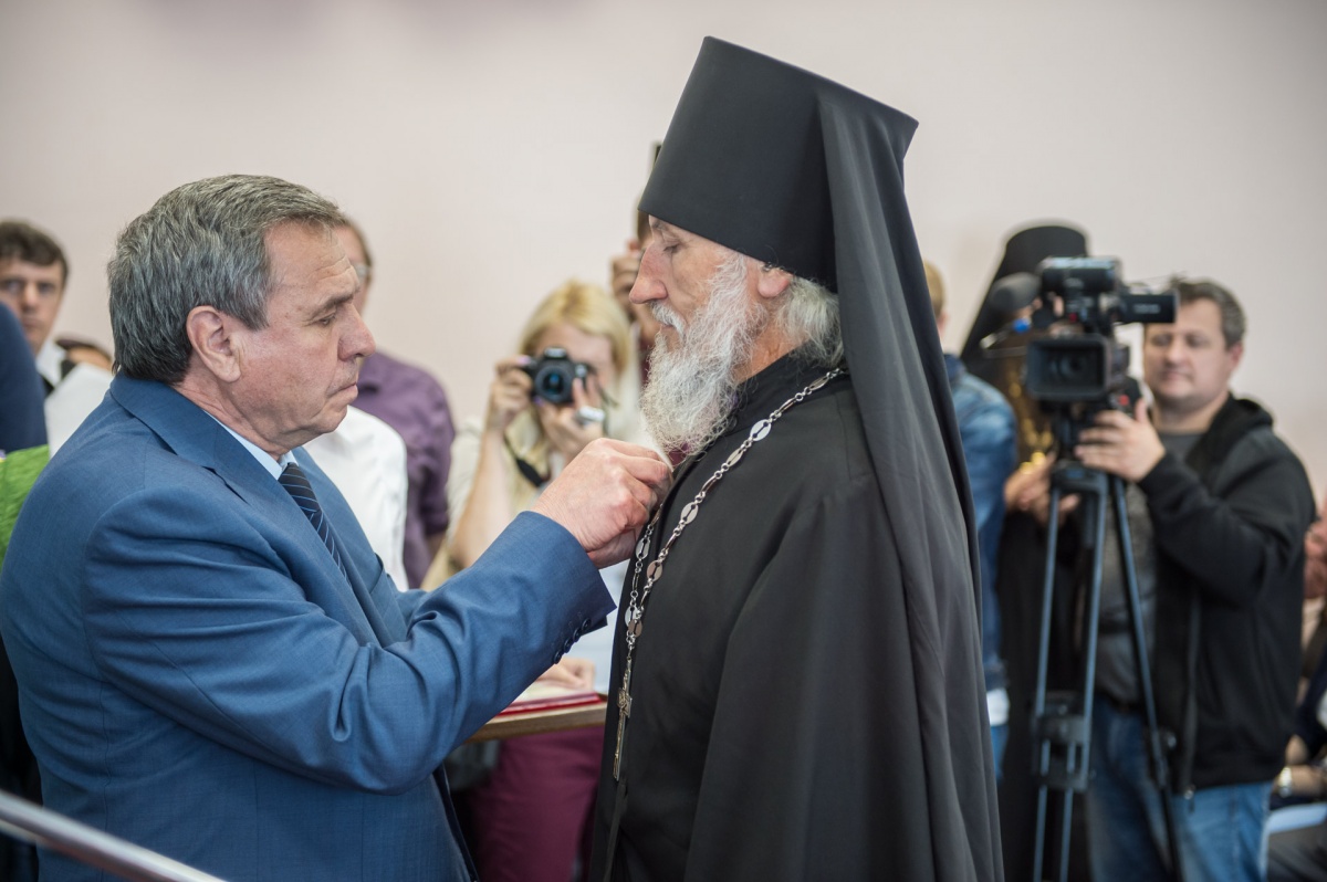 Состоялись церковные торжества по случаю 300-летия города Искитима11 августа 2017 года епископ Искитимский и Черепановский Лука в сослужении гостей-архипастырей совершил чин великого освящения главного придела кафедрального собора во имя святителя Николая города Искитима. В этот же день при участии митрополита Новосибирского и Бердского Тихона и губернатора Новосибирской области В.Ф. Городецкого состоялся День открытых дверей епархиального Духовно-просветительского центра. Преосвященнейшему Луке сослужили архиепископ Салехардский и Ново-Уренгойский Николай и епископ Каинский и Барабинский Феодосий, а также духовенство Искитимской епархии и гости в священном сане. По окончании чина освящения Божественную литургию в новоосвященном храме возглавил архиепископ Салехардский и Ново-Уренгойский Николай, который с 1997 года на протяжении 13 лет руководил строительством собора. По окончании богослужения на торжества прибыл Высокопреосвященнейший Тихон, митрополит Новосибирский и Бердский. Владыка совершил благодарственный молебен и окропил храм святой водой. «…Общая радость для всех, что сегодня освящен кафедральный собор во имя святителя Николая Мирликийских чудотворца города Искитима. Храм этот мы начинали строить еще в 80-е годы прошлого столетия, и шла стройка с большим трудом. Начинал благое дело отец Владимир Аухимик, ему помогал архиепископ Софроний. Оба уже давно упокоились. Архиепископ Николай, будучи еще священником, много лет положил на это строительство. Долго решали, как строить. По ходу строительства менялся проект купола. Просчитывали, как укрепить основание, поскольку храм стоит на вершине горы. Но в итоге он выстроен и освящен, поскольку не оскудевала ваша общая молитва на завершение строительства и не оскудевала рука добровольных помощников, как руководителей городских предприятий, так и отдельных прихожан, вносящих пожертвования на строительство храма...» – сказал митрополит Тихон, обращаясь к собравшимся. Также глава Новосибирской митрополии передал в дар храму икону Божией Матери «Умягчение злых сердец» с пожеланием, чтобы Богородица хранила город Искитим и всех горожан. Памятным епархиальным знаком «За усердные труды» Высокопреосвященнейший Тихон наградил прихожан кафедрального собора во имя святителя Николая: Елену Мякчилину, Валентину Атаманову и Николая Баранова – все они с самого начала трудятся в соборе. Официальную часть торжеств, приуроченных к юбилею престольного града Искитимской епархии, продолжил День открытых дверей епархиального Духовно-просветительского центра, который посетил губернатор Новосибирской области В.Ф. Городецкий. В актовом зале состоялся торжественный акт, в ходе которого, обращаясь со словами поздравления к собравшимся, губернатор наградил ктиторов Искитимской епархии юбилейной медалью «80 лет Новосибирской области». Открывая торжественный акт, митрополит Новосибирский и Бердский Тихон удостоил главу города Искитима Сергея Завражина и главу Искитимского района Олега Лагоду медалями «За служение Новосибирской епархии Русской Православной Церкви» III степени. Далее почетные гости познакомились с работой Духовно-просветительского центра: послушали выступления поэтов на встрече епархиального общества любителей русской словесности, вместе подвели ит