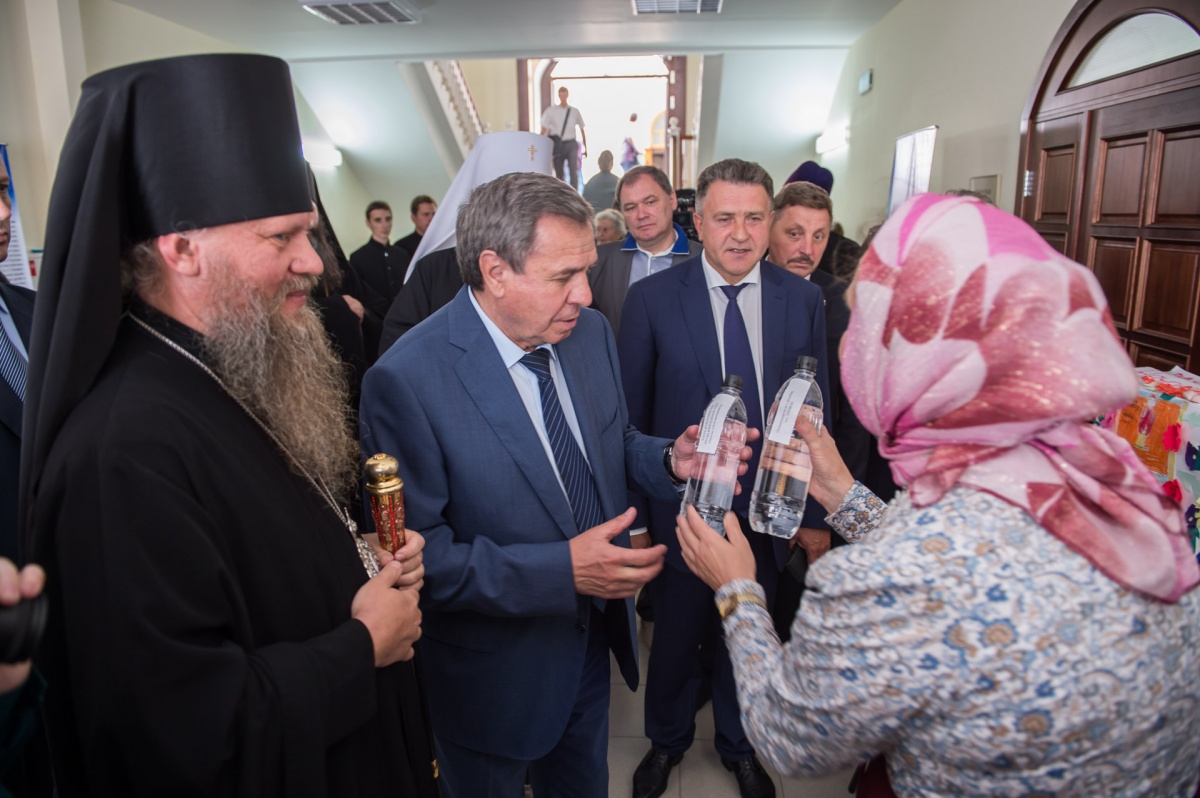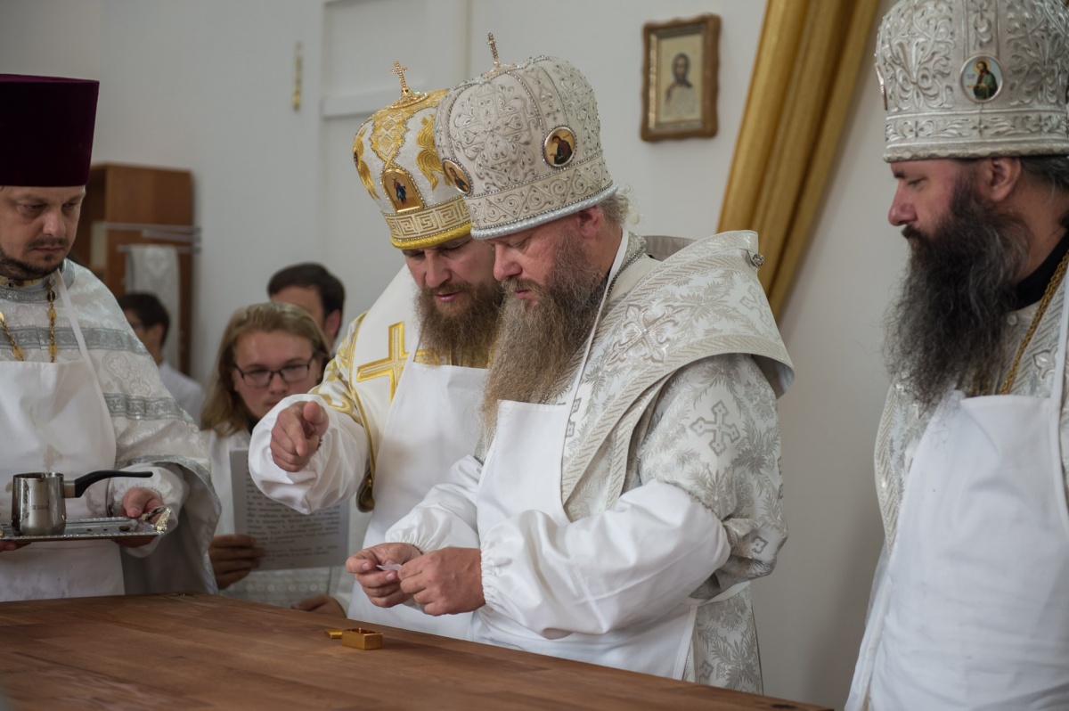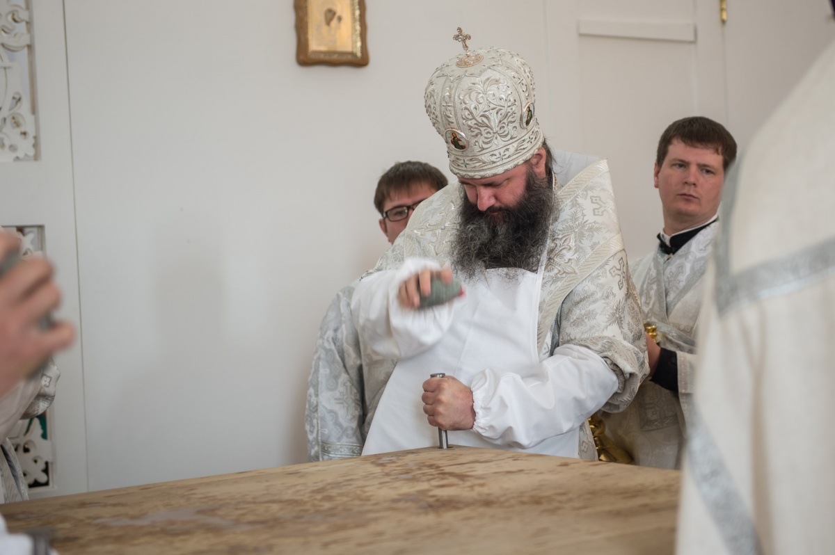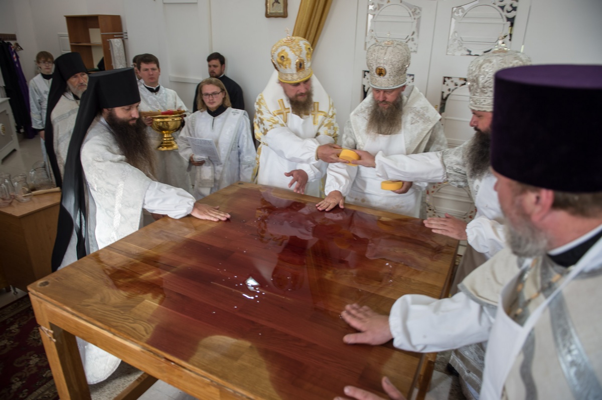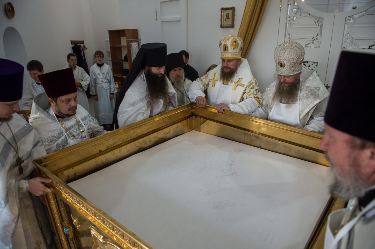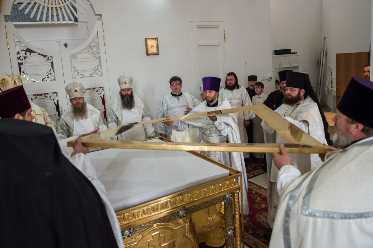 Состоялись церковные торжества по случаю 300-летия города Искитима11 августа 2017 года епископ Искитимский и Черепановский Лука в сослужении гостей-архипастырей совершил чин великого освящения главного придела кафедрального собора во имя святителя Николая города Искитима. В этот же день при участии митрополита Новосибирского и Бердского Тихона и губернатора Новосибирской области В.Ф. Городецкого состоялся День открытых дверей епархиального Духовно-просветительского центра. Преосвященнейшему Луке сослужили архиепископ Салехардский и Ново-Уренгойский Николай и епископ Каинский и Барабинский Феодосий, а также духовенство Искитимской епархии и гости в священном сане. По окончании чина освящения Божественную литургию в новоосвященном храме возглавил архиепископ Салехардский и Ново-Уренгойский Николай, который с 1997 года на протяжении 13 лет руководил строительством собора. По окончании богослужения на торжества прибыл Высокопреосвященнейший Тихон, митрополит Новосибирский и Бердский. Владыка совершил благодарственный молебен и окропил храм святой водой. «…Общая радость для всех, что сегодня освящен кафедральный собор во имя святителя Николая Мирликийских чудотворца города Искитима. Храм этот мы начинали строить еще в 80-е годы прошлого столетия, и шла стройка с большим трудом. Начинал благое дело отец Владимир Аухимик, ему помогал архиепископ Софроний. Оба уже давно упокоились. Архиепископ Николай, будучи еще священником, много лет положил на это строительство. Долго решали, как строить. По ходу строительства менялся проект купола. Просчитывали, как укрепить основание, поскольку храм стоит на вершине горы. Но в итоге он выстроен и освящен, поскольку не оскудевала ваша общая молитва на завершение строительства и не оскудевала рука добровольных помощников, как руководителей городских предприятий, так и отдельных прихожан, вносящих пожертвования на строительство храма...» – сказал митрополит Тихон, обращаясь к собравшимся. Также глава Новосибирской митрополии передал в дар храму икону Божией Матери «Умягчение злых сердец» с пожеланием, чтобы Богородица хранила город Искитим и всех горожан. Памятным епархиальным знаком «За усердные труды» Высокопреосвященнейший Тихон наградил прихожан кафедрального собора во имя святителя Николая: Елену Мякчилину, Валентину Атаманову и Николая Баранова – все они с самого начала трудятся в соборе. Официальную часть торжеств, приуроченных к юбилею престольного града Искитимской епархии, продолжил День открытых дверей епархиального Духовно-просветительского центра, который посетил губернатор Новосибирской области В.Ф. Городецкий. В актовом зале состоялся торжественный акт, в ходе которого, обращаясь со словами поздравления к собравшимся, губернатор наградил ктиторов Искитимской епархии юбилейной медалью «80 лет Новосибирской области». Открывая торжественный акт, митрополит Новосибирский и Бердский Тихон удостоил главу города Искитима Сергея Завражина и главу Искитимского района Олега Лагоду медалями «За служение Новосибирской епархии Русской Православной Церкви» III степени. Далее почетные гости познакомились с работой Духовно-просветительского центра: послушали выступления поэтов на встрече епархиального общества любителей русской словесности, вместе подвели ит