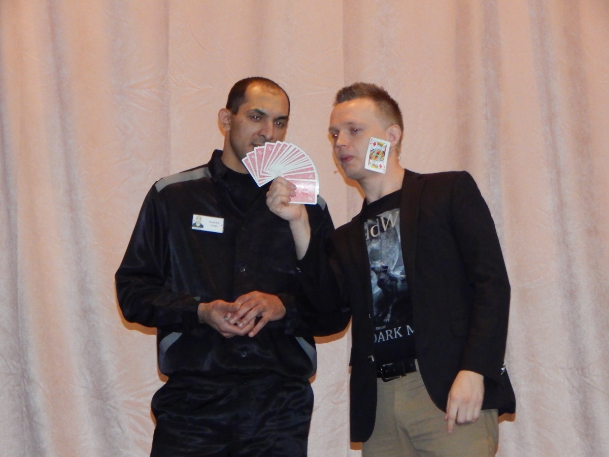 В исправительной колонии №18 прошел концерт «Мир без чудес, черно-белый»В рамках благотворительной акции «Давайте улыбнемся», на сцене клуба исправительной колонии №18 состоялась необычная шоу-программа «Мир без чудес, черно -белый» В этот раз перед осужденными выступили: Новосибирский фокусник- иллюзионист Сергей Глухов и «Двойник Мэрилин Монро и Натали» Анастасия Каплина (актриса театра пародий) На наших мероприятиях мы всегда говорим о культуре и силе слова, русской литературе и книгах сибирских авторов. В это раз хотелось поговорить о чудесах, удивить наших зрителей и показать, что-нибудь необычное. Отличный способ привлечь внимание в атмосфере хорошего настроения, во время показа фокусов. Современные фокусы это - сочетание удивления, юмора и тонкой подачи, всё это ждёт зрителя при соприкосновении с миром иллюзиониста, после которого у каждого останется много эмоций, и чувств восторга. Любовь к фокусам есть у каждого человека с детства, потому что фокусы пробуждают интерес к познанию трюка, при этом для зрителя он всё равно остаётся загадкой. Осужденные с большим интересом приняли участие в концертных номерах фокусника-иллюзиониста Сергея Глухова. Его выступления это -комплекс взрывных фокусов, ловкости рук, тонкого юмора и отличной подачи. В концерте приняла участие и оставила неповторимые, яркие впечатления у всех зрителей - двойник певицы Натали и Мэрилин Монро - неповторимой ретро-звезды ХХ века –Анастасия Каплина. Популярные песни певицы Натали знают многие, и поэтому когда прозвучали хиты: "О, боже, какой мужчина" и "Ветер с моря дул", то многие улыбались и подпевали. А песни "Николай" и "А ты такой красивый с бородой" были исполнены дуэтом с одним из осужденных, который всегда участвует в музыкальных программах, проводимых в клубе этого учреждения. Совместно с воспитательным отделом исправительной колонии № 18, были заранее подготовлены списки тех осужденных, у которых в день концерта, был день рождения. Для них был подготовлен необычный сюрприз. Двойник певицы Мэрилин Монро, актриса театра пародий Анастасия Каплина поздравила именинников и исполнила для них песню «Happy Birthday to You». Именинники были приглашены на сцену для фотосессии с артистами и получения комплектов книг сибирских авторов. член союза журналистов РФ Наталия Пендюрина-Капина