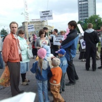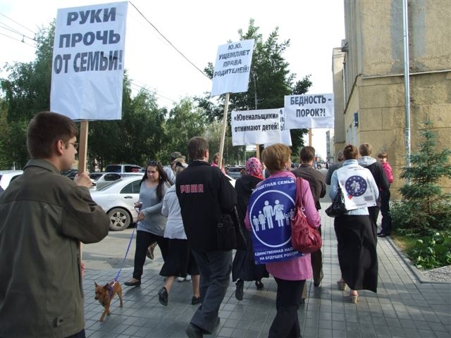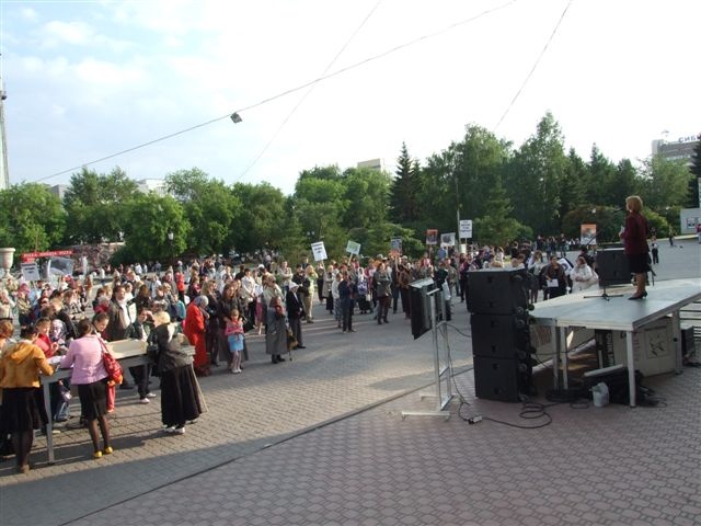 На этот раз по благословению архиепископа Новосибирского и Бердского Тихона, по предложению руководителя епархиального Молодежного отдела иерея Андрея Ромашко в пяти храмах Новосибирска – Вознесенском кафедральном соборе, Александро-Невском соборе, где служит настоятелем известный миссионер, яркий публицист, один из постоянных авторов «Русской народной линии» протоиерей Александр Новопашин, храме в честь Покрова Пресвятой Богородицы (настоятель – ректор Новосибирского Свято-Макарьевского Православного Богословского института протоиерей Александр Матрук), Успенском храме на Затулинском жилмассиве (настоятель священник Иаков Конкин), часовне во имя Святителя Николая Чудотворца – были совершены молебны Спасителю нашему Иисусу Христу. Затем прихожане от трех храмов (Вознесенского, Александро-Невского и Покровского) с плакатами прошли по улицам города к Первомайскому скверу – своеобразному «Гайд-парку» столицы Сибири. Так как шествия с плакатами против ЮЮ – дело еще непривычное для Новосибирска, городские власти предприняли повышенные меры безопасности демонстрантов. Во-первых, участников похода, по договоренности с мэрией, было всего по 15 человек от храма, во-вторых, идти они должны были компактно (правда, на практике это не всегда получалось), в-третьих, во главе и по бокам колонны антиювеналов находились милиционеры в форме, а по мостовой их сопровождали машины ГИБДД, что делало шествие похожим на марш заключенных. Возможно, из-за этого некоторые прохожие отшатывались, когда им предлагали листовки с таким текстом: «Мы против ювенальной юстиции! Мы защищаем возможность ребенка воспитываться родными, кровными родителями!.. Если ты против ЮЮ – присоединяйся к нам!». Впрочем, большинство встречных, наоборот, с интересом присматривались к необычному действу. В колонне демонстрантов, шедших от Вознесенского собора, вместе со своей мамой раздавала листовки шустрая девчушка на роликовых коньках. Она быстро сновала среди прохожих, предлагая им красочные мини-плакаты, на оборотной стороне которых были перечислены сайты, содержащие правдивую информацию о ювенальной юстиции. К слову, детей и на самом митинге было немало, так как многие православные прихожане пришли на акцию протеста всей семьей. В этот раз – впервые за все время проведения «Родительских стояний» и митингов в Новосибирске – погода благоприятствовала протестантам. Возможно, поэтому народу было явно больше, чем обычно. Люди подходили, подписывали коллективные письма-обращения от новосибирцев против создания в России системы ювенальной юстиции, условно названные «пять адресов»: Президенту России, Председателю Правительства РФ, Государственной думе РФ, Совету Федерации РФ, Общественной палате РФ. Всего было поставлено около 1 400 подписей. Многие оставались послушать выступления председателя Новосибирского отделения ООО «Всероссийское родительское собрание» Ирины Вишневской, сопредседателя Новосибирского отделения Всероссийского движения «В защиту Детства» Натальи Щетиловой. От лица молодежи перед собравшимися выступил руководитель православного молодежного подотдела епархиального Миссионерского отдела Артем Сильвестров. Атмосфера митинга была неофициальной, не агрессивной, по-настоящему человечной: просто собрались родители, обеспоко