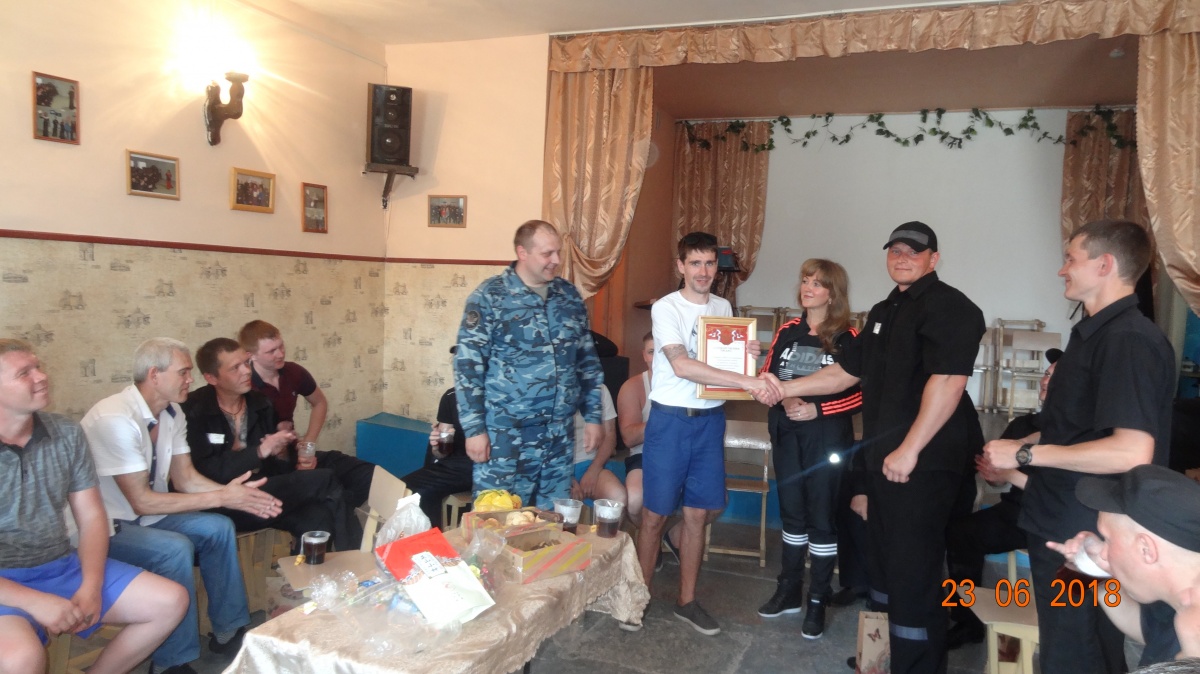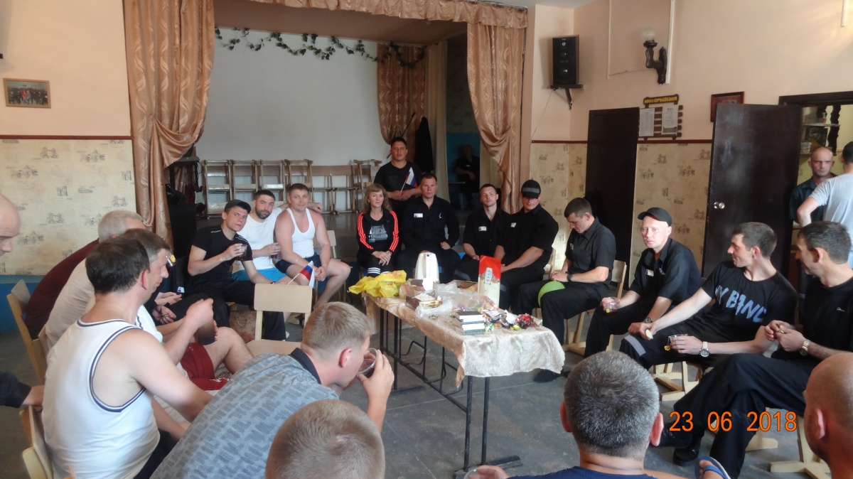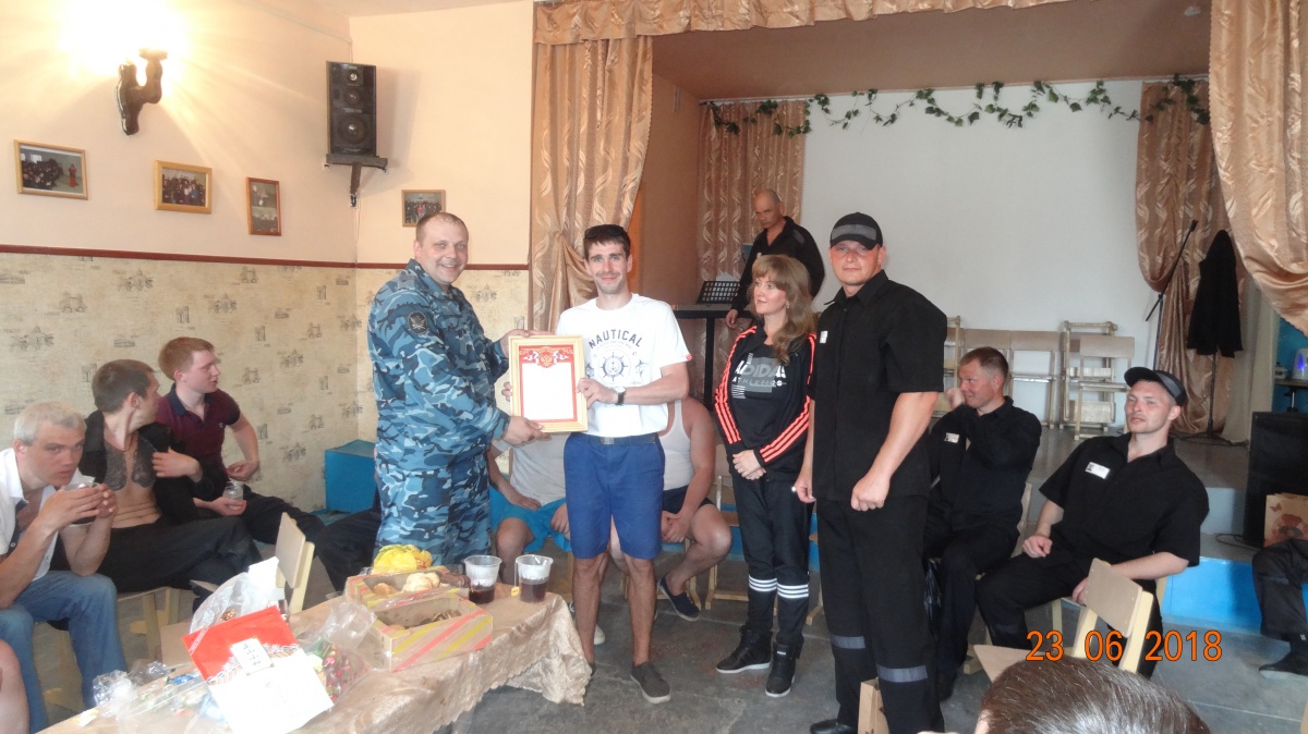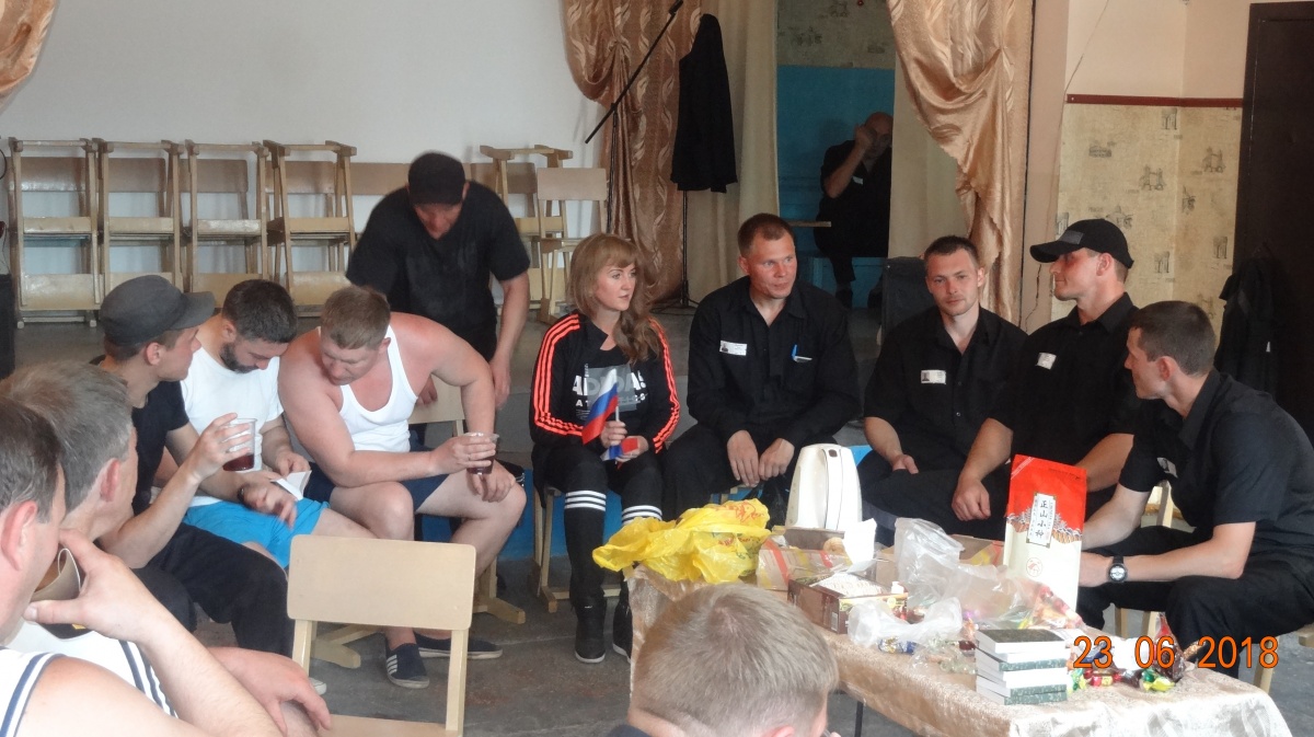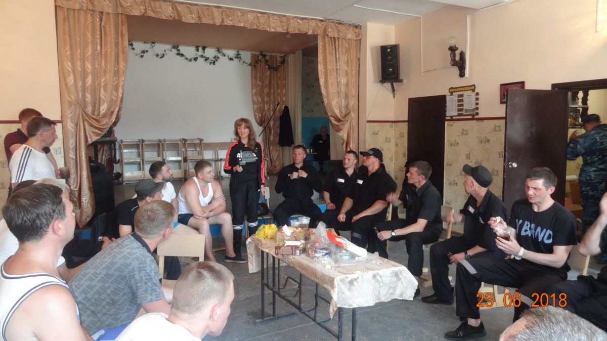 В исправительной колонии №21 (п.Горный) состоялся товарищеский матч в поддержку Российских спортсменов чемпионата мира по футболу « FIFA 2018»В рамках благотворительной акции «Давайте улыбнемся» в исправительной колонии №21 (п.Горный)состоялся товарищеский матч по футболу команды осужденных с командой Новосибирского спортивного клуба «Омега». Благотворительная акция проходит в новосибирских колониях одиннадцатый год и включает в себя проведение не только культурно-просветительских, но и спортивных мероприятий. Команда спортсменов «Омеги» третий раз принимает в ней участие. В 2017 и в 2018 году в этом исправительном учреждении с успехом прошли товарищеские матчи по хоккею. В России проводится чемпионат мира по футболу « FIFA 2018» и было решено провести футбольный матч в поддержку Российски спортсменов. Общая атмосфера на протяжении всей игры была позитивной и динамичной. Футбольный поединок начался, и команда осужденных открыла счет, забив первый гол противнику, но команда «Омега» была настроена решительно и стала активно бороться. Решаемым стал третий период игры, между командами развернулась настоящая спортивная борьба за призовое место. Болельщики из числа осужденных поддерживали игроков своей команды. Футбольный матч завершился со счетом 6:4 в пользу команды осужденных. В завершении игры, осужденные делились эмоциями друг с другом, обсуждали особо запомнившиеся моменты и принимали поздравления от болельщиков. После футбольного поединка, в клубе учреждения состоялось награждение победителей футбольного матча. Начальник воспитательного отдела исправительного учреждения, поблагодарил спортсменов команды «Омега» и вручил им благодарственное письмо. Он поздравил всех участников спортивного мероприятия, и пообещал поощрить активных игроков, проявивших себя с положительной стороны, ведь спортивные мероприятия благоприятно влияют на осужденных, стремящихся, к условно-досрочному освобождению и прививают интерес к здоровому образу жизни. Ещё одним событием, посвящённым чемпионату Мира по футболу, стала викторина на тему «Звезды футбола». Организаторами мероприятия были подготовленными интересные вопросы о знаменитых футболистах, тренерах, а также об известных личностях, имеющих отношение к этому виду спорта. Все участники встречи активно отвечали на вопросы викторины, делились своими знаниями в области футбола, и получали памятные призы. «Подобные мероприятия способствуют не только организации свободного времени осужденных, но и повышают их общеобразовательный уровень. Позволяют осужденным почувствовать свою причастность к важным событиям, происходящим в стране и в мире»- прокомментировал заместитель начальника учреждения по воспитательной работе Герман Тарасов. член союза журналистов РФ Наталия Пендюрина-Капина