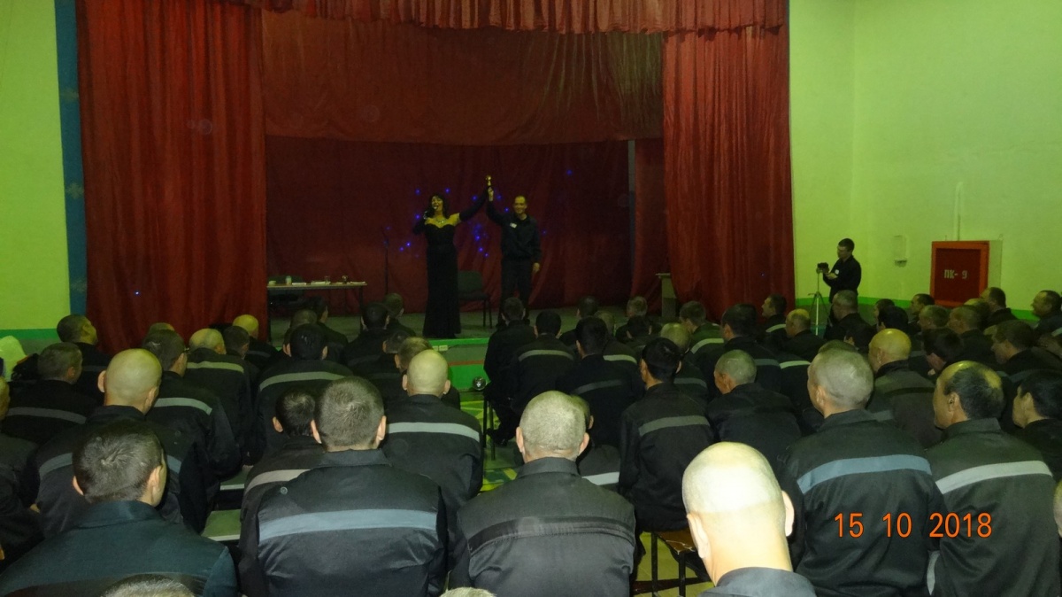 В исправительной колонии №8 выступила солистка Новосибирского театра музыкальной комедии15 октября 2018 года, солистка Новосибирского театра музыкальной комедии, заслуженная артистка России Вероника Гришуленко выступила в исправительной колонии строгого режима №8. Седьмой раз она принимает участие в благотворительной акции «Давайте улыбнемся!», выступает перед осужденными с сольной программой. Песенный репертуар ее всегда яркий и разноплановый. В концертной программе звучат шлягеры из мировых оперетт, популярные песни о любви и романсы из кинофильмов. Во всех исправительных учреждениях эти культурно-просветительские мероприятия прошли с большим успехом. Осужденные принимают активное участие в концерте, подпевают известные песни, даже танцуют и играют на музыкальных инструментах. Вероника Гришуленко родилась в Петропавловске. Говорит, что петь и говорить начала одновременно. В три года на «бис» запросто могла исполнить «Катюшу». Музыкальную школу по классу фортепьяно закончила на два года раньше общеобразовательной восьмилетки. А так как в тринадцать лет в музыкальное училище еще не принимали, девочка увлеклась конькобежным спортом. Тренеры успехами были довольны, даже на сборы в Алма-Ату она ездила в числе первых. Но желание петь все же оказалось сильнее. Вероника поступила в музыкальное училище на дирижерско-хоровое отделение, а затем стала совмещать учебу сразу на двух отделениях : дирижерско-хоровом и вокальном. Хороший природный голос у девочки обнаружила педагог по вокалу Тамара Коптяева, она же посоветовала ей попробовать свои силы на вступительных экзаменах в Новосибирской консерватории. А вот мэтр советской эстрады Лев Лещенко голоса у Вероники не обнаружил. Он приехал в Петропавловск с концертами, объявил со сцены, что ищет молодых талантливых певцов, и пригласил всех желающих на прослушивание. Вероника набралась смелости и спела «звезде», как умела. -«Вам, девочка, никогда не стать актрисой, - сказал Лев Лещенко. - Тем более певицей. Внешность не та, а уж дикция и подавно никуда не годится...» Вероника долго рыдала, затем успокоилась и решила, во что бы то ни стало посвятить свою жизнь театру. В 1998 году, она окончила Новосибирскую государственную консерваторию по классу «Сольное пение» под руководством профессора Риммы Жуковой. И уже двадцать лет служит искусству в Новосибирском театре музыкальной комедии. Сценическое обаяние, феерический темперамент, великолепный голос создали ей имидж ярчайшей представительницы жанра оперетты и мюзикла, принесли ей признание. Вероника дважды становилась Дипломантом Национальной театральной Премии «Золотая Маска». В 2003 году в номинации «Лучшая женская роль в жанре оперетта/мюзикл» за роль Анжель (оперетта «Граф Люксембург» Ф. Легара), в 2005 году за исполнение роли Шугар Кейн (мюзикл «В джазе только девушки»). Спектакль «В джазе только девушки» с ее участием в главной роли стал лауреатом премии «Золотая Маска». Вероника Гришуленко - неоднократный номинант и лауреат премии «Парадиз». Концерт проходил в клубе исправительного учреждения два часа, на нем присутствовало около трехсот осужденных. По сложившейся традиции этих мероприятий, на концерте чествуют именинников из числа осужденных. В этот раз их пригласили на сцену, и они участвовали в постановочном, заранее з