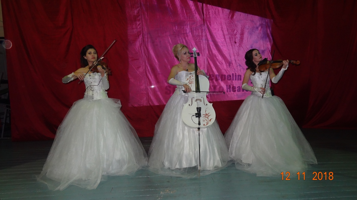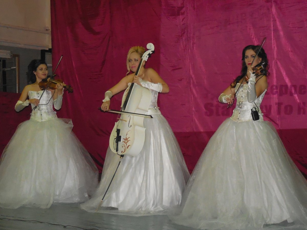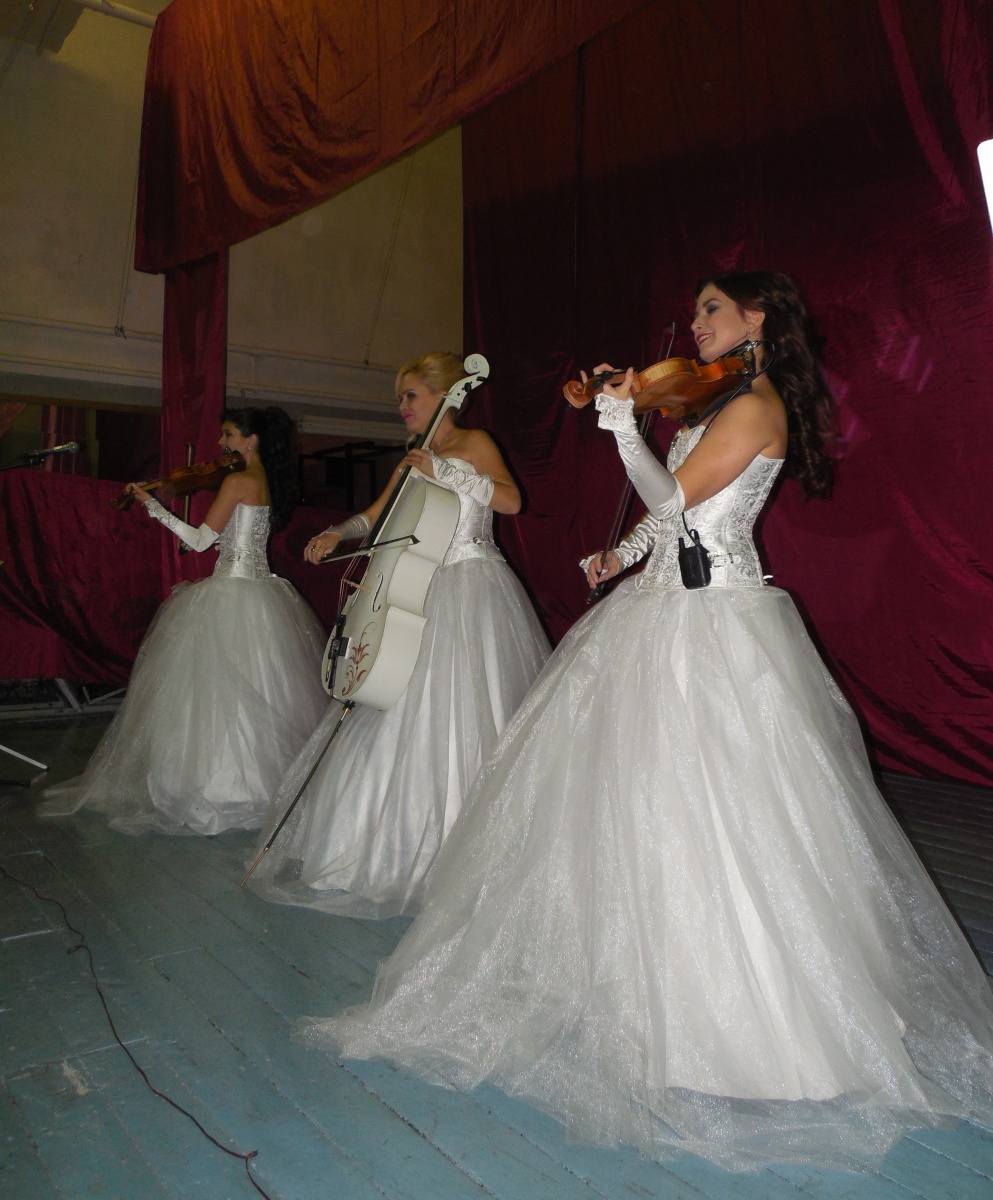 Путешествие в мир музыки, оказалось головокружительным. От классических композиций через тяжёлый рок до советских песен. Музыканты- Наталья, Илария и Елизавета, на сцене были, как принцессы в белоснежных платьях и это было необычайно нежное и красивое зрелище. На протяжении всего концерта звучала музыка великих композиторов всех поколений, а на большом экране сменялись заставки и видео-зарисовки.
