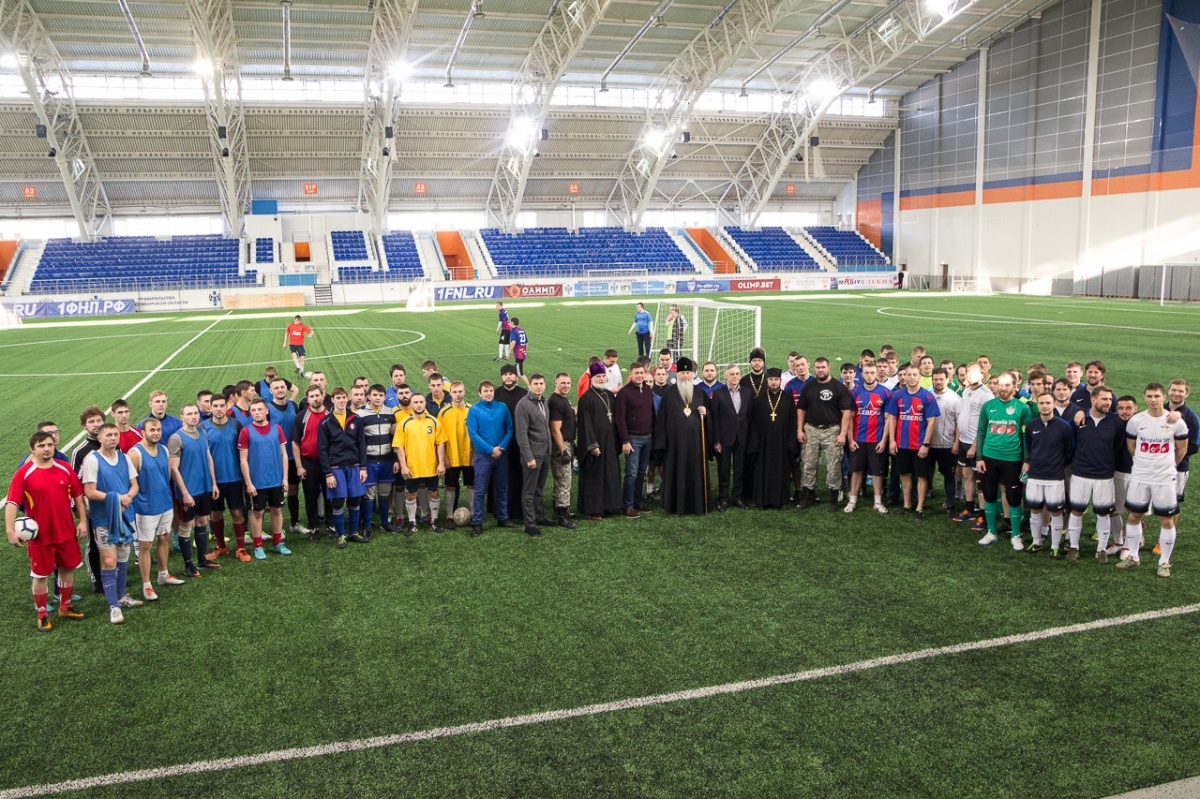 ![]() В Новосибирске прошел IV межъепархиальный футбольный турнир на кубок имени святого князя Александра НевскогоВ состязаниях участвовали десять команд из разных городов Сибири и Санкт-Петербурга. 25 ноября в Новосибирск съехались любительские футбольные команды, чтобы сразиться на IV межъепархиальном турнире на кубок имени святого благоверного князя Александра Невского. Новосибирск представляли две сборные: Епархии и Православной Духовной семинарии. Еще семь команд прибыли из разных городов Сибири: Омска, Томска, Кемерова, Искитима и Куйбышева. Дальше всех добирались на турнир петербуржцы. Кемеровчанам пришлось по дороге пережить целое приключение: обильный снегопад и сильный ветер занесли дороги, машина застряла и футболисты пробирались на турнир долгие восемь часов. Состязания проходили на крытом поле стадиона «Заря». Перед началом соревнований спортсменов приветствовали Митрополит Тихон, начальник управления общественных связей мэрии города Новосибирска Игорь Викторович Щукин, главный федеральный инспектор по Новосибирской области Юрий Владимирович Семенов и другие официальные лица, а также известные спортсмены. Митрополит Тихон рассказал о сотрудничестве Новосибирской Епархии со спортивной федерацией, он подчеркнул важность духовно-нравственного воспитания молодежи и формирования у молодых людей правильного мировоззрения, так как в современном обществе размыты и трансформированы жизненные основополагающие понятия. – Многие молодые люди просто не знают, как правильно понять и усвоить такие слова, как свобода, ответственность, добро и зло, правда и ложь. И Церкви приходится напоминать истинные критерии нравственных слов, которые нужно понимать с точки зрения Евангелия, что мы должны знать нравственный закон, который как голос совести живет в душе каждого человека, и он согласован с нравственным законом, указанным в Священном Писании. Правящий архиерей отметил, что этот закон человечество хранило тысячелетия, и он до сих пор входит в основные законы государств: не убивай, не укради, не пожелай чужого, почитай своих родителей. – Все это мы должны усвоить – продолжил Владыка Тихон. – И тогда человек начинает выбирать в своей жизни то, что его не повреждает, что служит созиданию его личности, и отвергает то, что ведет его к деградации. Поэтому, проводя соревнования, мы переживаем за наши команды – каждый за свою, переживаем за то, чтобы игра была честной и приносила радость, чтобы спорт развивал человека: и физически, и духовно, потому что спорт несет добро в наше общество. И пусть люди, которые соприкасаются с вами, видят в вас – молодежи, что вам ничто не чуждо, что, оказывается, можно заниматься спортом и это нисколько не повреждает душе человеческой и не мешает идти по пути спасения. Особенность подобных соревнований в составе команд – почти в каждой играет священнослужитель, а игроки – прихожане православных храмов. Иерей Тимофей Ивашкин, он же капитан Санкт-Петербургской сборной «Митрополия», рассказал, что занятия спортом в служении очень помогают. Но не только для бодрости тела гоняют футбольный мяч игроки. Футбол – это миссионерский инструмент, язык, на котором разговаривает молодежь. Общаться гораздо проще, если начать разговор с игры в футбол. – С помощью мячика можно войти в школу, с помощью мя