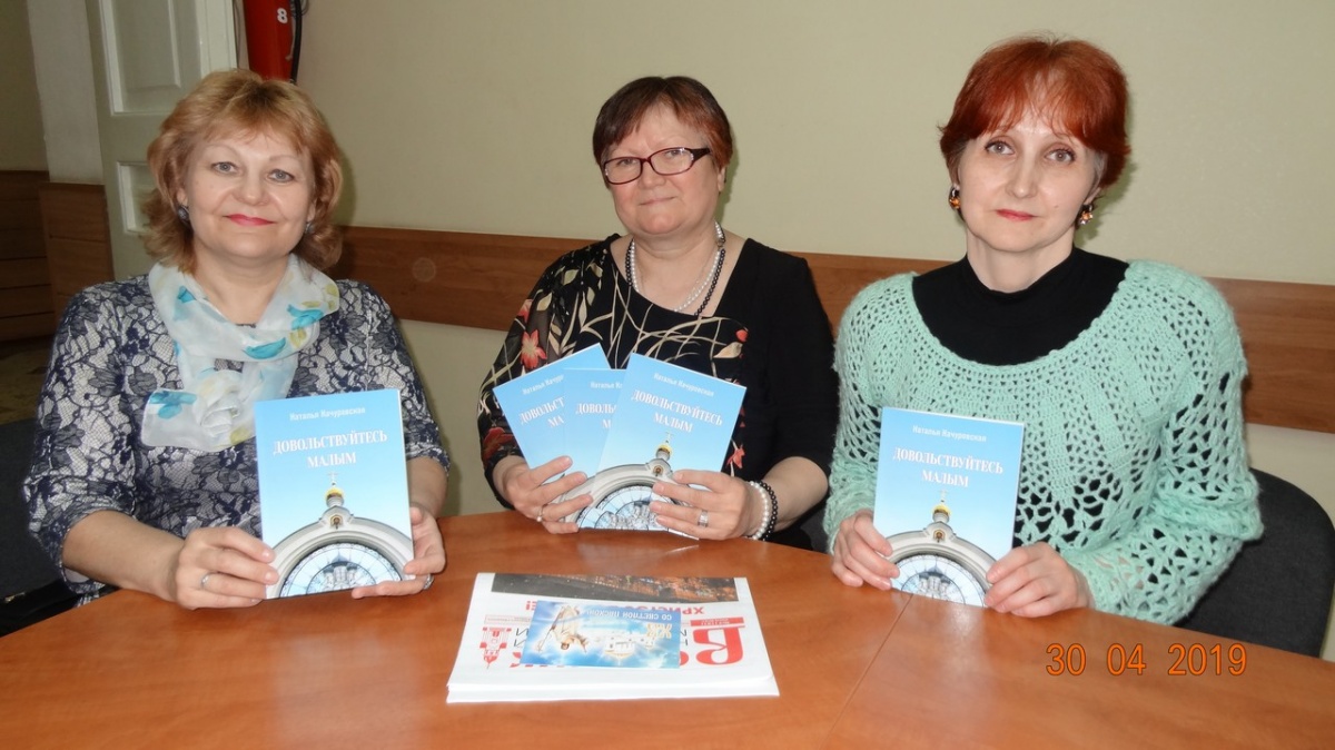 В клубе православных авторов новая книга «Довольствуйтесь малым»30 апреля 2019 года, в клубе православных авторов «В начале было Слово» состоялась презентация новой книги Натальи Качуровской «Довольствуйтесь малым». «Наталья Алексеевна более 20 лет трудится кадровиком Знаменского храма, избрана председателем ревизионной комиссии в храме во имя святого мученика Вонифатия. Люди ей доверяют, к каждому она старается относиться с любовью. С мужем, Георгием Владимировичем, подполковником МЧС, венчана, считает это таинство, одним из залогов семейного благополучия. Вместе вырастили и выучили детей: дочку Лилию и сына Станислава. «Терпение и смирение всему основа», – говорит Наталья Алексеевна. Это ценится в семейной жизни, а в трудные моменты, всегда выручало творчество. Стихи начала писать с 19 лет. К Богу Наталья Алексеевна пришла уже в зрелом возрасте, когда по месту службы мужа проживала и трудилась в Эстонии. По молодости увлекалась учением Рериха, хиромантией, гороскопами, сейчас называет этот период черной ступенькой в своей жизни. Когда в их городе начала строиться церковь, приходила поначалу из любопытства, затем по благословению настоятеля дежурила с прихожанками по ночам в храме (не было сигнализации). Появилась тяга, желание чаще бывать в храме, а в 1995 году случилось с ней такое событие. Поехали они с подругой в Питер, на оперу, и в Гостином Дворе у нее украли паспорт, а в Эстонии после перестройки уже такой паспорт не выдавали. Потеря была серьезной. Вот и молилась она во время своего очередного дежурства в храме – святителю Николаю Чудотворцу, чтобы вернули пропажу. И Господь по молитвам святого совершил чудо, паспорт из России был передан в МИД Эстонии. В том же году переехали в Новосибирск, и по Божьему промыслу в первый день нашла работу в храме, через два месяца семья получила жилье в маневренном фонде, сына приняли в православную гимназию. Благодаря Божией помощи все устроилось. И сейчас, продолжая трудиться в Храме, считает, что «Православие это наука – быть счастливым». Или как говорят святые подвижники: «Кто идет за Христом следом, тому земля становится Небом». «Молись и твои глаза будут видеть в людях лучшее. Молись и твое сердце будет прощать худшее. Молись и твой ум будет забывать плохое, а душа никогда не потеряет веру». Так писала о Н.А.Качуровской, заслуженный работник культуры РФ- Татьяна Викторовна Пендюрина. В работе заседания клуба православных авторов « В начале было Слово», принял участие иерей, священник Успенского прихода Андрей Штукатуров. Батюшка поздравил всех с Великим праздником Святой Пасхи и подробно рассказал о нем. Раздал всем новый выпуск епархиального издания «Вестник Новосибирской Митрополии» и ответил на все вопросы, которых накапливается всегда очень много. Затем, в Часовне во имя Святого Великомученика и Победоносца Георгия Дома офицеров Новосибирского гарнизона, отец Андрей отслужил праздничный молебен. Спасибо нашим батюшкам, что они всегда с нами. ВОСКРЕСЕНИЕ ХРИСТОВО На Воскресение Христа Душа моя, ликуй и пой, Наследница небес: Христос воскрес, Спаситель твой Воистину воскрес! Так! Ад пред Сильным изнемог: Из гробовых вериг, Из ночи смерти Сына Бог И с Ним тебя воздвиг. Из света вечного Господь Сошел в жилище тьмы, Облекся в персть, оделся в плоть - Да не погибнем мы! Неизреченная лю