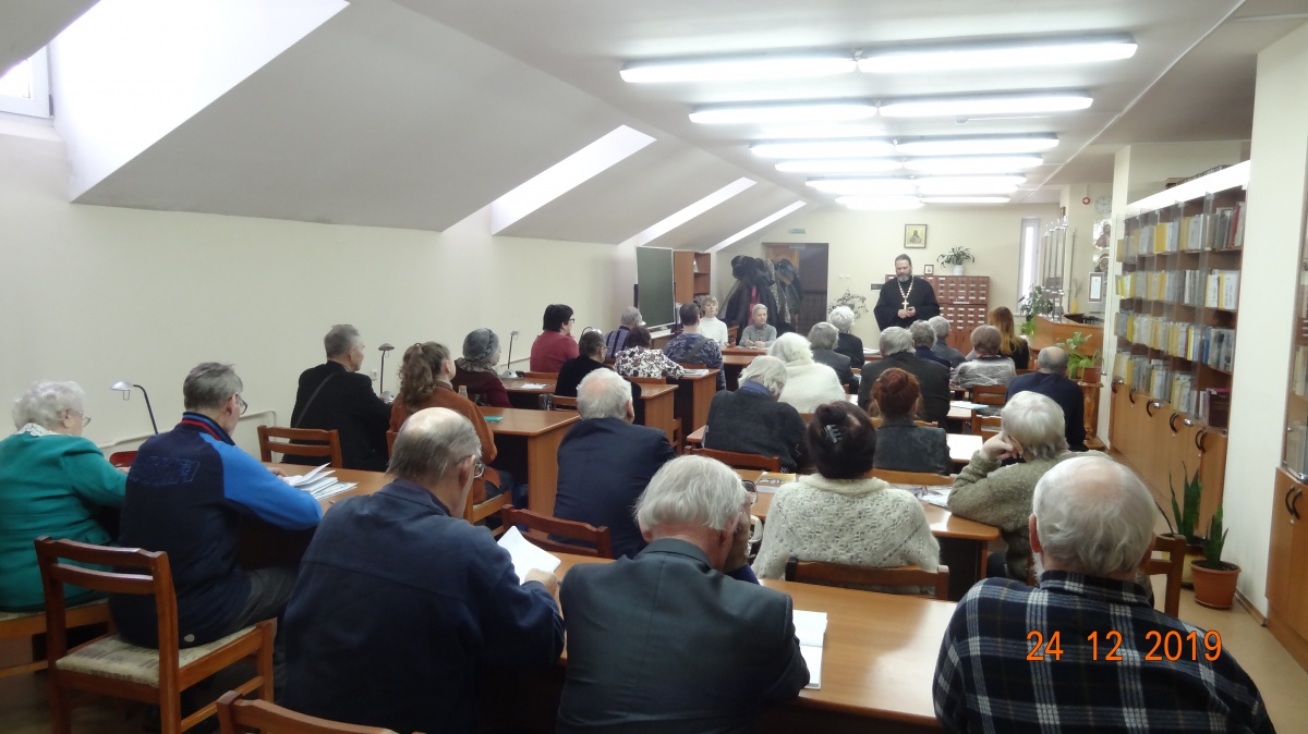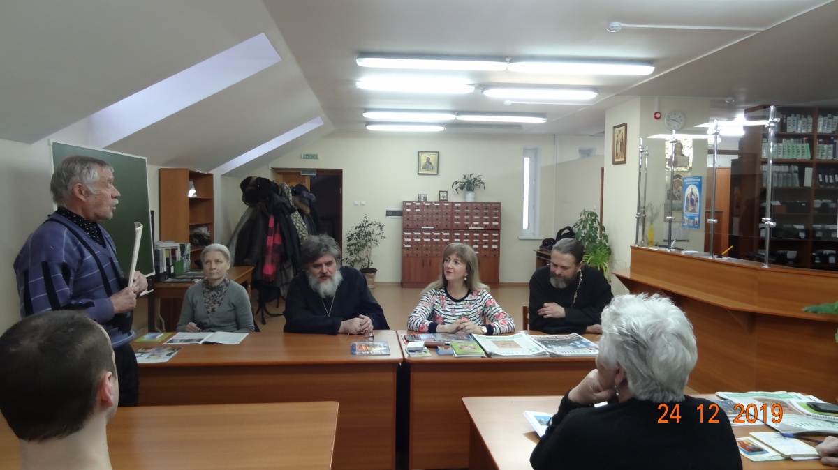 В клубе православных авторов прошло итоговое годовое собрание24 декабря 2019 года, в клубе православных авторов «В начале было Слово» прошло собрание, на котором были подведены итоги деятельности уходящего года и утвержден план работы на 2020 год. Особое внимание было уделено таким вопросам, как подготовка к проведению Дня православной книги, участие в Церковно-государственных праздниках и обозначен вектор дальнейшего взаимодействия с Новосибирскими библиотеками. В этот раз, встреча новосибирских книголюбов состоялась в библиотеке Вознесенского Кафедрального собора. Вознесенский Кафедральный собор, является главным храмом Новосибирской епархии, где располагается кафедра архиерея, управляющего Новосибирской епархией. Наcтоятелем Вознесенского кафедрального собора является епархиальный архиерей - высокопреосвященнейший Никодим, митрополит Новосибирский и Бердский. Библиотека Собора располагает уникальным книжным фондом. Духовник клуба, Председатель издательского совета Новосибирской Митрополии, настоятель Храма в честь Успения Пресвятой Богородицы протоиерей Иаков Конкин, подробно рассказал о приближающемся Великом празднике Рождества Христова, поздравил собравшихся, вручил Вестник Новосибирской Митрополии и ответил на все вопросы. С приветственным словом к авторам обратился член Ученого Совета Новосибирской православной духовной семинарии, Духовник Новосибирской епархии, секретарь комиссии по канонизации Новосибирской митрополии, клирик Вознесенского кафедрального собора протоиерей Виталий Бочкарев. Он положительно оценил работу клуба православных авторов, поздравил с приближающимися праздниками и обратился с пожеланиями продолжать работу, обращая внимание на то, чтобы каждое мероприятие имело конечной целью воцерковление молодежи. Во второй части собрания работал «Открытый микрофон», где звучали стихи новые и давно всеми любимые. Николай Гумилев **** В оный день, когда над миром новым Бог склонял лицо Свое, тогда Солнце останавливали Словом, Словом разрушали города. И орел не взмахивал крылами, Звезды жались в ужасе к луне, Если, точно розовое пламя, Слово проплывало в вышине. А для низкой жизни были числа, Как домашний подъяремный скот, Потому что все оттенки смысла Умное число передает. Патриарх седой, себе под руку Покоривший и добро, и зло, Не решаясь обратиться к звуку, Тростью на песке чертил число. Но забыли мы, что осиянно Только Слово средь земных тревог, И в Евангельи от Иоанна Сказано, что Слово это Бог. Мы ему поставили пределом Скудные пределы естества, И, как пчелы в улье омертвелом, Дурно пахнут мертвые слова. **** Есть Бог, есть мир; они живут вовек, А жизнь людей мгновенна и убога, Но всё в себя вмещает человек, Который любит мир и верит в Бога. член