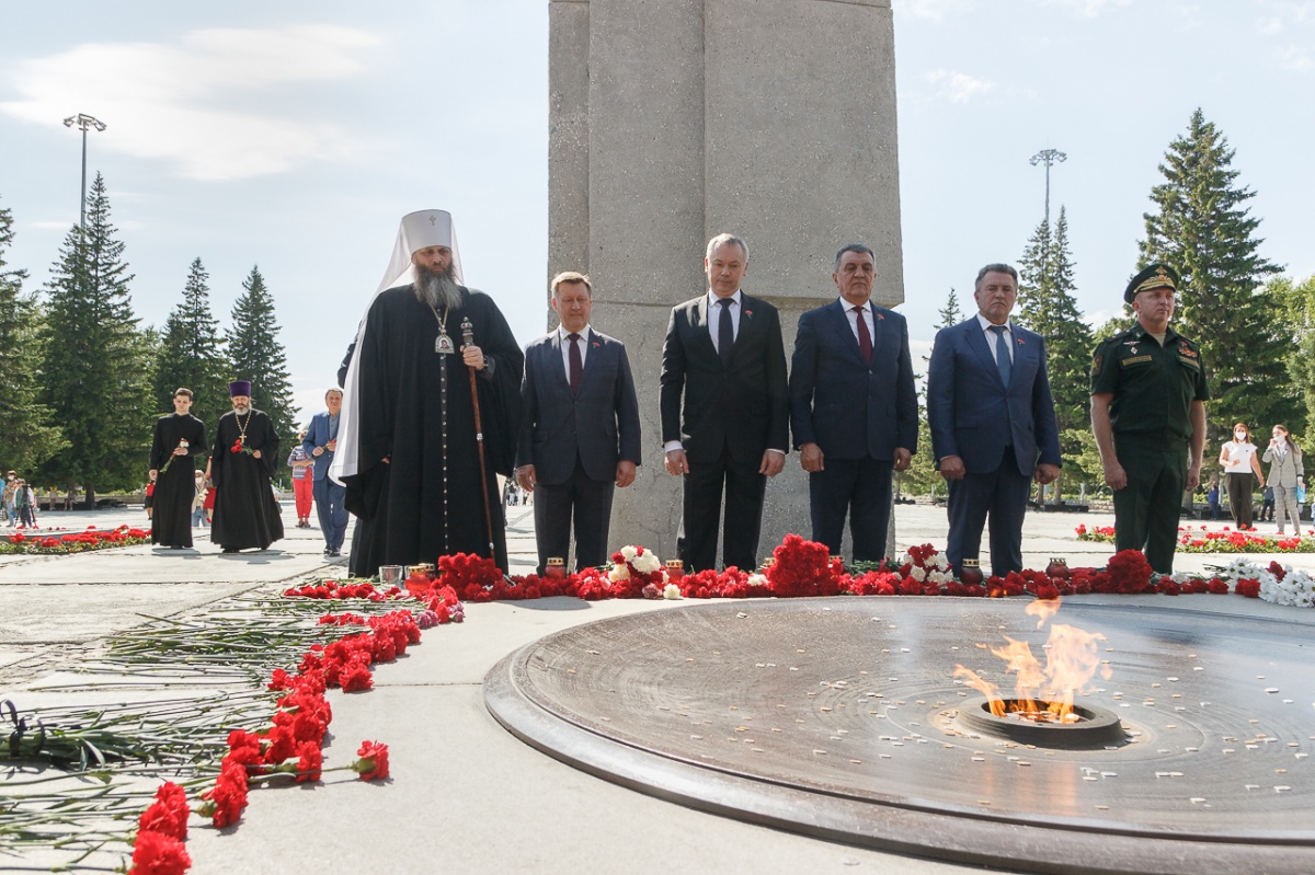 ![]() В Новосибирске почтили память погибших в годы Великой Отечественной войны22 июня, в День памяти и скорби, на Монументе Славы воинам-сибирякам состоялся торжественный митинг и возложение цветов в память о погибших воинах. В церемонии принял участие Митрополит Новосибирский и Бердский Никодим. В церемонии также приняли участие полномочный представитель Президента России в Сибирском Федеральном округе С.И. Меняйло, губернатор Новосибирской области А.А. Травников, мэр Новосибирска А.Е. Локоть, председатель Законодательного собрания Новосибирской области А.И. Шимкив, представители полпредства в СФО, Правительства и мэрии, духовенство Новосибирской епархии.