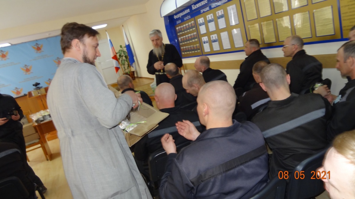 В самом начале встречи, были пропеты пасхальные часы, затем отец Владимир -председатель отдела по церковной благотворительности и социальному служению Новосибирской Епархии, произнес пасхальную проповедь и поздравил всех с праздником Великой Пасхи. Осужденным были вручены пасхальные гостинцы - освященные куличи, иконы и духовная литература. Так же на встрече говорили о Победе в Великой Отечественной войне, подвигах наших дедов и о любви к Родине. Прозвучали стихи: Анны Ахматовой, Расула Гамзатова, Александра Твардовского, Владимира Высоцкого. Осужденные колонии-поселения №8, приняли активное участие в торжественном мероприятии. С интересом слушали, размышляли о смысле жизни и задавали вопросы. Все лица радостью сияют. П.Потехин Все