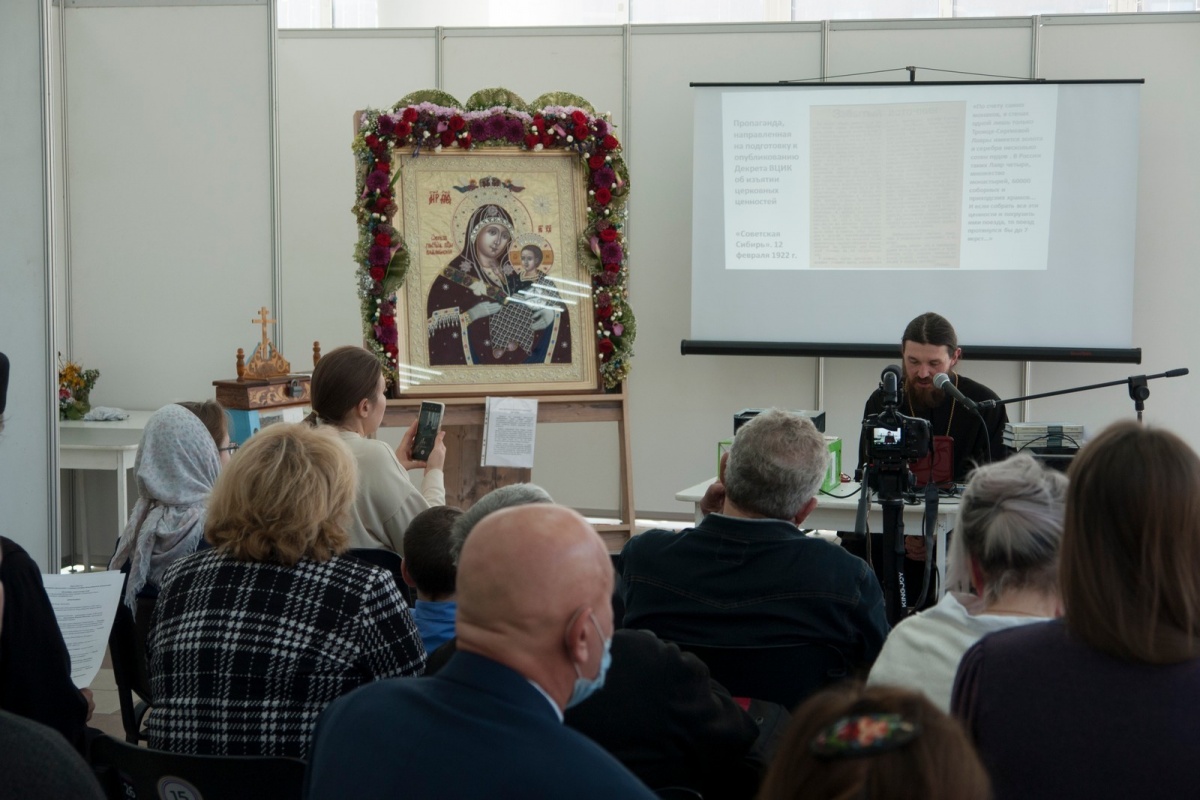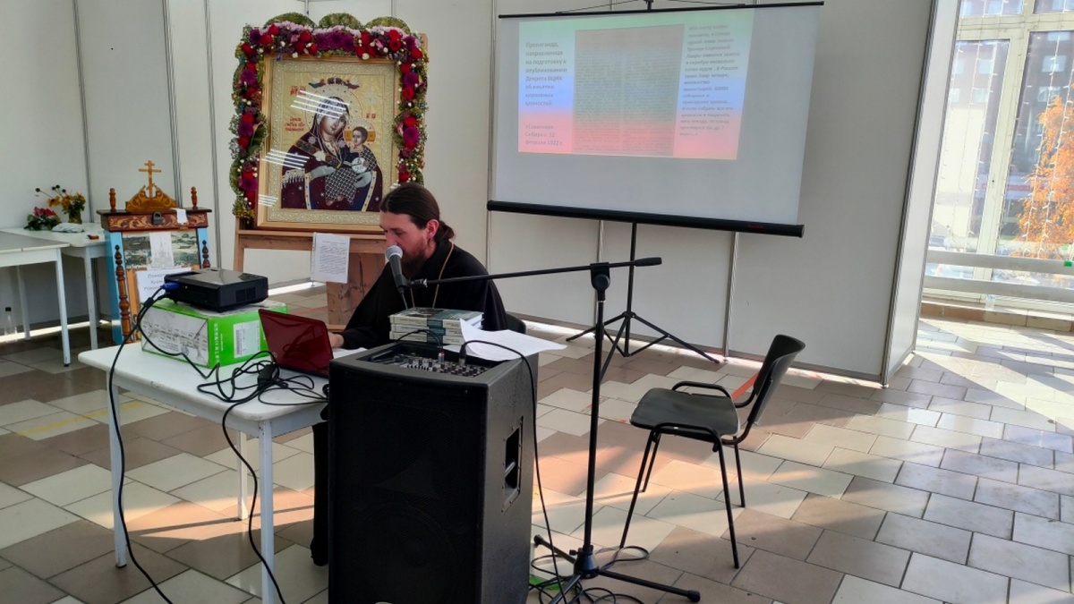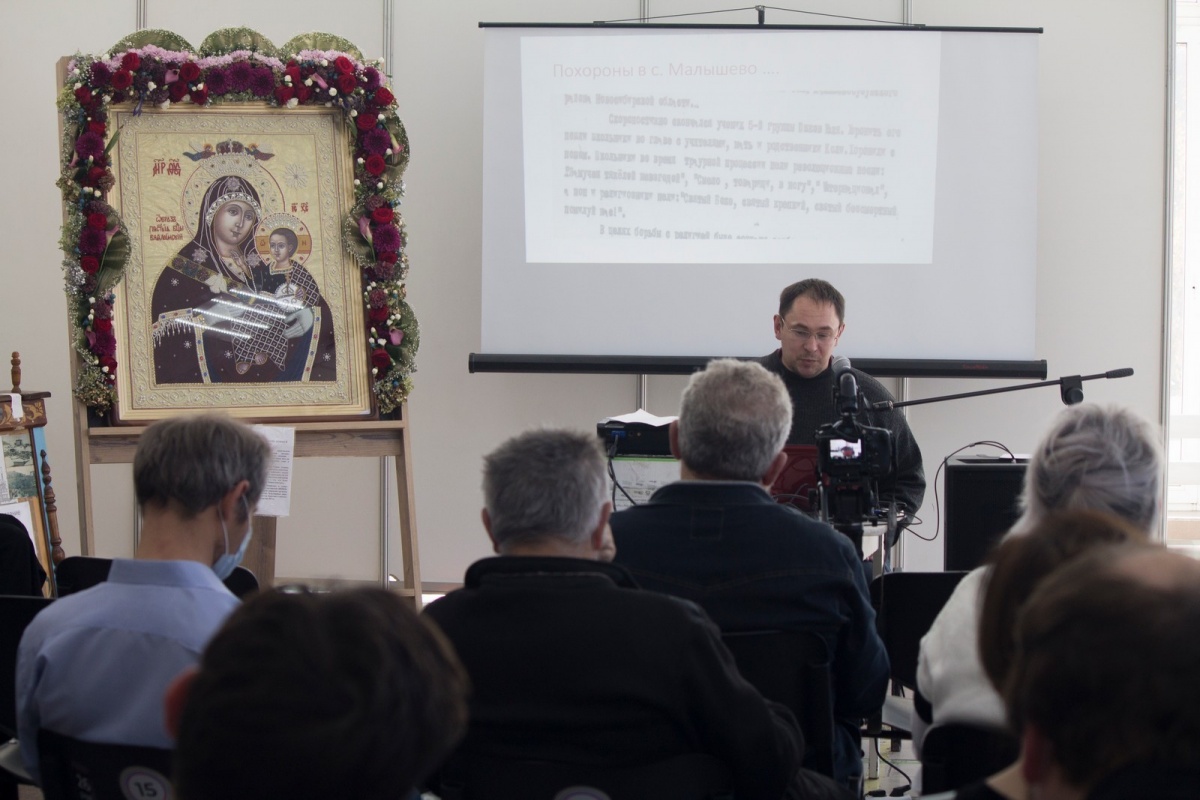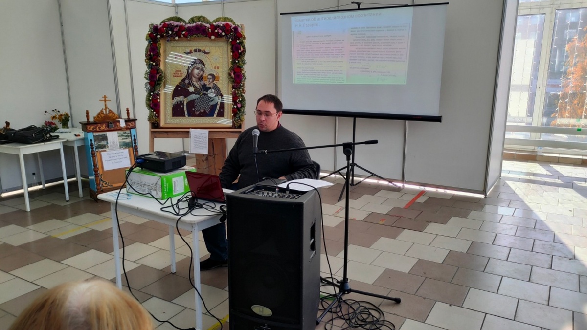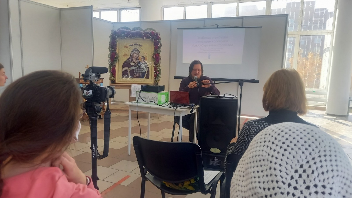 ![]() В Новосибирске состоялся круглый стол «Православное краеведение. Страницы истории Новосибирской митрополии»В рамках работы Всероссийской выставки-ярмарки «Покровская осень»18 октября 2021 года в Новосибирске состоялся круглый стол «Православное краеведение. Страницы истории Новосибирской митрополии». Традиционная всероссийская выставка-ярмарка «Покровская осень» проходила по благословению митрополита Новосибирского и Бердского Никодима при поддержке правительства Новосибирской области с 13 по 18 октября в ТЦ «ЦУМ-Новосибирск». Открыл собрание руководитель проекта Новосибирской митрополии «Сохраним наследие» протоиерей Игорь Затолокин. Соорганизатором круглого стола выступила Новосибирская православная духовная семинария. Первый доклад был представлен старшим преподавателем Новосибирской православной духовной семинарии, кандидатом богословия иеромонахом Симоном (Истюковым). В нем шла речь о важном и трагическом моменте во взаимоотношениях между Русской Православной Церковью и Советским государством – изъятии церковных ценностей. Отец Симон рассказал о том, как такая конфискация осуществлялась в Новониколаевской губернии. На круглом столе также выступили с сообщениями студенты Новосибирской православной духовной семинарии. Студент 4 курса диакон Павел Говоров рассказал о строительстве храмов при прокладке Транссибирской магистрали. Студент 3 курса Сергий Кагирин обозначил причины и последствия Декрета СНК об отделении Церкви от государства и школы от Церкви 1918 года. Председатель комиссии по канонизации святых Кемеровской епархии протоиерей Максим Мальцев в своем докладе рассказал о жизни и служении иерея Михаила Соболева – священника и воина. Отец Михаил много лет отдал служению в разных храмах в обширной тогда Новосибирской епархии, прошел и годы гонений, и фронт. Представитель Бердского музея, заведующая отделом кинохроники Татьяна Свиридова вместе с заместителем руководителя Сибирского центра колокольного искусства Алексеем Талашкиным выступили с докладом «История одного бердского захоронения». Они показали небольшой сюжет о переносе со староцерковного кладбища в селе Бердском на территорию современного Бердска надгробия статского советника Ларионова, а также поделились результатами исследования жизни и деятельности Николая Михайловича Ларионова. Алексей Талашкин в докладе «Проблема атрибуции некоторых колоколов Новосибирской митрополии» представил результаты современной исследовательской работы, посвященной изучению колокольного искусства на примере атрибуции сохранившихся колоколов досоветского периода, собранных в храмах Новосибирской митрополии или Музее колокольного звона Новосибирской епархии. Далее выступил Евгений Шабунин, новосибирский краевед и историк, с докладом «120 лет храму Покрова Пресвятой Богородицы Новосибирска. История и современность». В нем он рассказал об истории одного из старейших храмов Новосибирска, устроителях и ктиторах храма, о судьбах священнослужителях, о детском приюте при храме "Ясли". Студент 1 курса магистратуры НГПУ ИИГСО Михаил Давыденко поведал о формировании антирелигиозного воспитания в школе в 1920-е – начале 1930-х гг. на примере событий, проходящих в Новосибирске. Об этом можно было узнать из опубликованных в советское вре