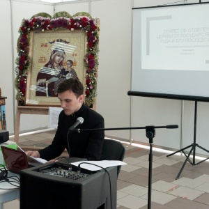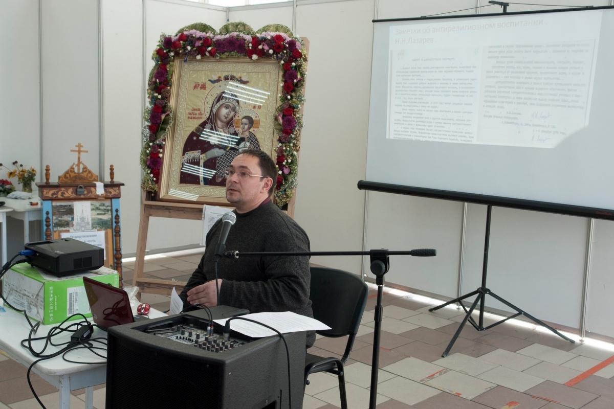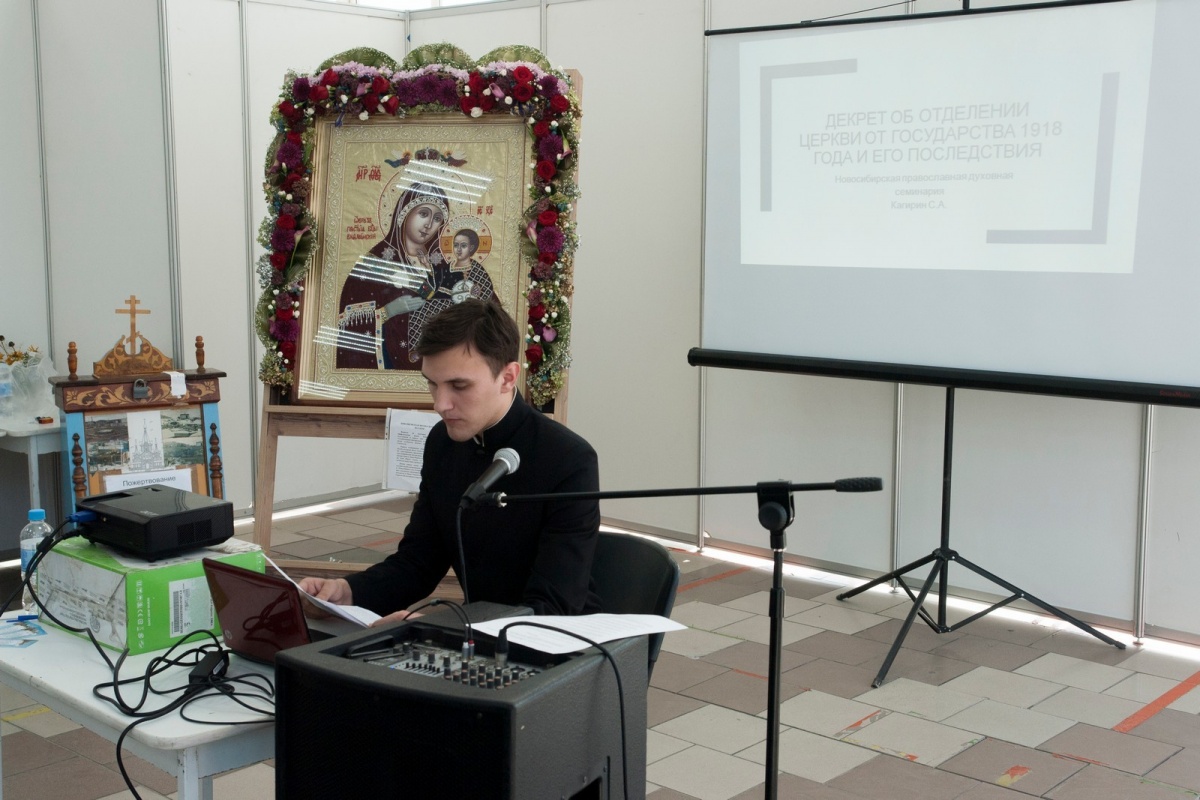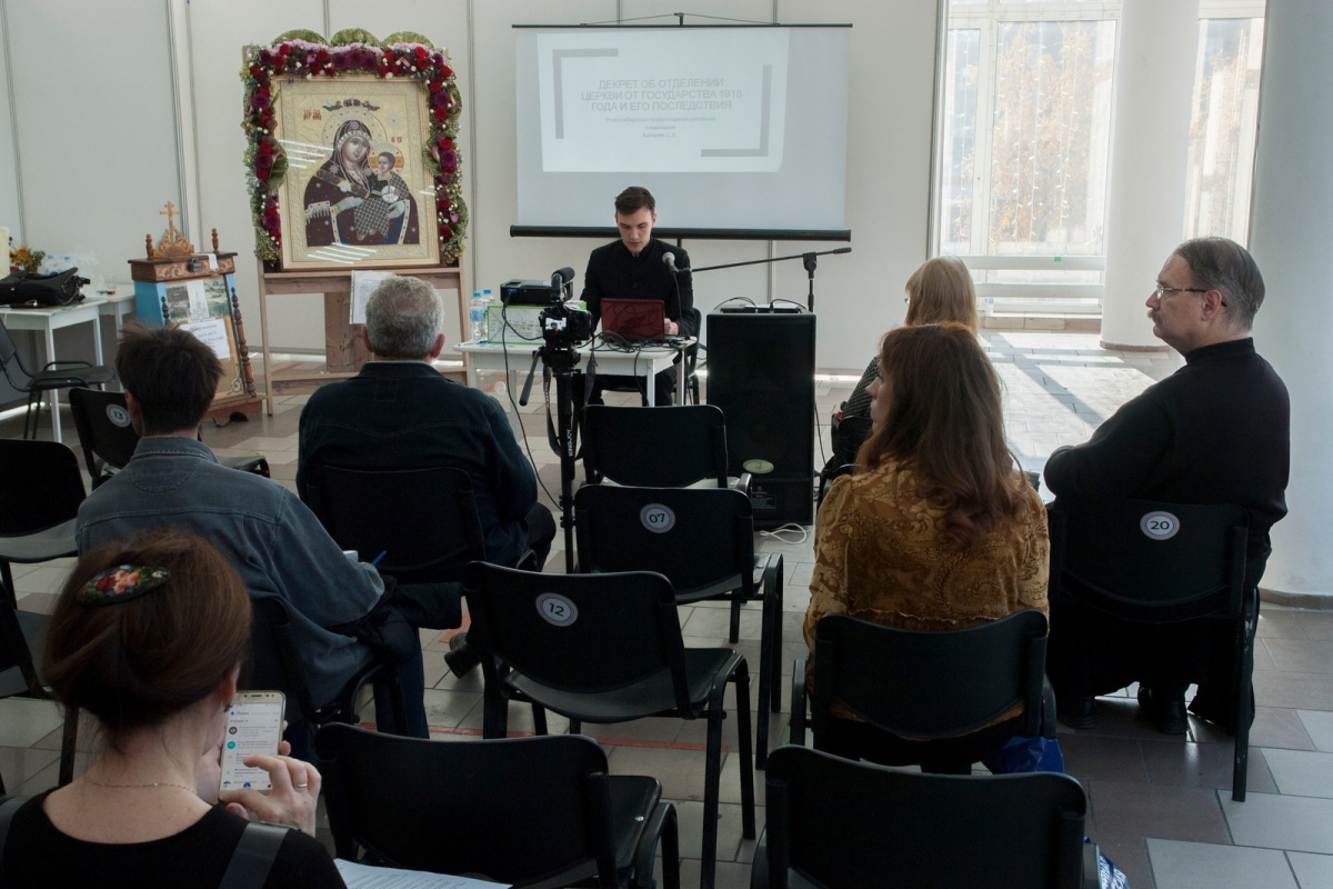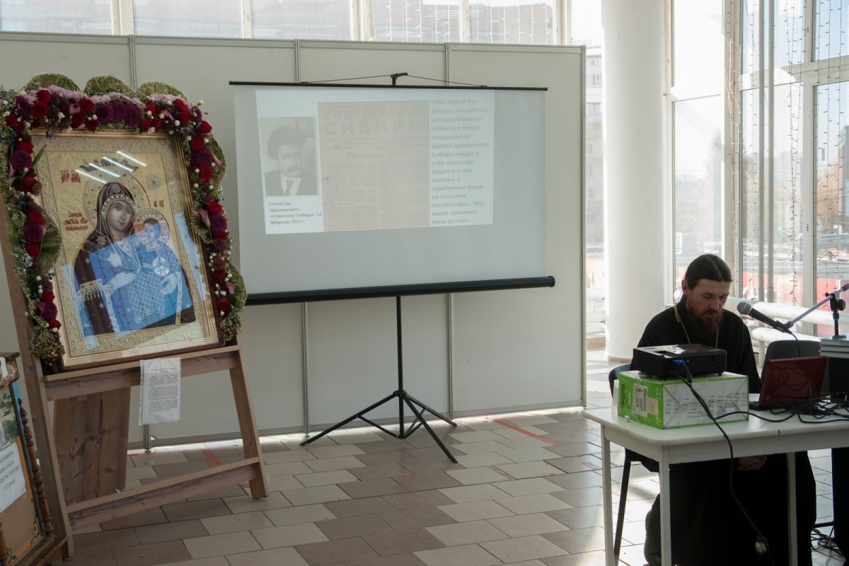 ![]() В Новосибирске состоялся круглый стол «Православное краеведение. Страницы истории Новосибирской митрополии»В рамках работы Всероссийской выставки-ярмарки «Покровская осень»18 октября 2021 года в Новосибирске состоялся круглый стол «Православное краеведение. Страницы истории Новосибирской митрополии». Традиционная всероссийская выставка-ярмарка «Покровская осень» проходила по благословению митрополита Новосибирского и Бердского Никодима при поддержке правительства Новосибирской области с 13 по 18 октября в ТЦ «ЦУМ-Новосибирск». Открыл собрание руководитель проекта Новосибирской митрополии «Сохраним наследие» протоиерей Игорь Затолокин. Соорганизатором круглого стола выступила Новосибирская православная духовная семинария. Первый доклад был представлен старшим преподавателем Новосибирской православной духовной семинарии, кандидатом богословия иеромонахом Симоном (Истюковым). В нем шла речь о важном и трагическом моменте во взаимоотношениях между Русской Православной Церковью и Советским государством – изъятии церковных ценностей. Отец Симон рассказал о том, как такая конфискация осуществлялась в Новониколаевской губернии. На круглом столе также выступили с сообщениями студенты Новосибирской православной духовной семинарии. Студент 4 курса диакон Павел Говоров рассказал о строительстве храмов при прокладке Транссибирской магистрали. Студент 3 курса Сергий Кагирин обозначил причины и последствия Декрета СНК об отделении Церкви от государства и школы от Церкви 1918 года. Председатель комиссии по канонизации святых Кемеровской епархии протоиерей Максим Мальцев в своем докладе рассказал о жизни и служении иерея Михаила Соболева – священника и воина. Отец Михаил много лет отдал служению в разных храмах в обширной тогда Новосибирской епархии, прошел и годы гонений, и фронт. Представитель Бердского музея, заведующая отделом кинохроники Татьяна Свиридова вместе с заместителем руководителя Сибирского центра колокольного искусства Алексеем Талашкиным выступили с докладом «История одного бердского захоронения». Они показали небольшой сюжет о переносе со староцерковного кладбища в селе Бердском на территорию современного Бердска надгробия статского советника Ларионова, а также поделились результатами исследования жизни и деятельности Николая Михайловича Ларионова. Алексей Талашкин в докладе «Проблема атрибуции некоторых колоколов Новосибирской митрополии» представил результаты современной исследовательской работы, посвященной изучению колокольного искусства на примере атрибуции сохранившихся колоколов досоветского периода, собранных в храмах Новосибирской митрополии или Музее колокольного звона Новосибирской епархии. Далее выступил Евгений Шабунин, новосибирский краевед и историк, с докладом «120 лет храму Покрова Пресвятой Богородицы Новосибирска. История и современность». В нем он рассказал об истории одного из старейших храмов Новосибирска, устроителях и ктиторах храма, о судьбах священнослужителях, о детском приюте при храме "Ясли". Студент 1 курса магистратуры НГПУ ИИГСО Михаил Давыденко поведал о формировании антирелигиозного воспитания в школе в 1920-е – начале 1930-х гг. на примере событий, проходящих в Новосибирске. Об этом можно было узнать из опубликованных в советское вре