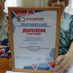 Татьяны Бархатовой «Завещание потомкам». Татьяна Георгиевна Бархатова родилась в Новосибирске. С 1975 года работала в Конструкторско-технологическом институте СО РАН мастером радиомонтажного участка. Профессия - монтажник радиоэлектронной аппаратуры высокой квалификации. Татьяна Георгиевна - неоднократный победитель конкурса - «Лучший по профессии» (среди профессионалов института). Заслуженный ветеран СО РАН. Стихи начала писать в 49 лет. Татьяна Бархатова - активный член Новосибирской областной организации «Общество книголюбов», является участником и победителем нескольких областных литературных конкурсов, по итогам которых были изданы альманахи творческих работ. Автор сборника стихов «Благодарю судьбу». Встреча православных авторов состоялась в конференц-зале Дома офицеров. Дом офицеров Новосибирского гарнизона - это признанный центр военно-патриотической и культурно-досуговой работы, который неоднократно признавался лучшим учреждением культуры Западно-Сибирского региона. Как всегда, работал «Открытый микрофон» и звучали стихи. «Новосибирское общество книголюбов» объединяет -поэтов, писателей, издателей, читателей и всех кому интересны основы православной письменности и культуры. Руководитель «Новосибирского общества книголюбов», член союза журналистов РФ Н. Пендюрина-Капина СЛОВО Татьяна БархатоваСлово, как и время, Наши раны лечит. Слово души наши Бренные калечит. Надо быть со словом Очень осторожным, Полетит – поймать Его уж невозможно. Наспех обронённое, Злое слово – рана. А тебе всё кажется: Нет в словах изъяна, А вернётся памятью, Да с такой тоскою, Что однажды ночью Не найдёшь покоя. Дорогое слово От беды спасает И в душе другого Счастьем прорастает. В слове свет надежды, Радость и печали, Слово свою нежность С добротой венчает. В слове боль разлуки, Нашей жизни счастье. Словом невозможно Вдоволь надышаться, А в рождённом сердце Нежно и упрямо Самое родное Бьётся слово – «Мама».