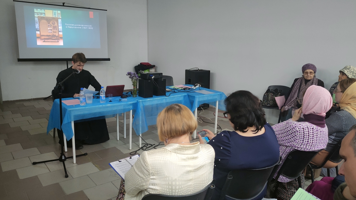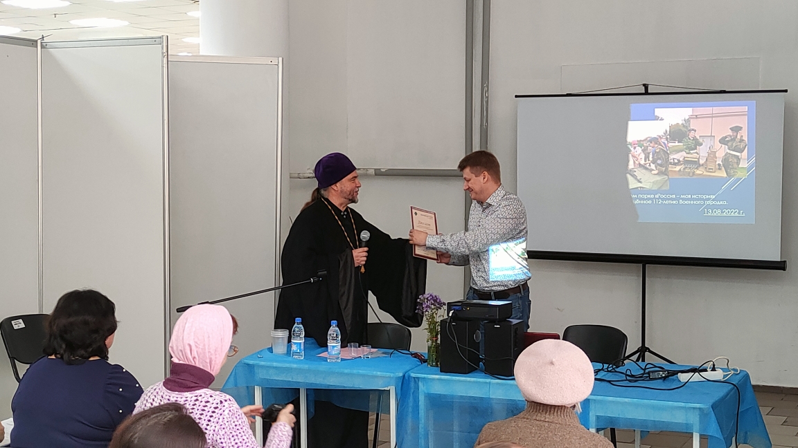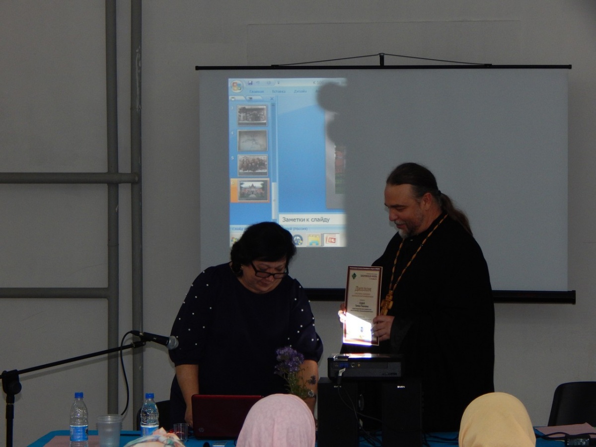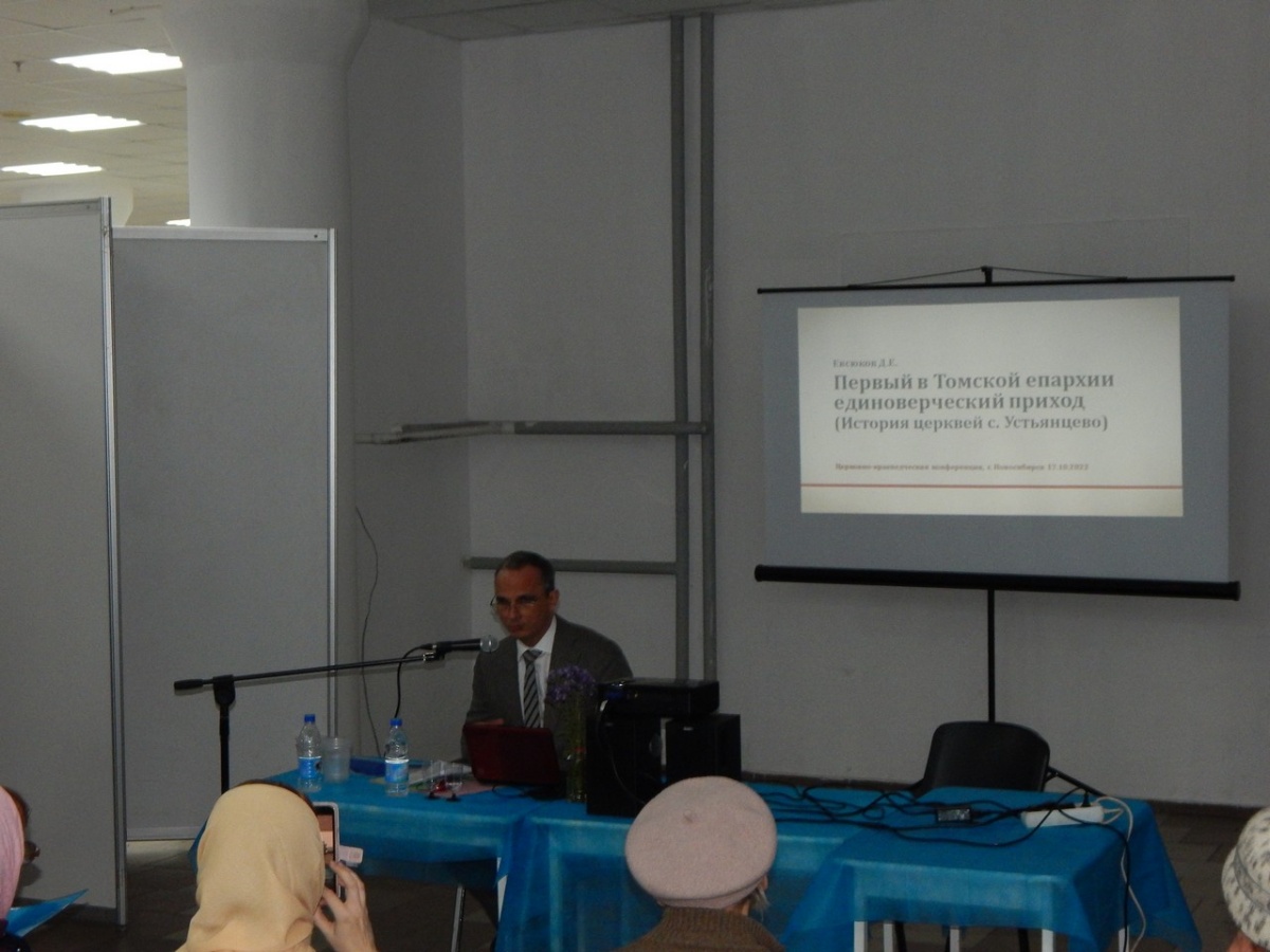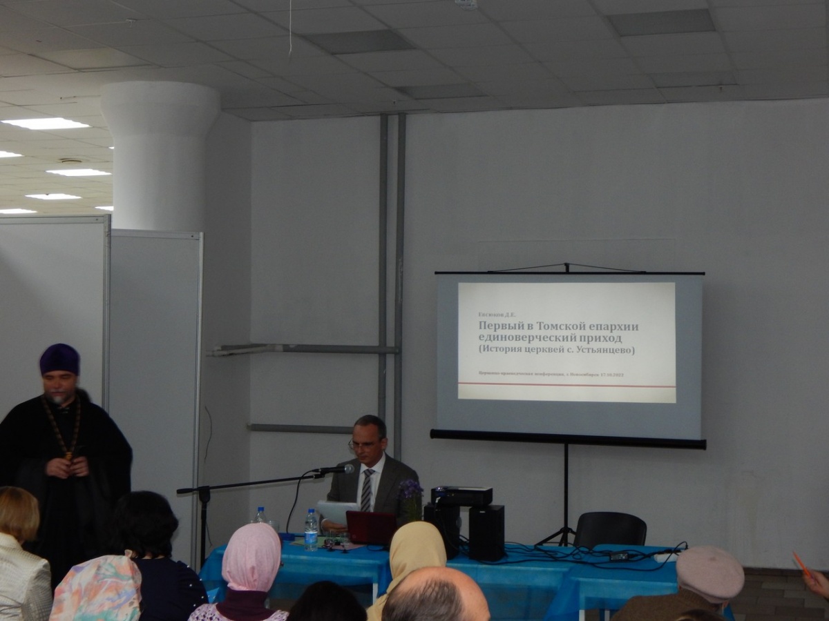 Ведущим конференции выступил руководитель проекта Новосибирской митрополии «Сохраним наследие» протоиерей Игорь Затолокин. Представленные исследования были посвящены вопросам краеведения на земле Сибирской, сохранению исторической памяти, генеалогическим изысканиям и истории духовного просвещения. Прозвучали следующие доклады участников конференции: · ПРОНИН Алексей Олегович, к.и.н., директор Новосибирского Исторического парка «Россия – моя история»; г. Новосибирск – «Роль мультимедийных исторических парков «Россия – моя история» в сохранении военно-исторического наследия России »; · ГОЛОДЯЕВ Константин Артемьевич, научный сотрудник «Музея Новосибирска», г. Новосибирск – «История Сретенской церкви села Бердское»; · СЫРОКВАШИНА Ирина Борисовна, член НИРО, председатель Новосибирского отделения УИРО, г. Новосибирск – «Мои предки – уральская династия священнослужителей Кожевниковых (XVII–XX века)»; · СВИРИДОВА Татьяна Владимировна, заведующая отделом кинохроники Бердского историко-художественного музея, режиссёр в/к «Студия-21»; г. Бердск Новосибирской области – «Подводное кладбище Старого Бердска. Интерес к истории как акт мародёрства»; · ЕВСЮКОВ Дмитрий Яковлевич, историк-краевед, член Новосибирского историко-родословного общества; г. Москва – «Первый в Томской епархии единоверческий приход»; · МАРКИНА Ирина Петровна, экскурсовод, преподаватель Православных богословских курсов Кемеровской епархии; г. Кемерово – «Паломничество по местам, связанным с новомучениками Кузбасса»; · ТАЛАШКИН Алексей Владимирович, заместитель руководителя Сибирского регионального центра колокольного искусства; г. Новосибирск – «Новосибирская школа звонарей: 25 лет возрождения традиции»; · СЕДЫХ Галина Павловна, научный сотрудник Березовского городского музея имени В.Н. Плотникова; г. Березовский Кемеровской области – «Неизвестные страницы истории. Борьба с бандами на территории Щегловского уезда в 1920-1925 гг.»; · КОШЕЧКО Анастасия Николаевна, д.филол.н., доцент кафедры истории и социальной работы гуманитарного факультета ТУСУР, лектор Всероссийского общества «Знание»; г. Томск – «Вестник любви на Нарымской земле: священноисповедник митрополит Агафангел (Преображенский)»; · КРУГЛИКОВ Александр Сергеевич, Нижневартовский государственный университет; г. Нижневартовск – «Христианизация коренных народов Тобольского Севера в XVII–XIX вв.»; От Новосибирской православной духовной семинарии выступили: · диакон Сергий КУЛЬПИНОВ , кандидат богословия, докторант ОЦАД, старший преподаватель НПДС; г. Томск – «Коллективизация и подрыв положения обновленческого раскола в Сибири (1929–1931 гг.)», а также студенты 4 курса Александр Трошкин и Егор Бунеев. Сообщения вызвали неподдельный интерес у слушателей и были внимательно заслушаны аудиторией. Выступающие получили дипломы участников конференции. Фото прот. И. Затолокин, прот. М. Мальцев